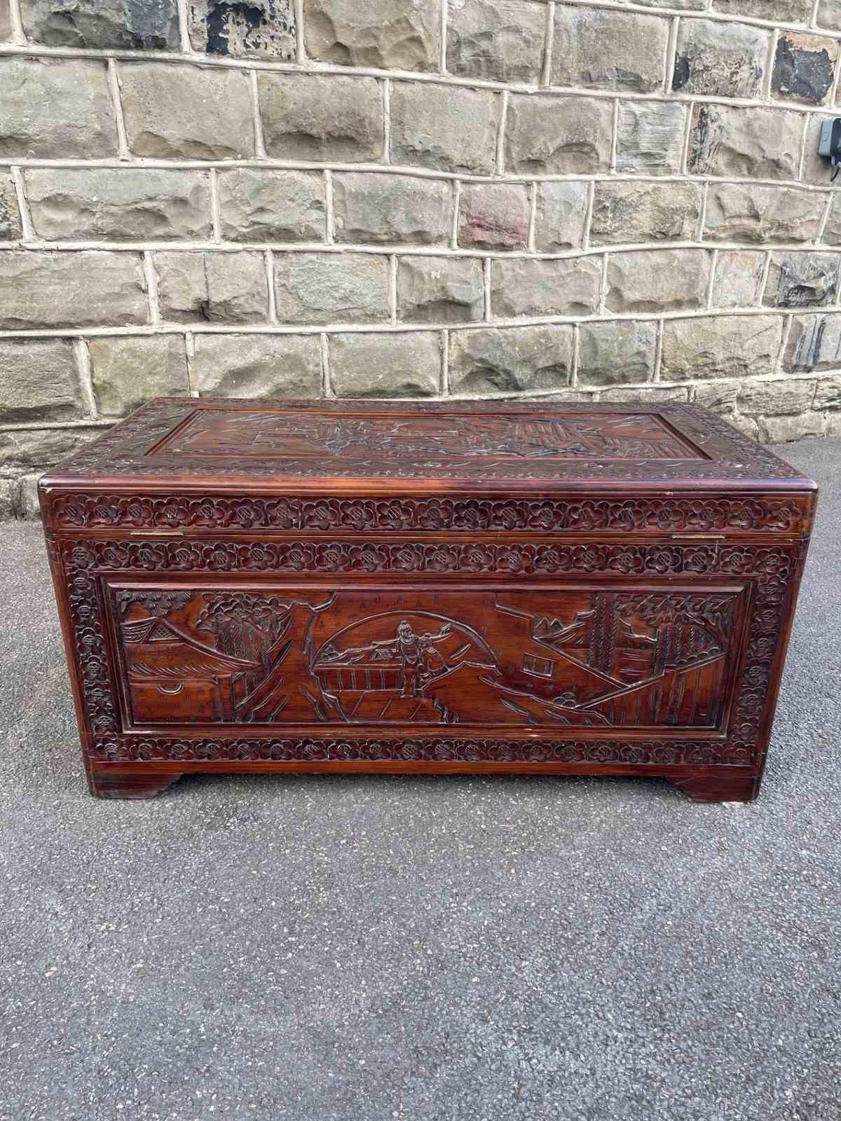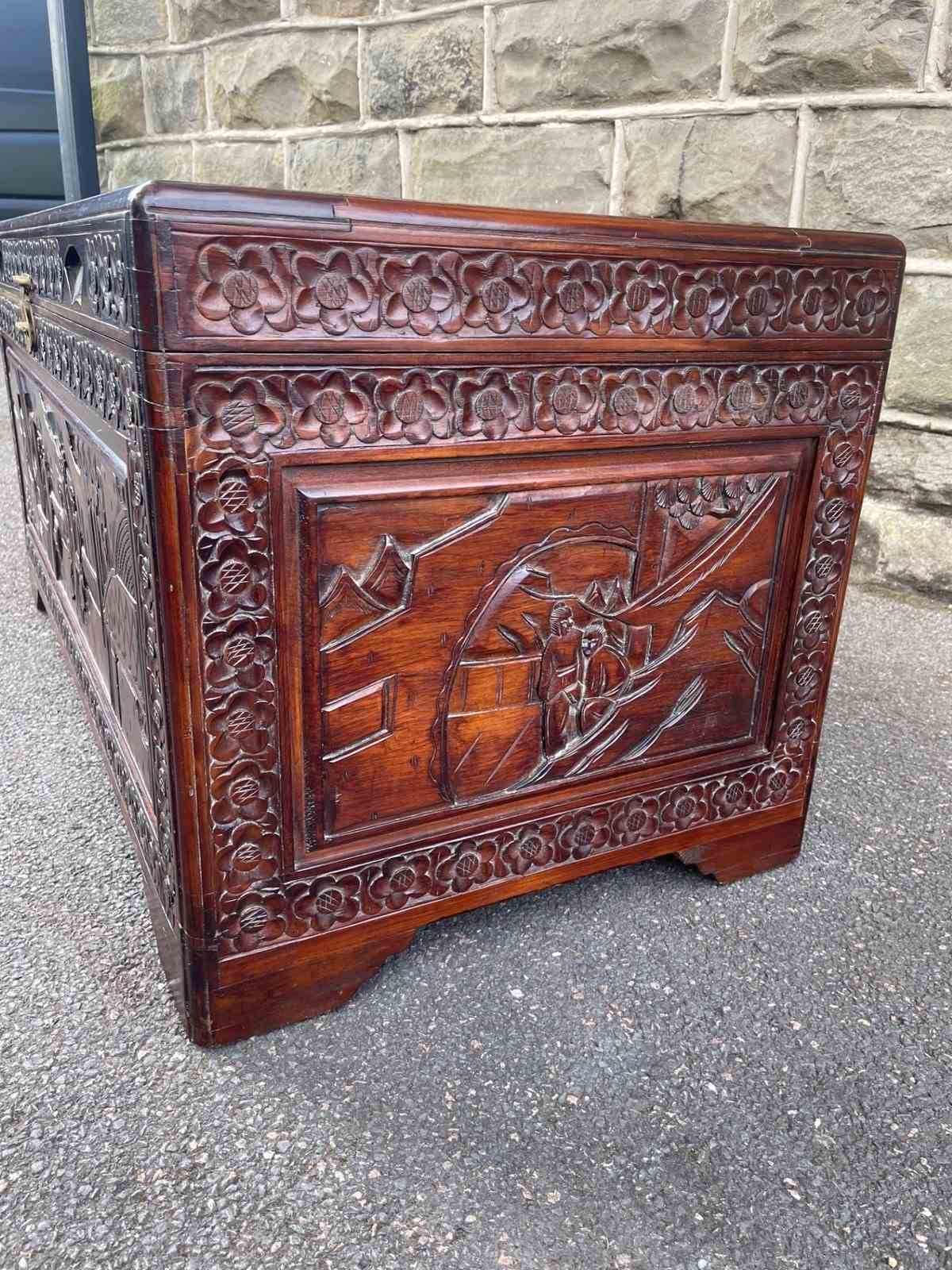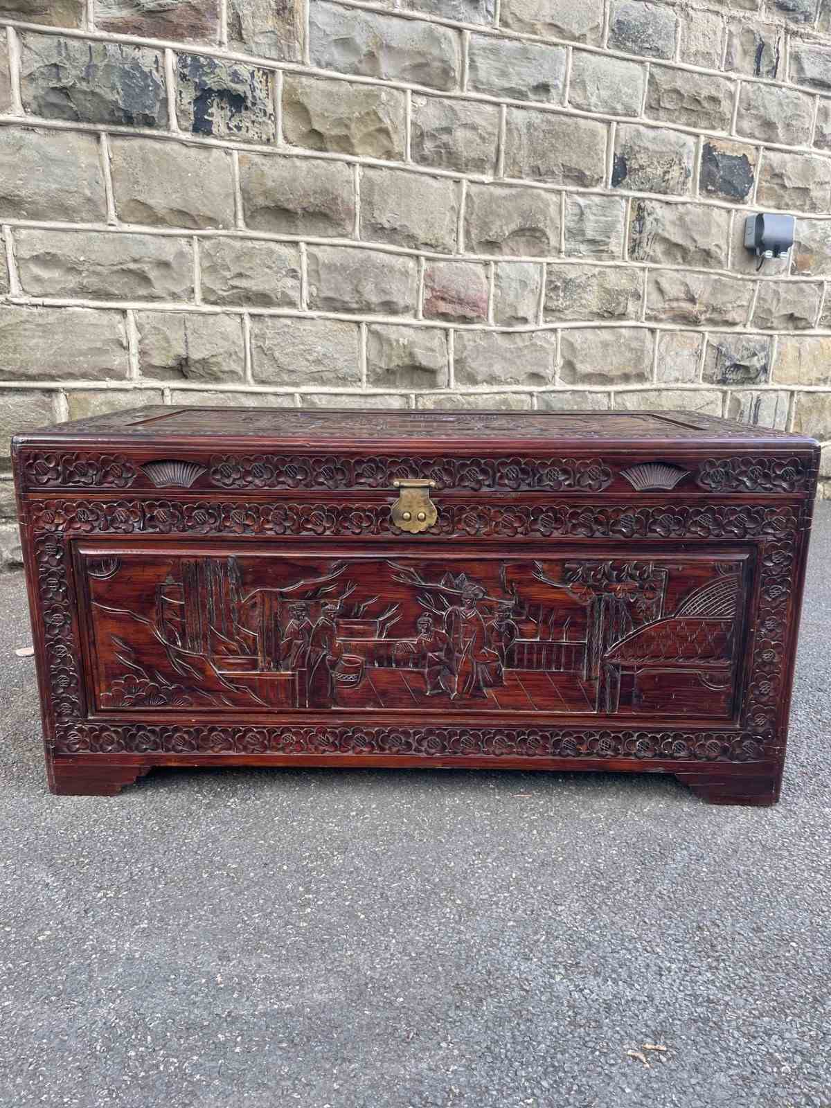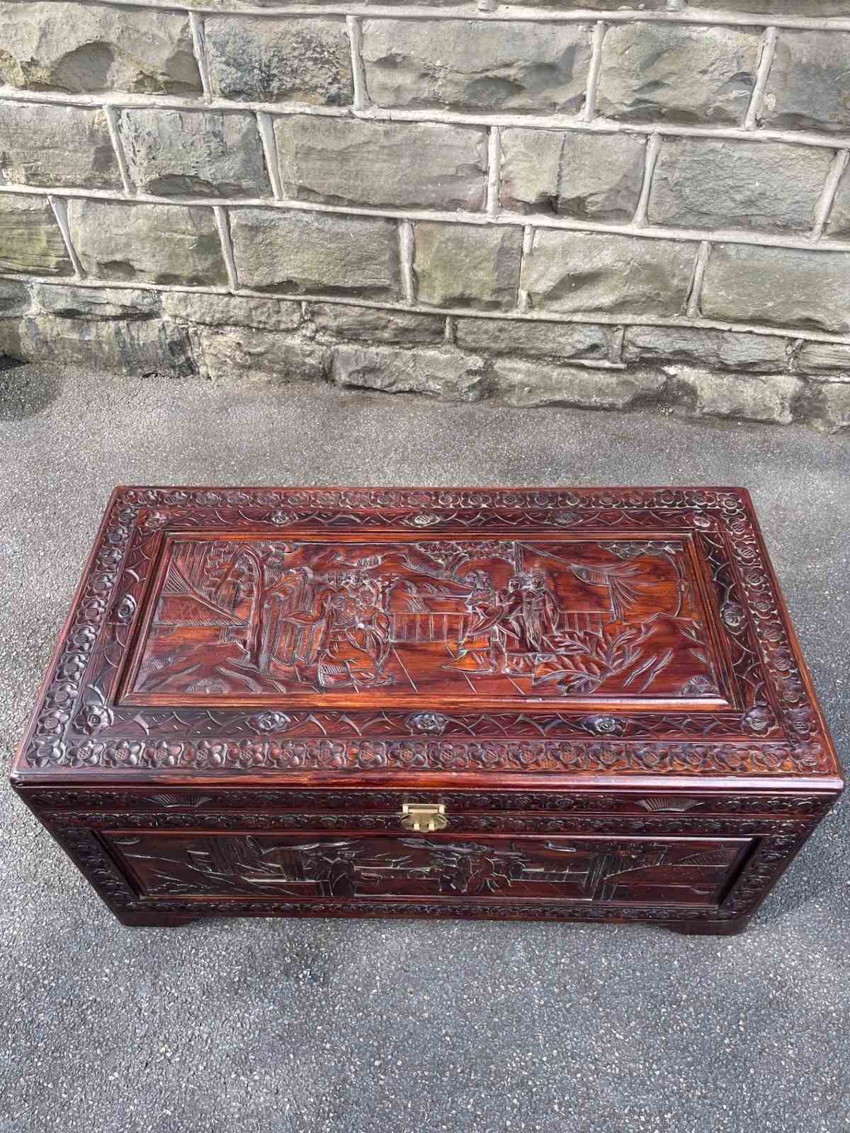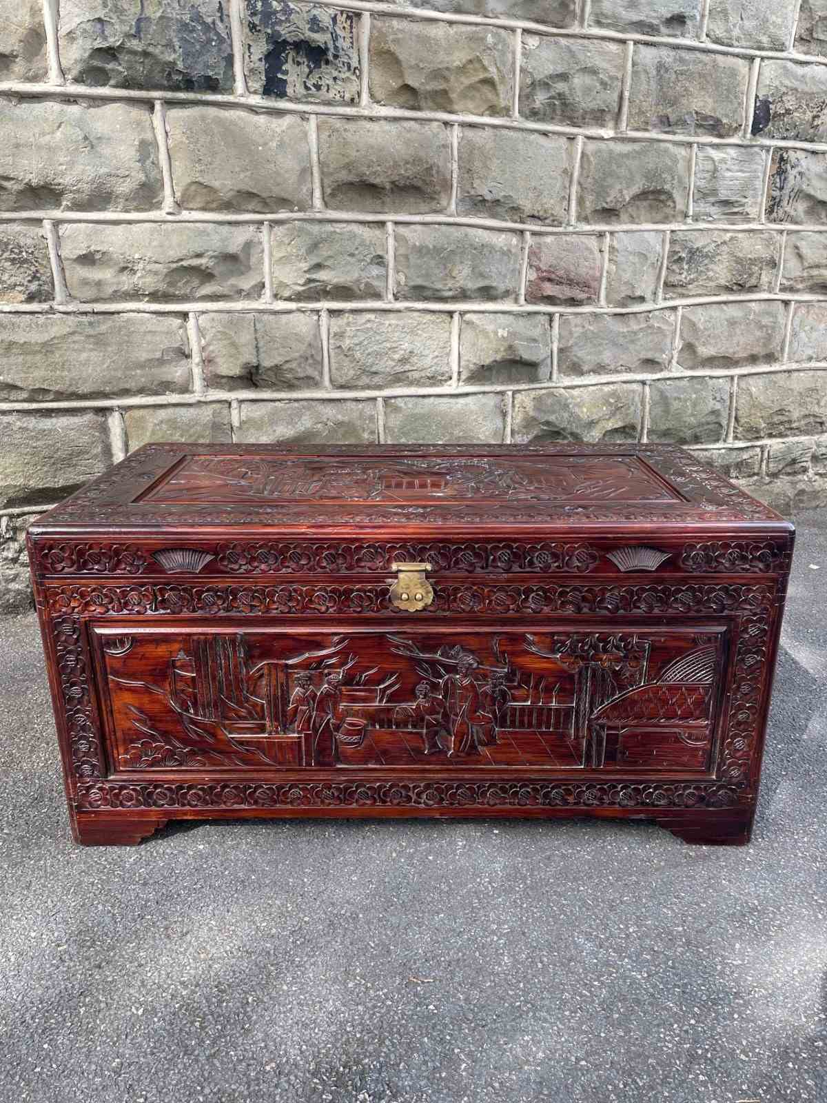 Antique Oriental Chinese Carved Camphor Trunk Box