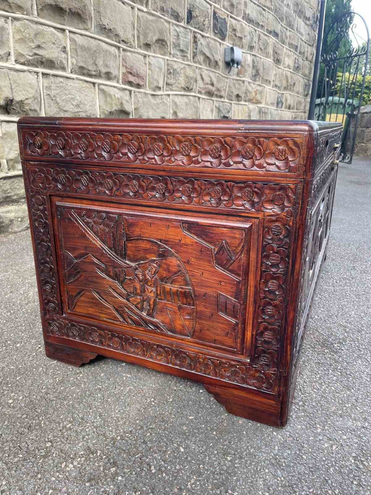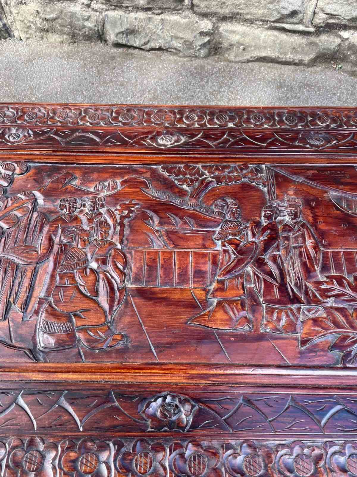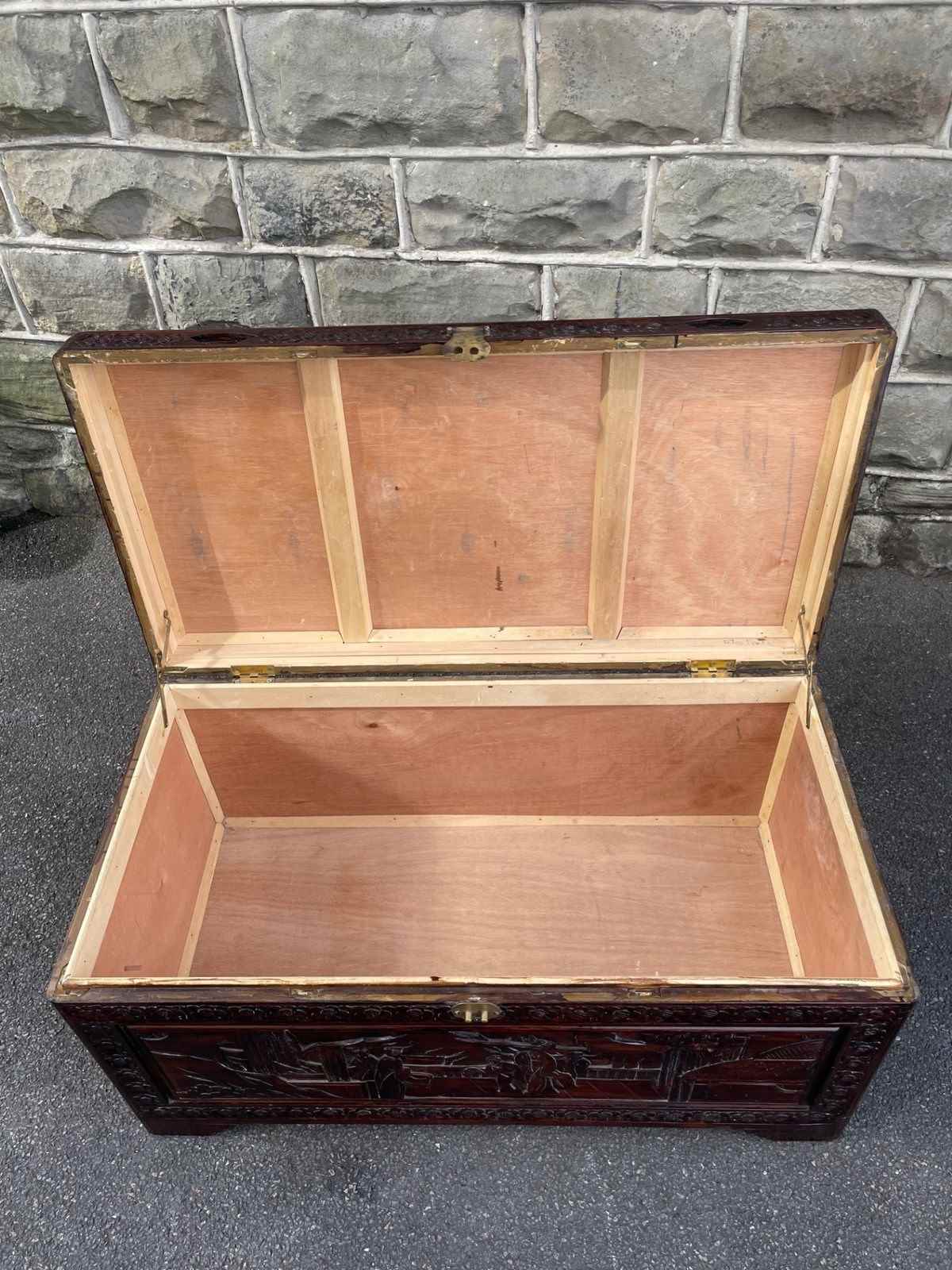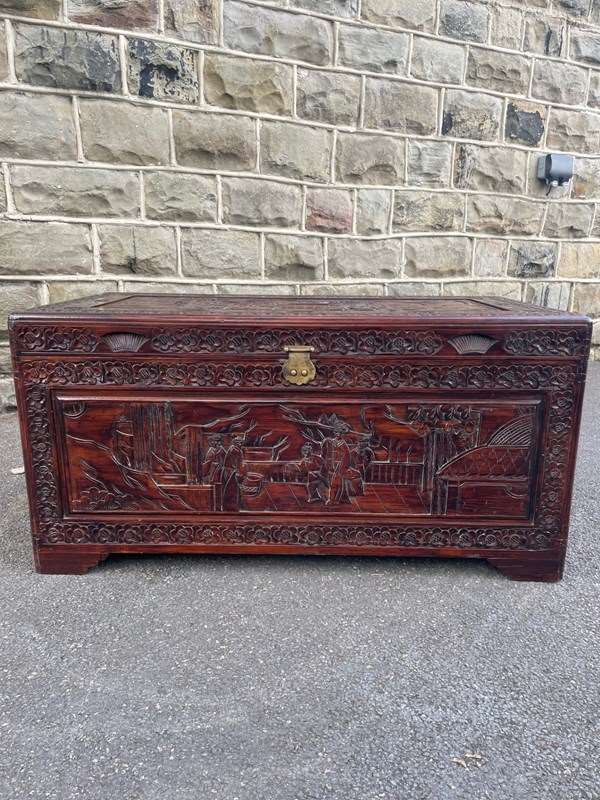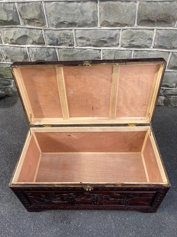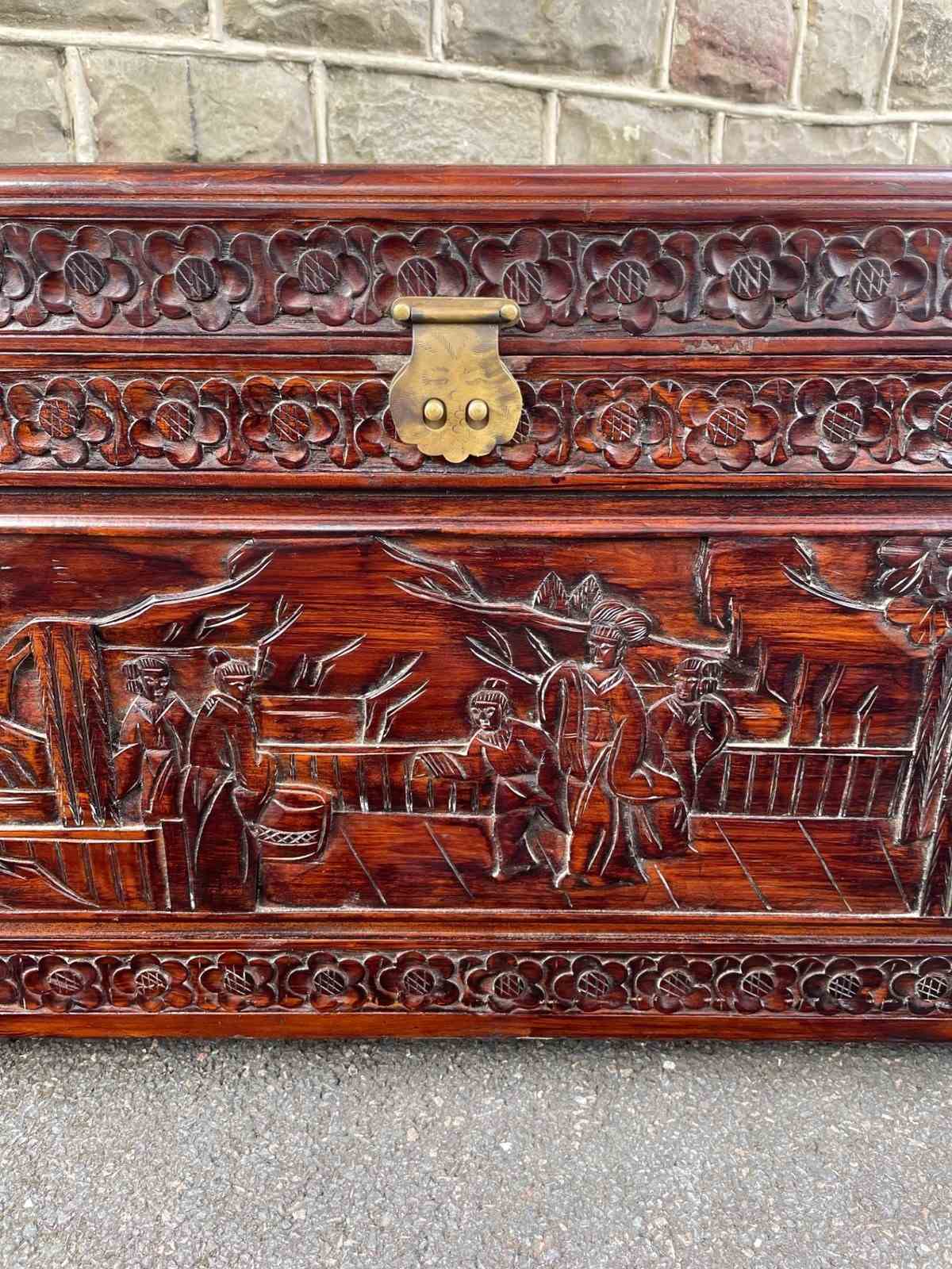 Antique Oriental Chinese Carved Camphor Trunk Box