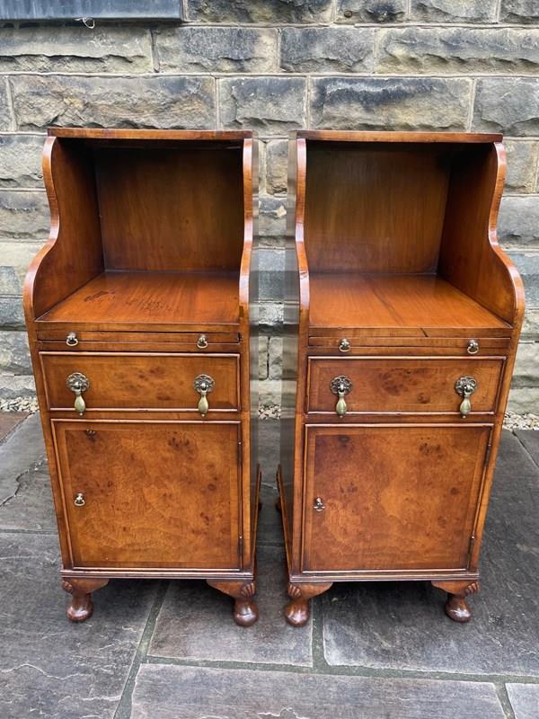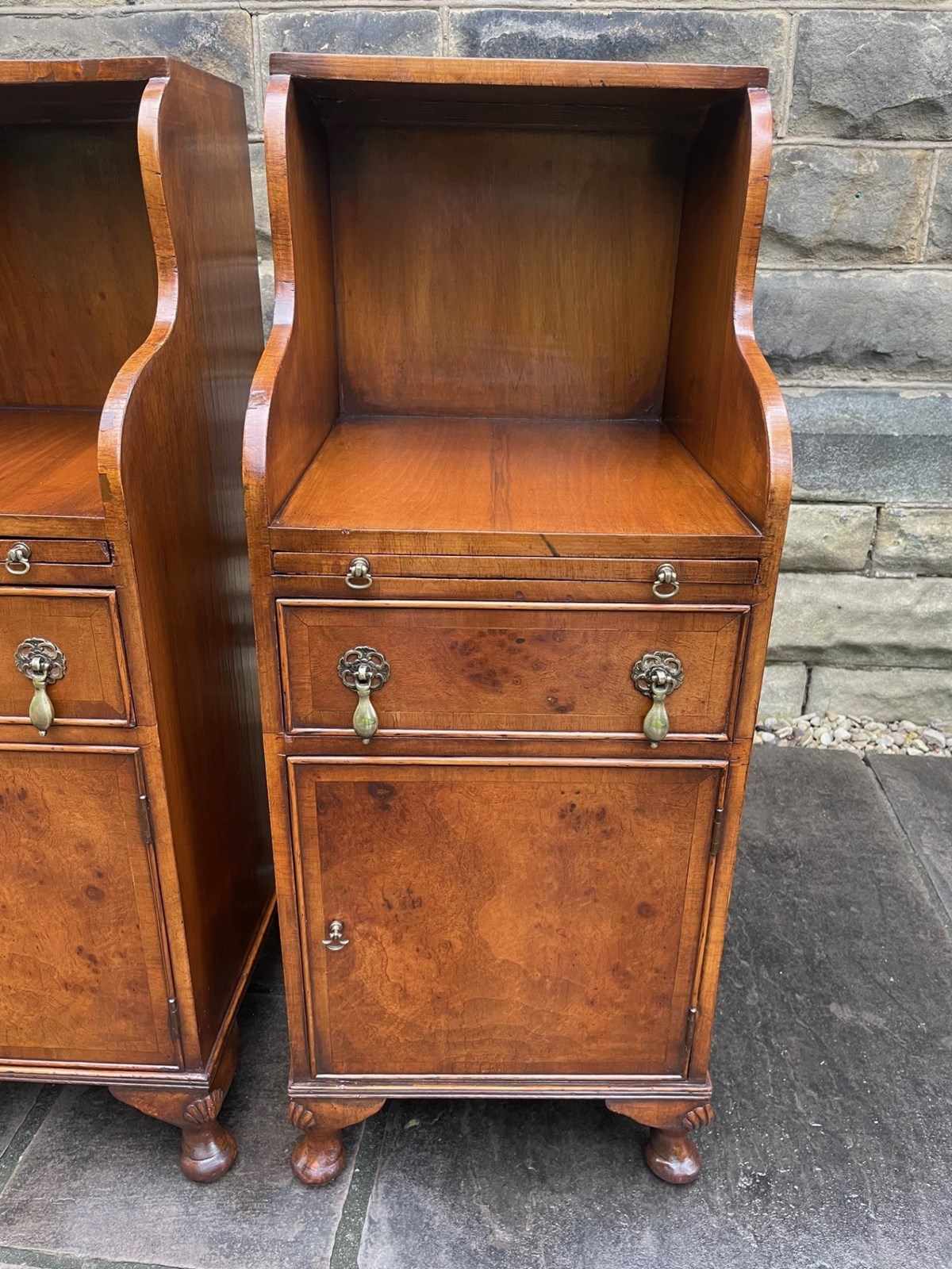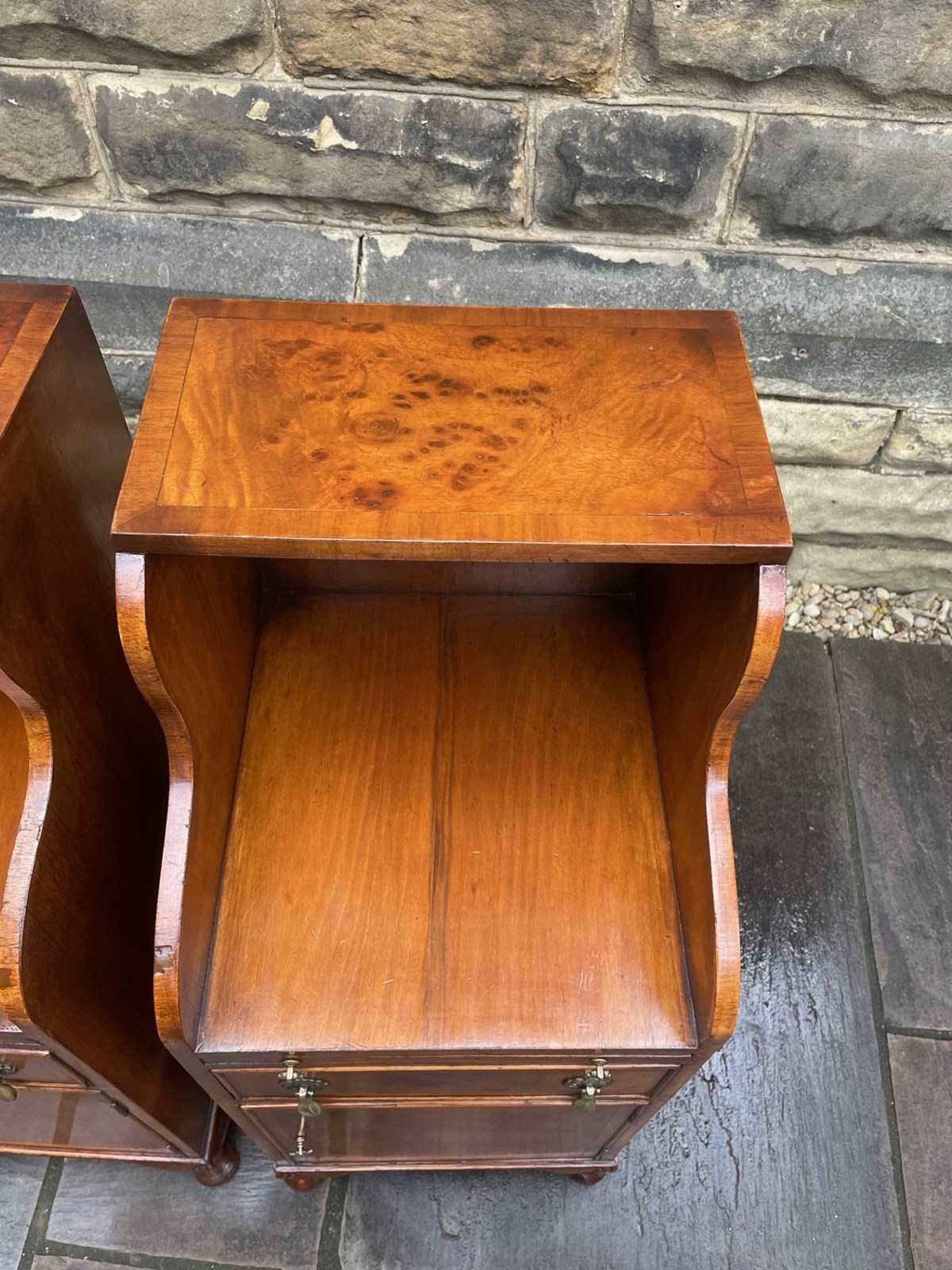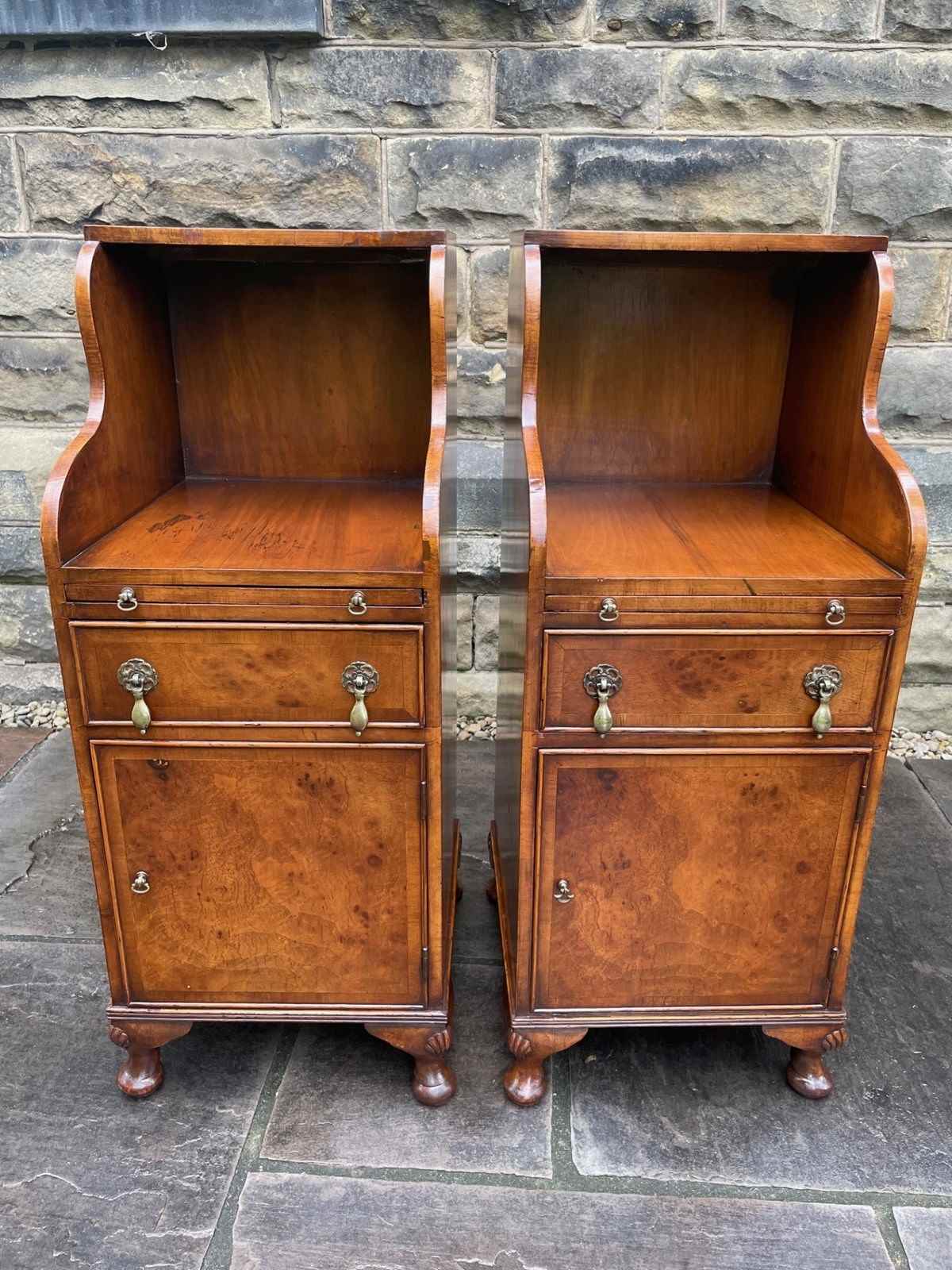 Offered for sale is this pair of antique burr walnut bedside cabinets.