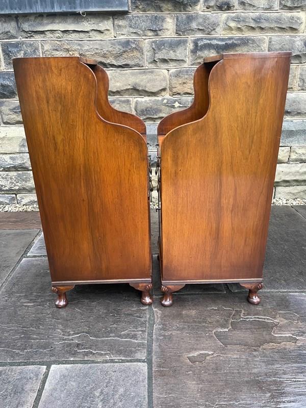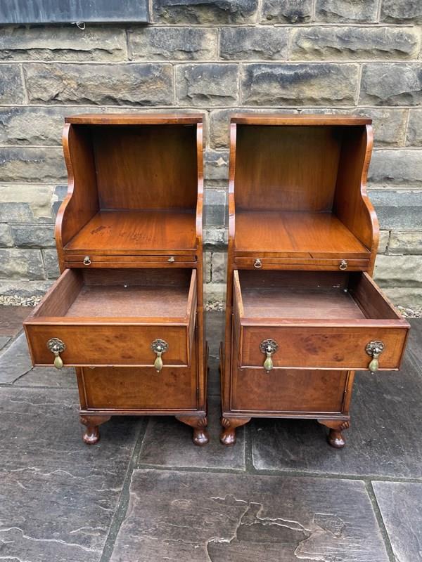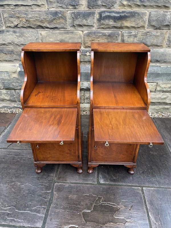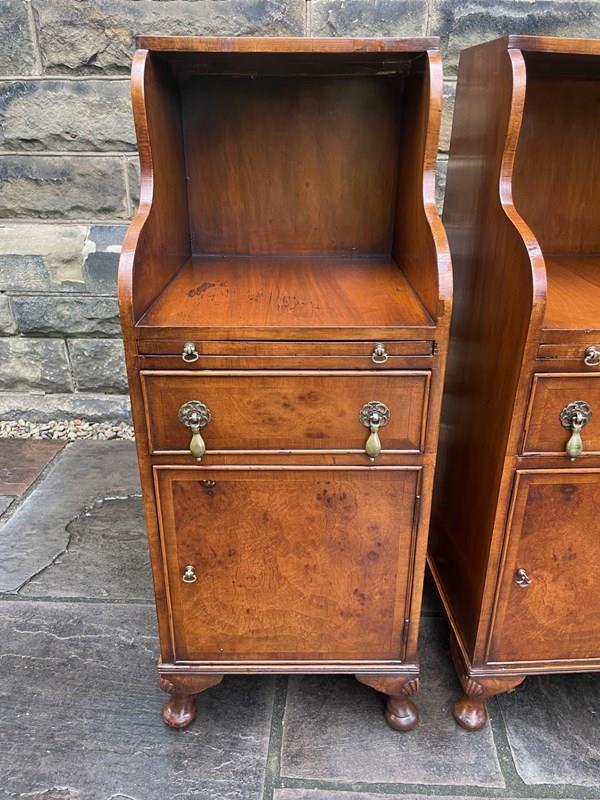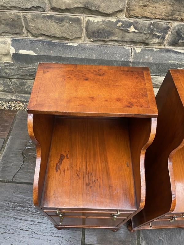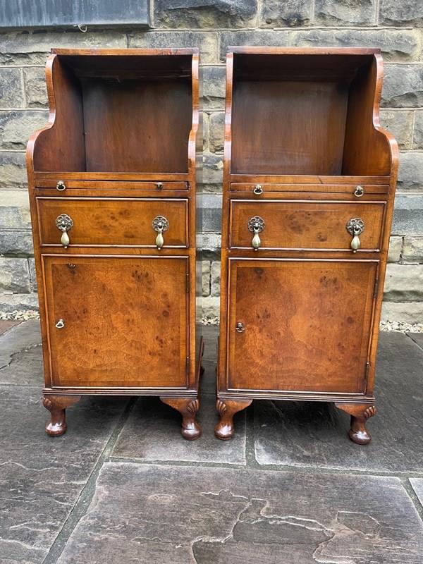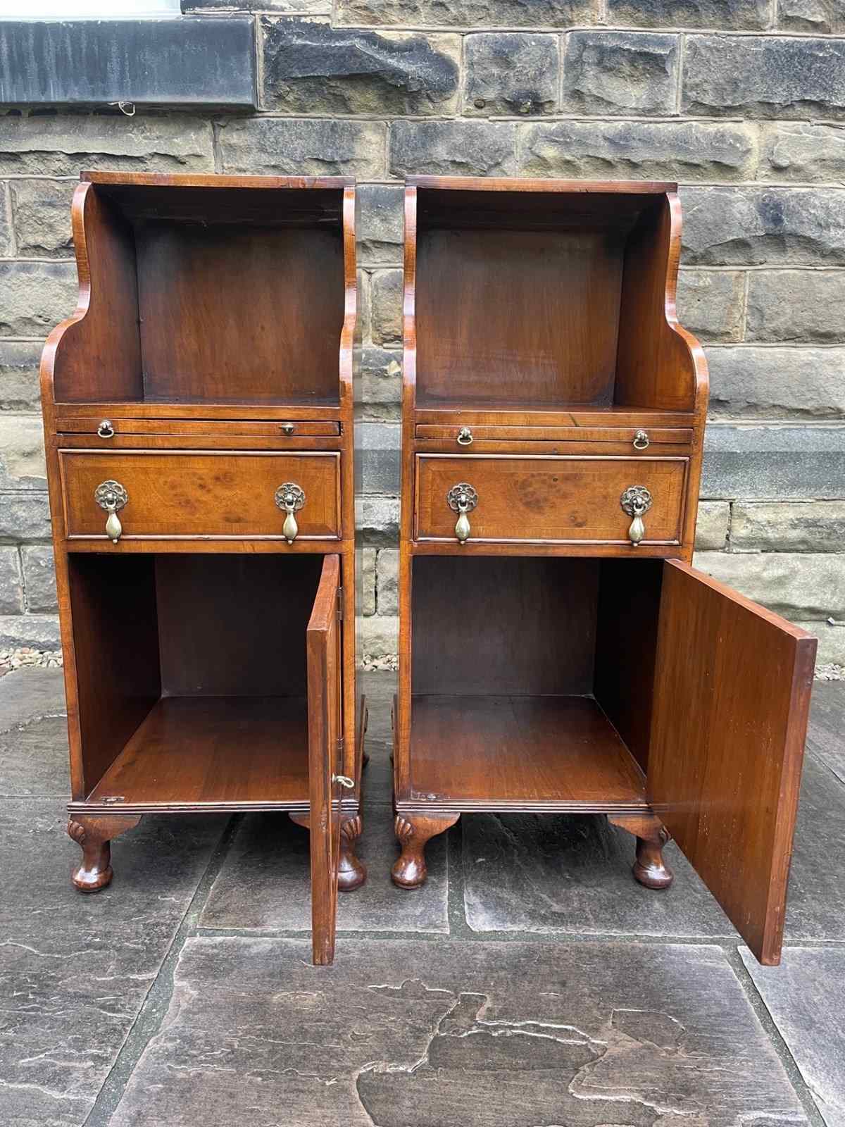 Offered for sale is this pair of antique burr walnut bedside cabinets.