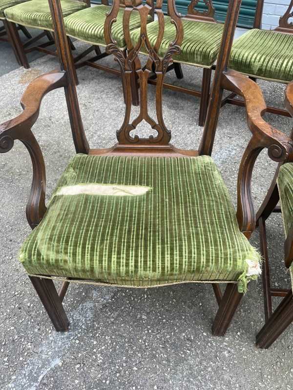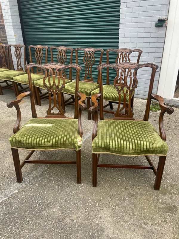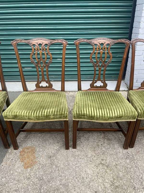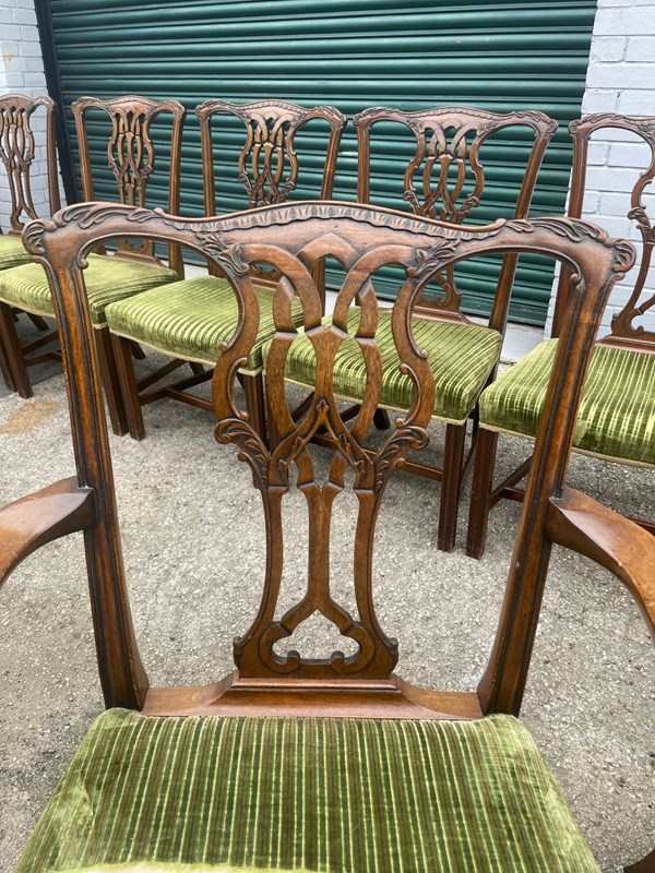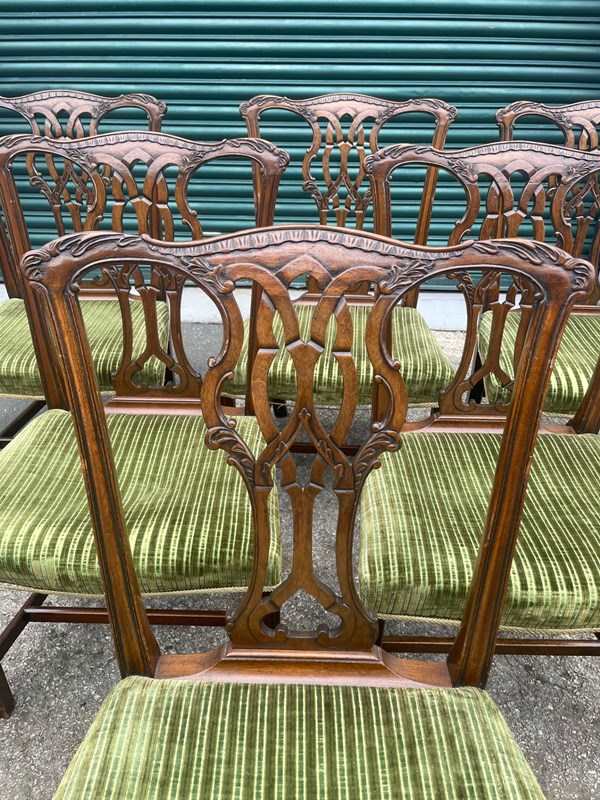 Antique Set 8 Mahogany Chippendale Style Dining Chairs