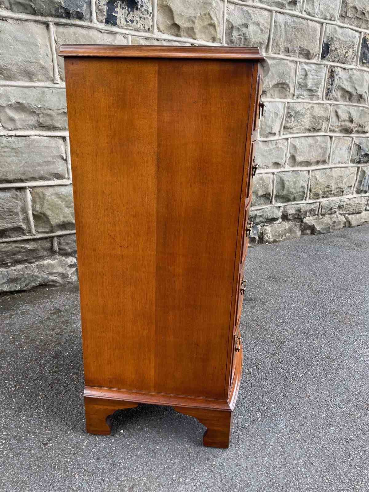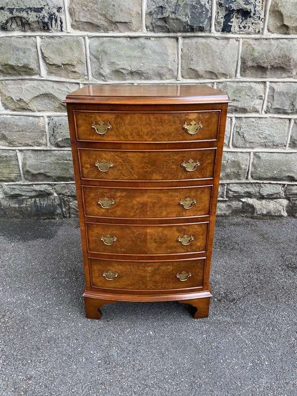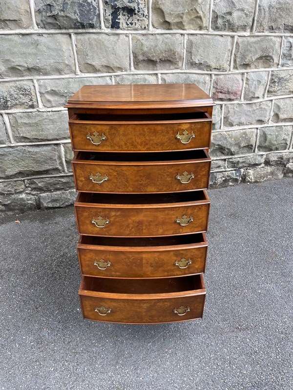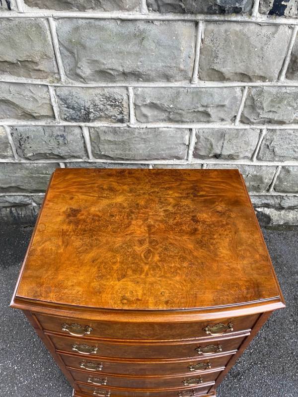 Antique Slim Burr Walnut Chest Of Draws