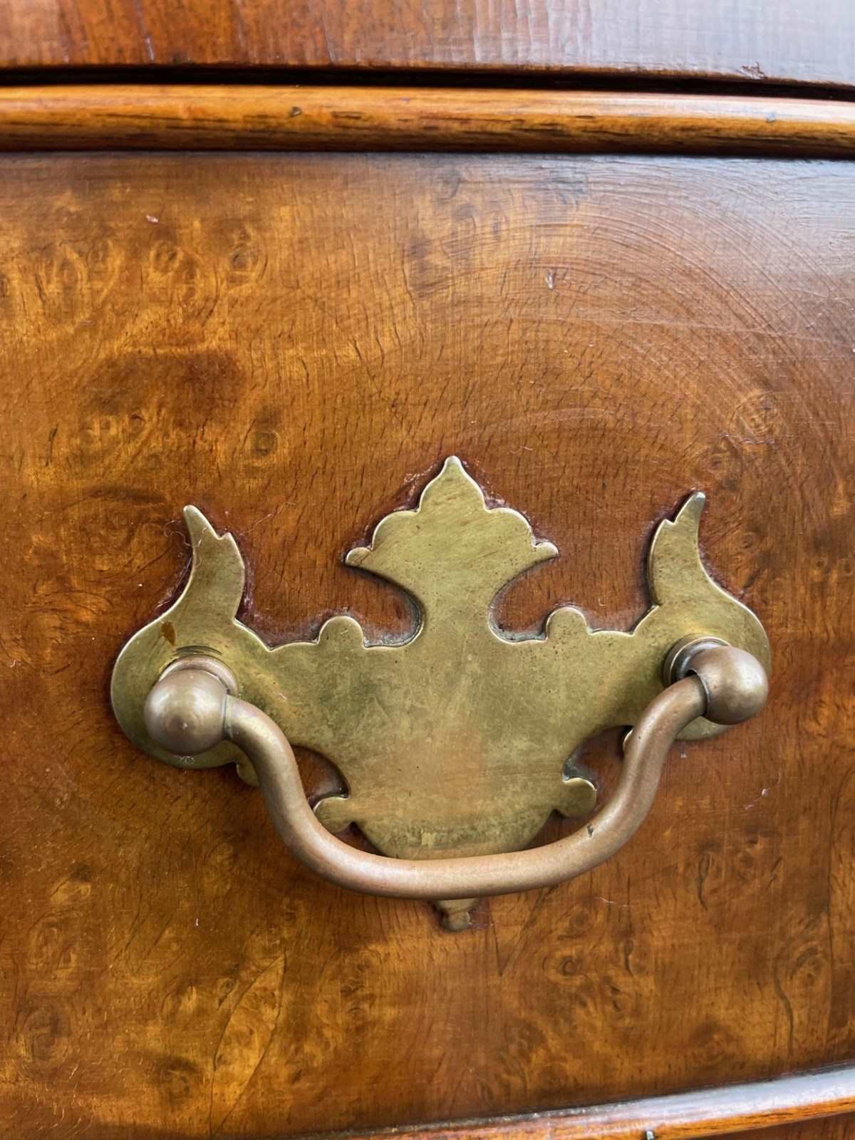 Offered for sale is this antique burr walnut bow front chest of draws.