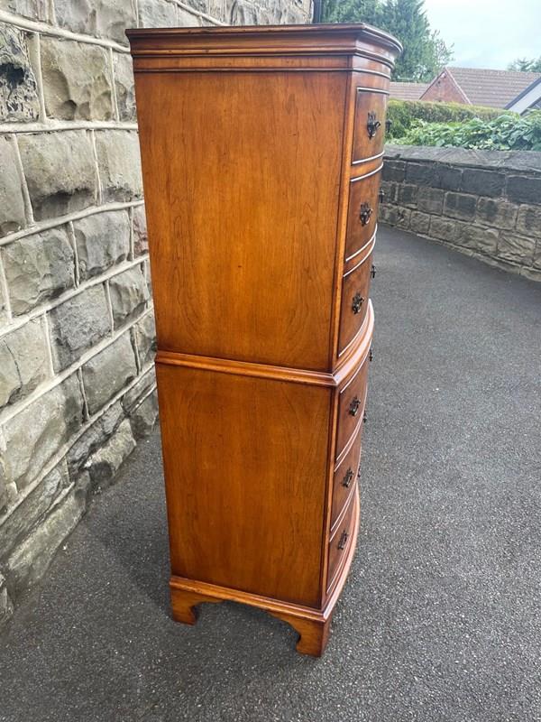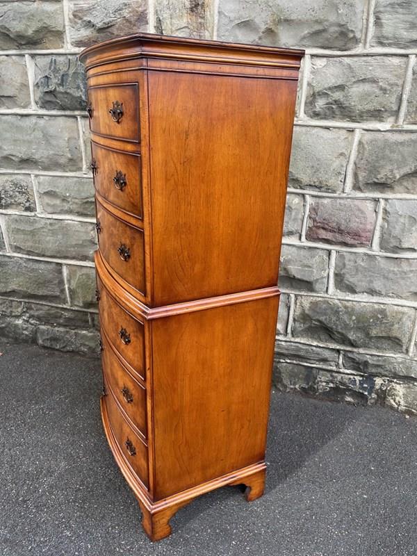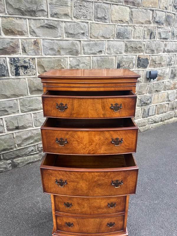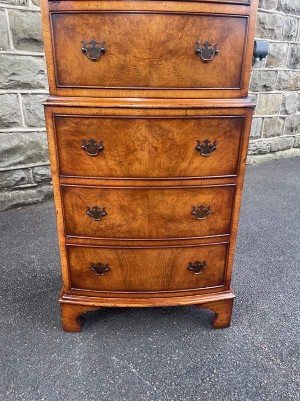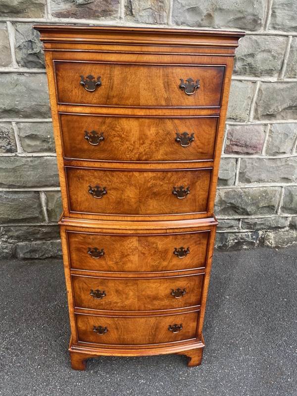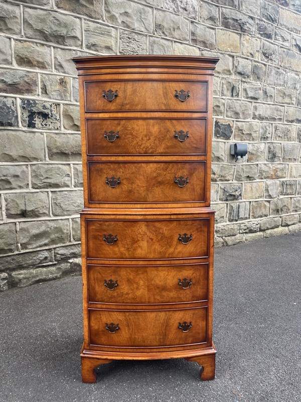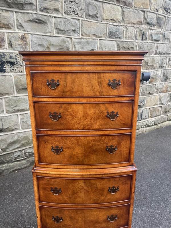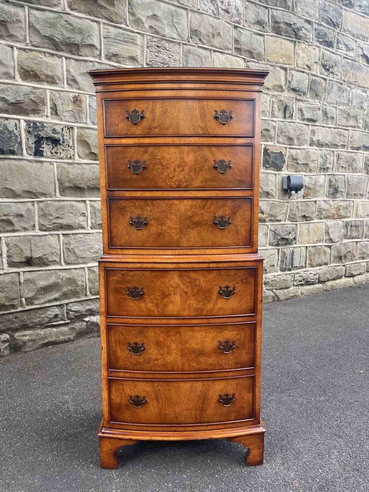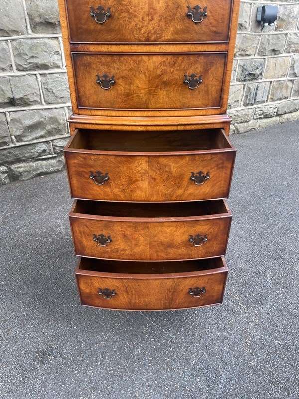 Antique Slim Burr Walnut Chest On Chest Tallboy