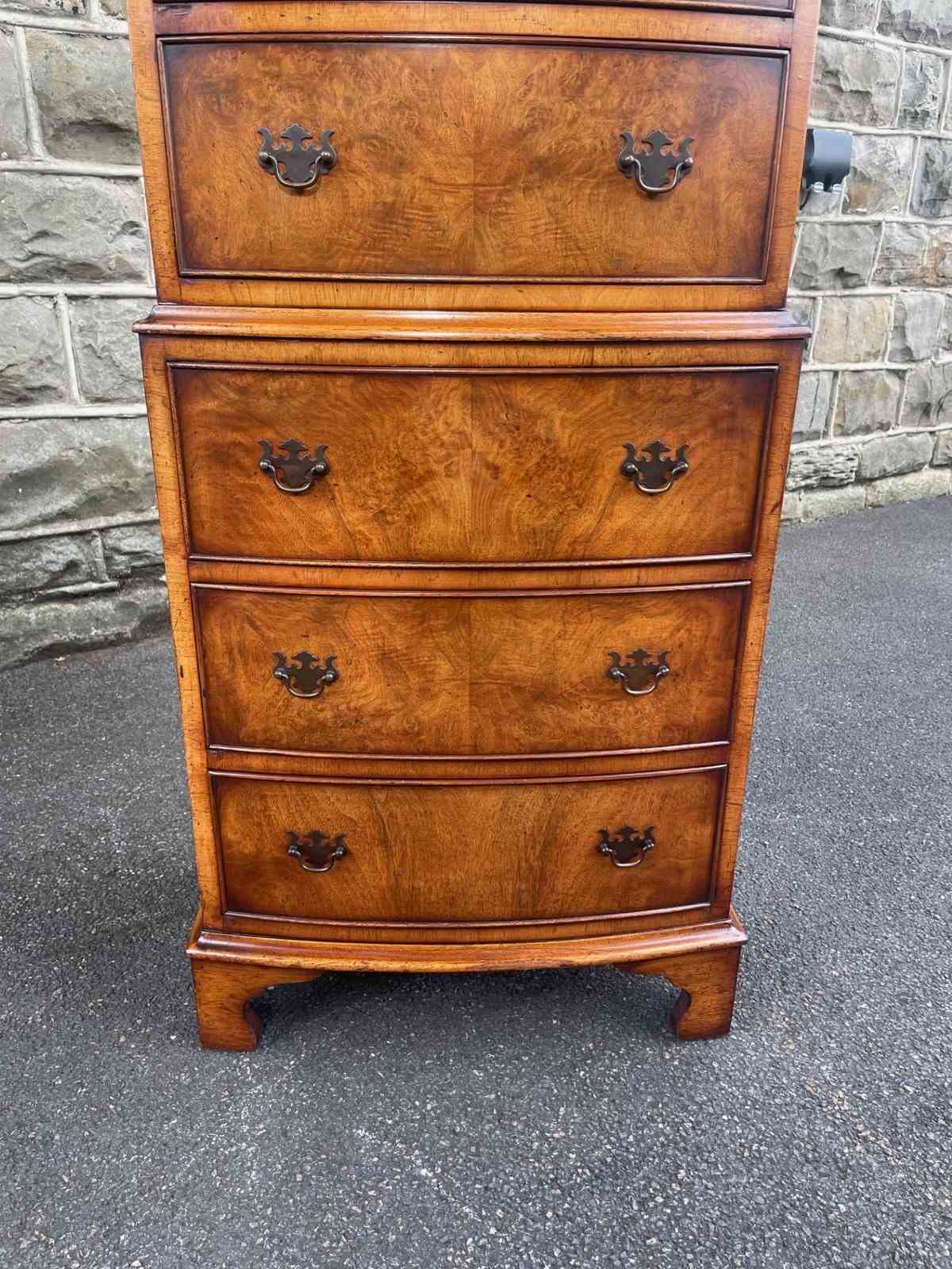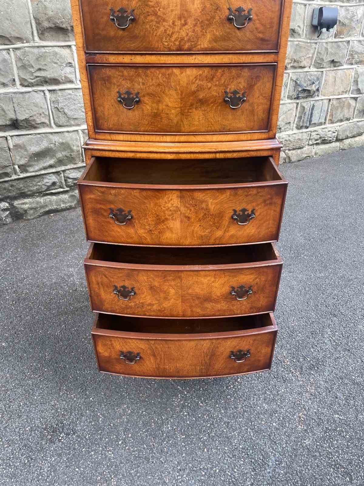 Offered for sale is this antique burr walnut bow front chest on chest.