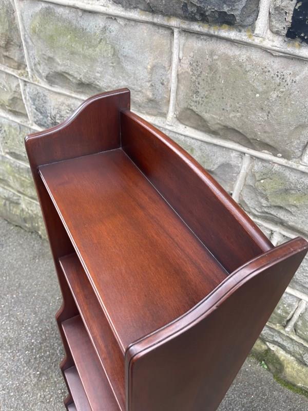 Made from mahogany, shaped gallery back with fixed shelves graduated in height.