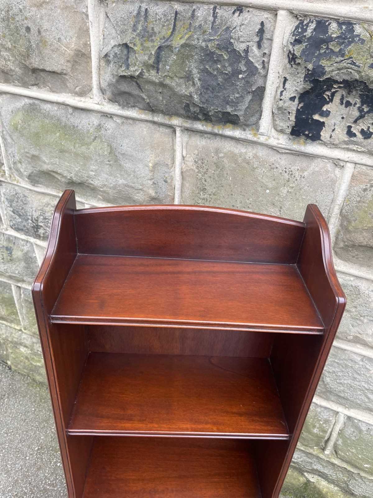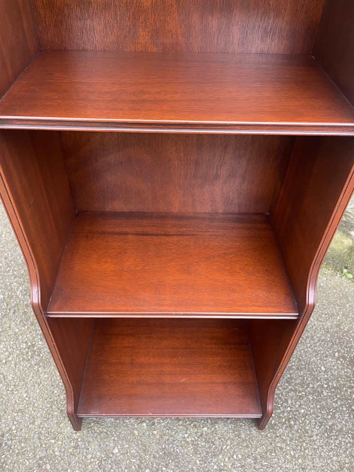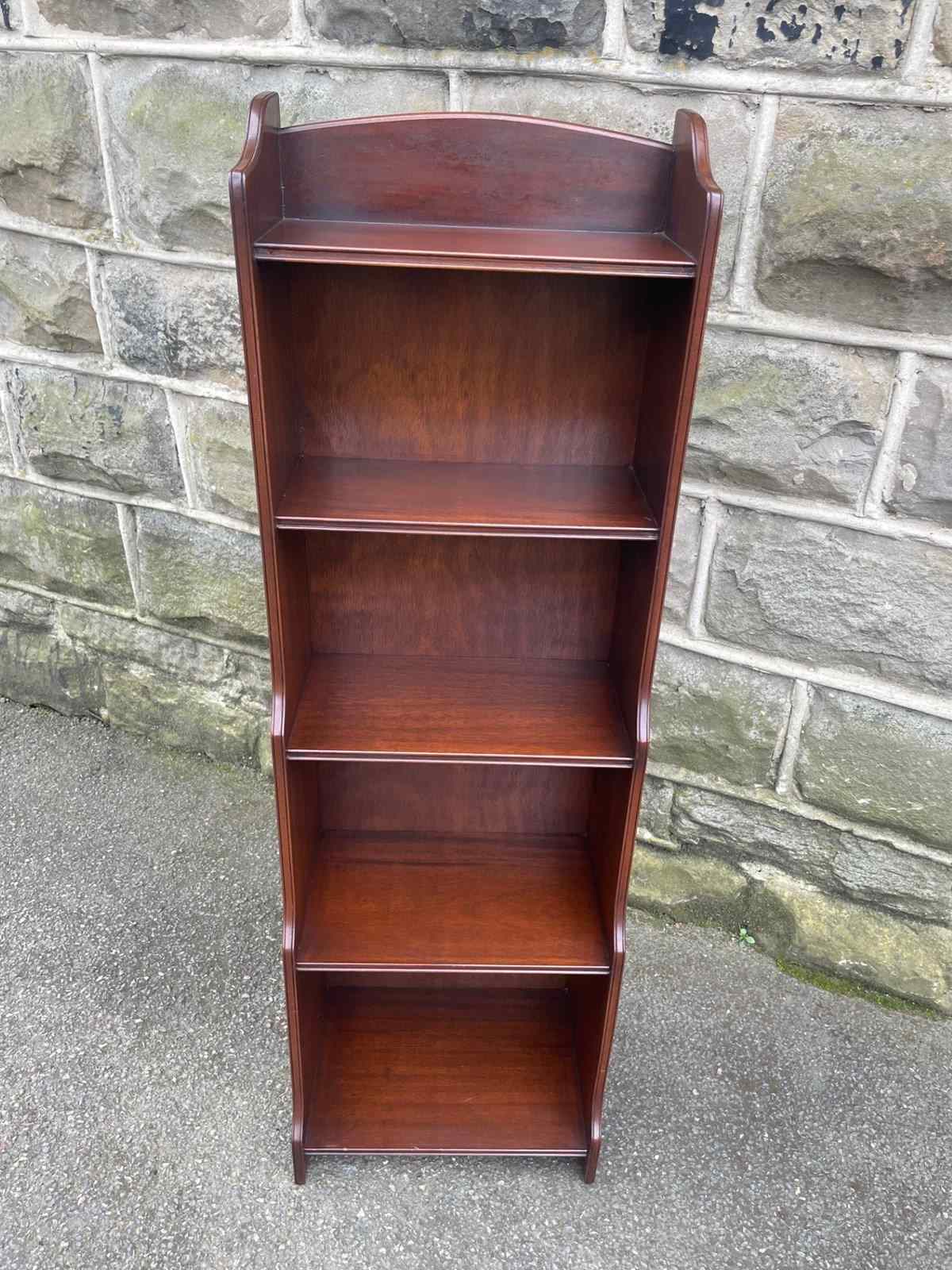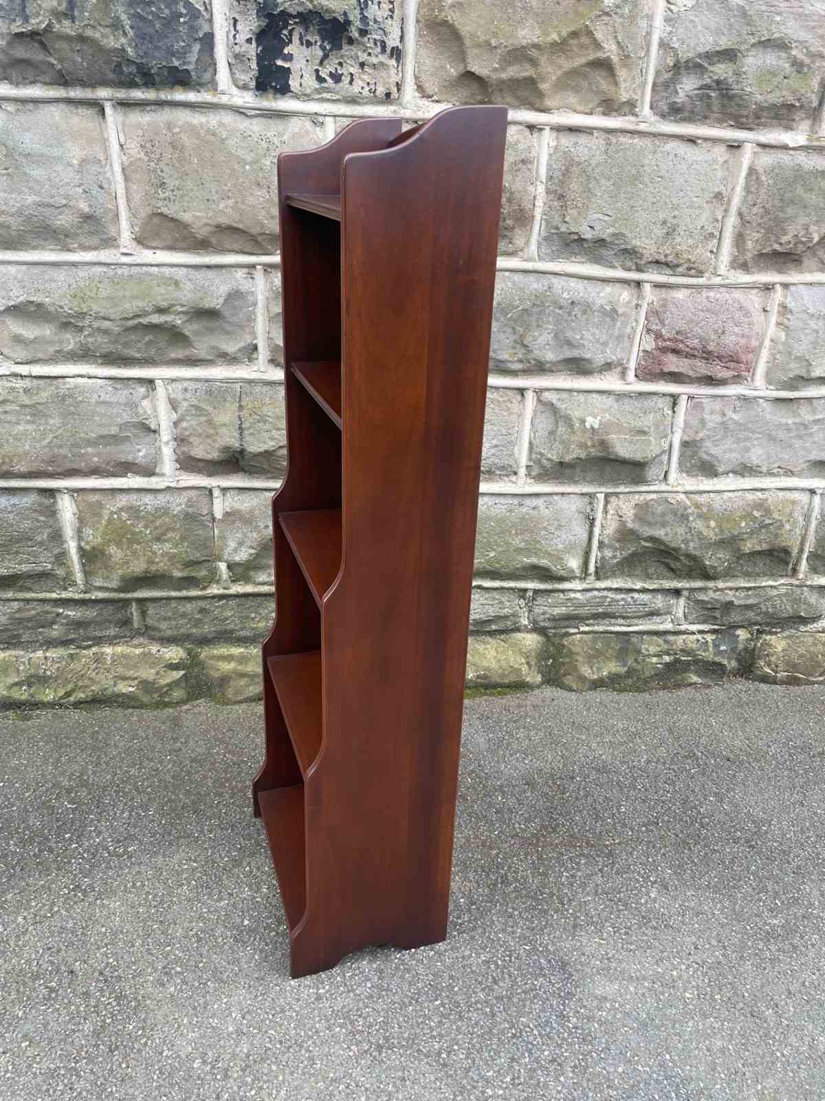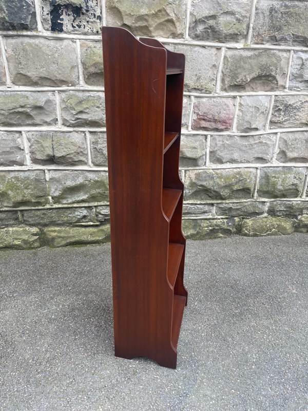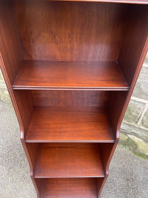 Antique Slim Mahogany Waterfall Open Bookcase Bookshelf