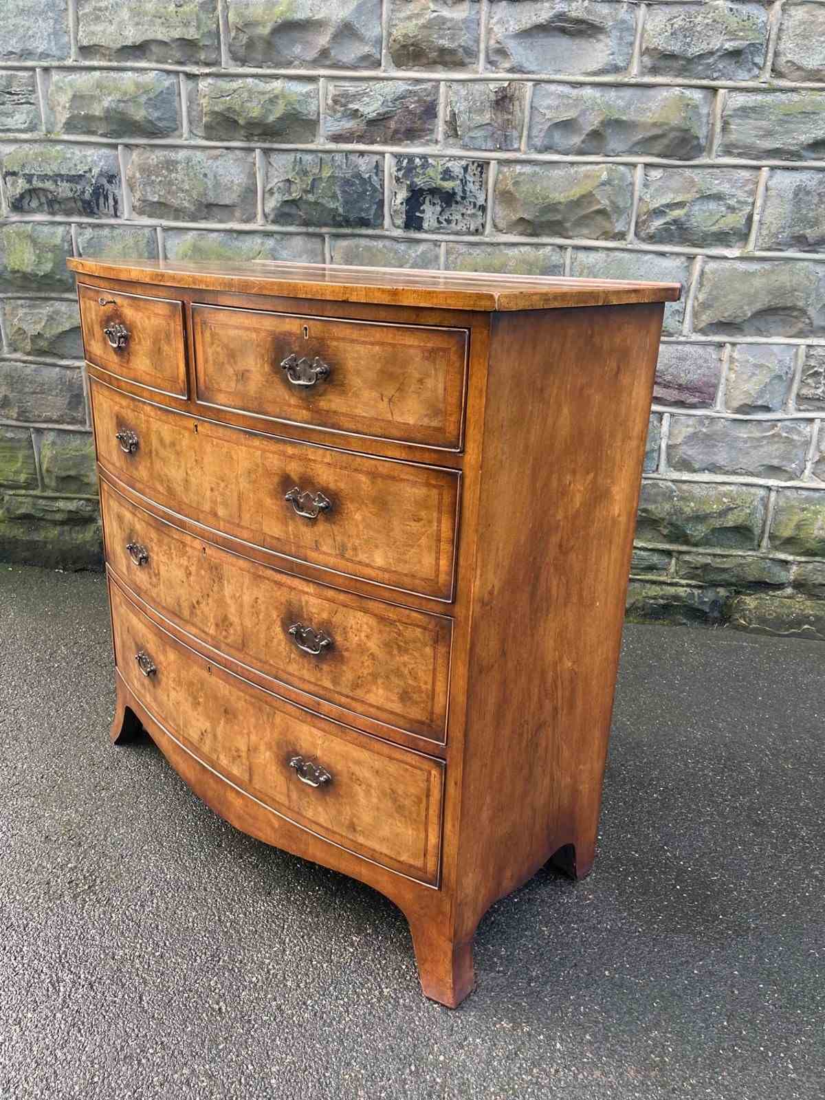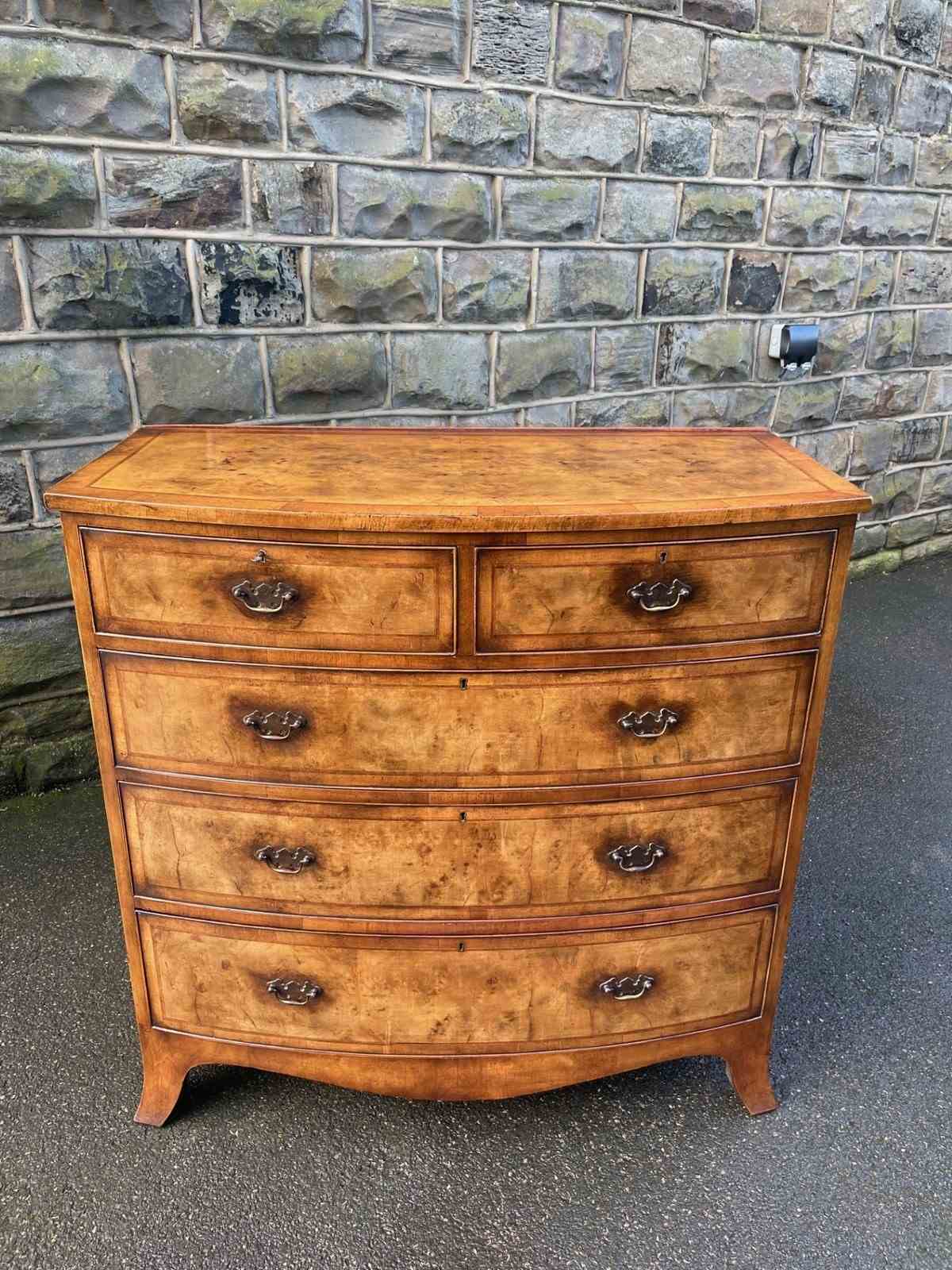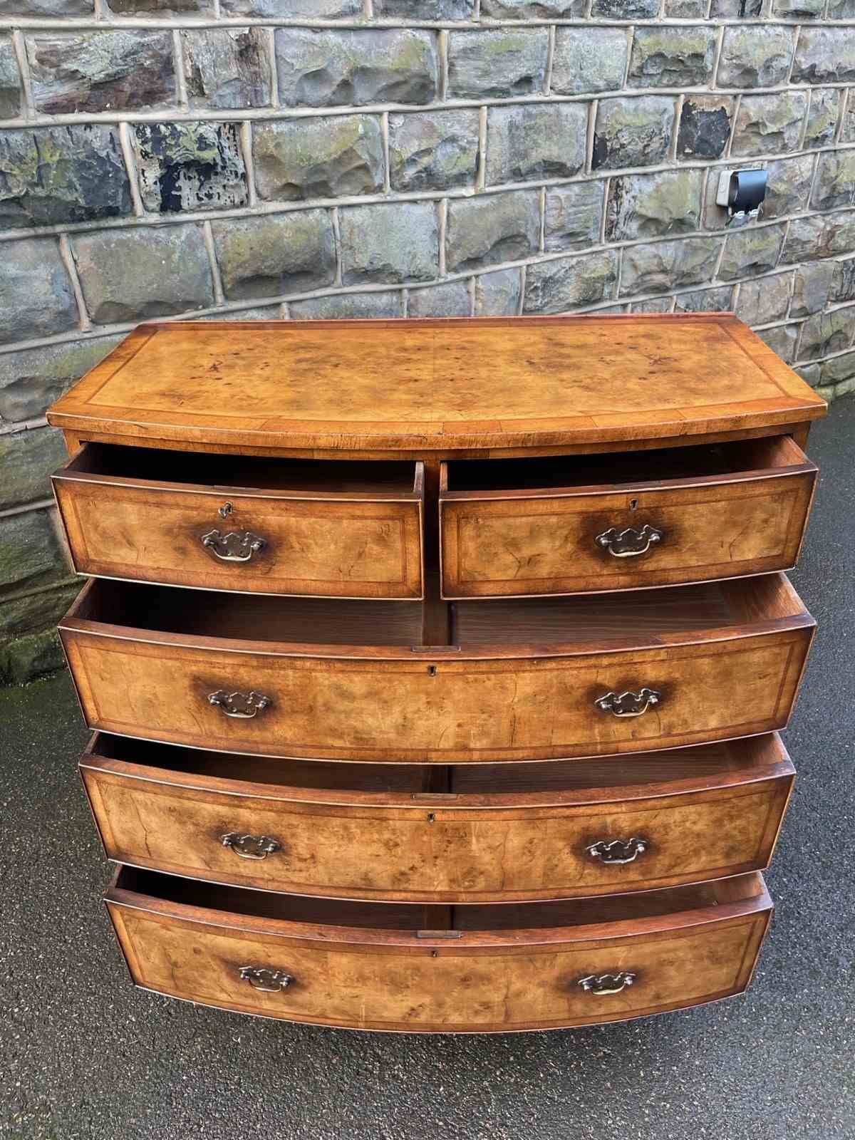 Antique Victorian Burr Walnut Bow Front Chest Draws
