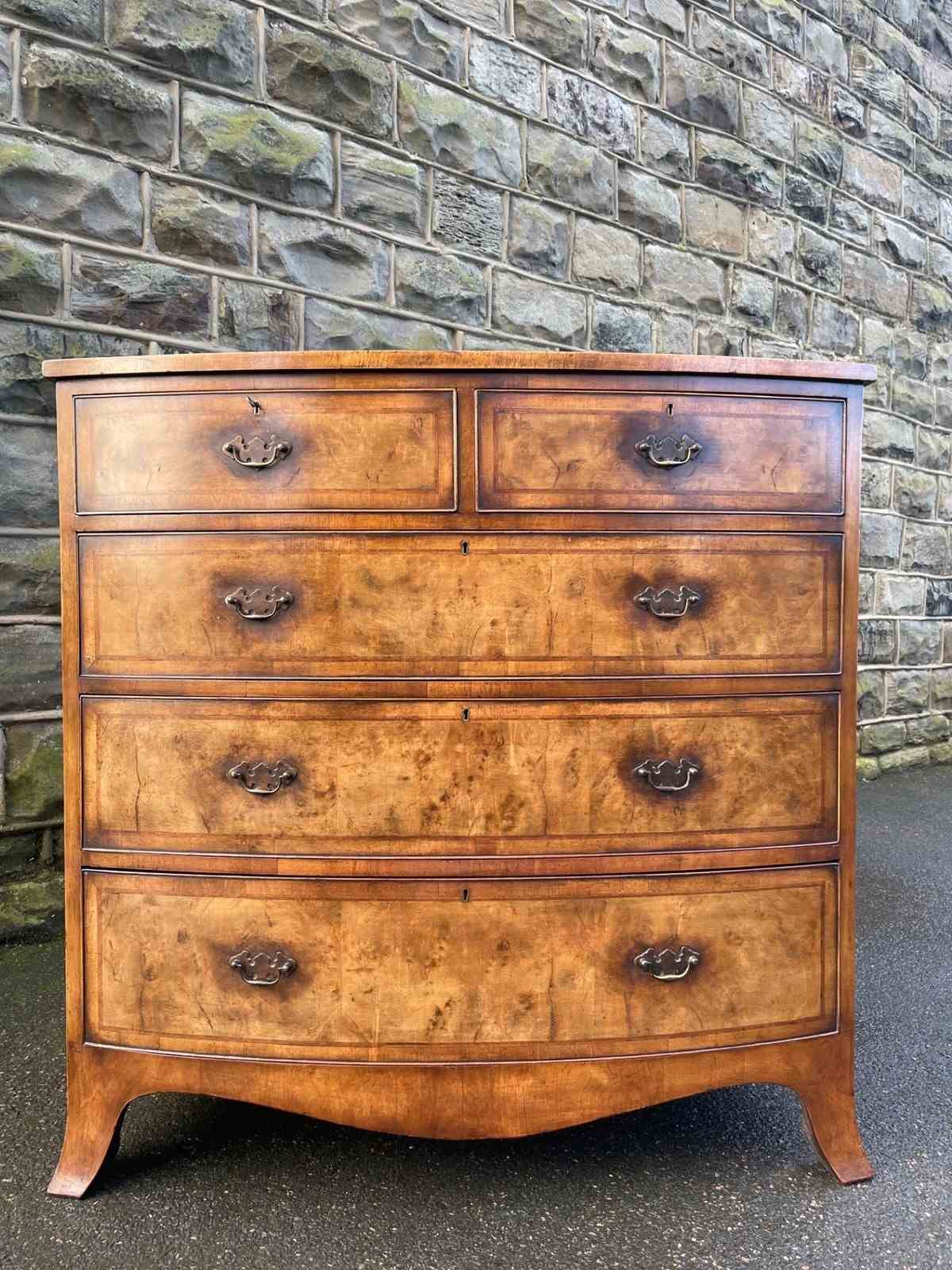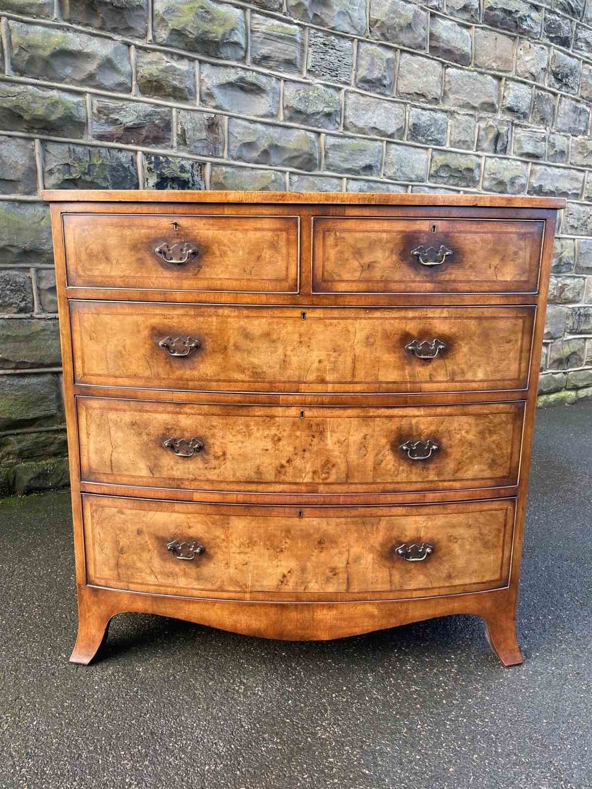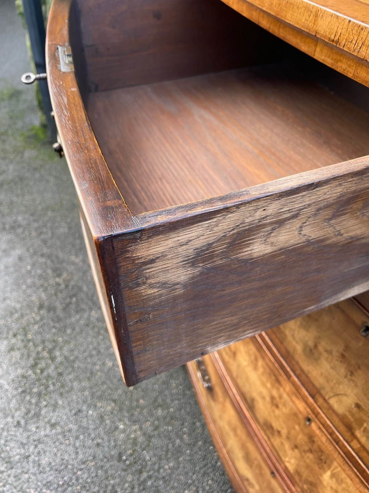 Antique Victorian Burr Walnut Bow Front Chest Draws