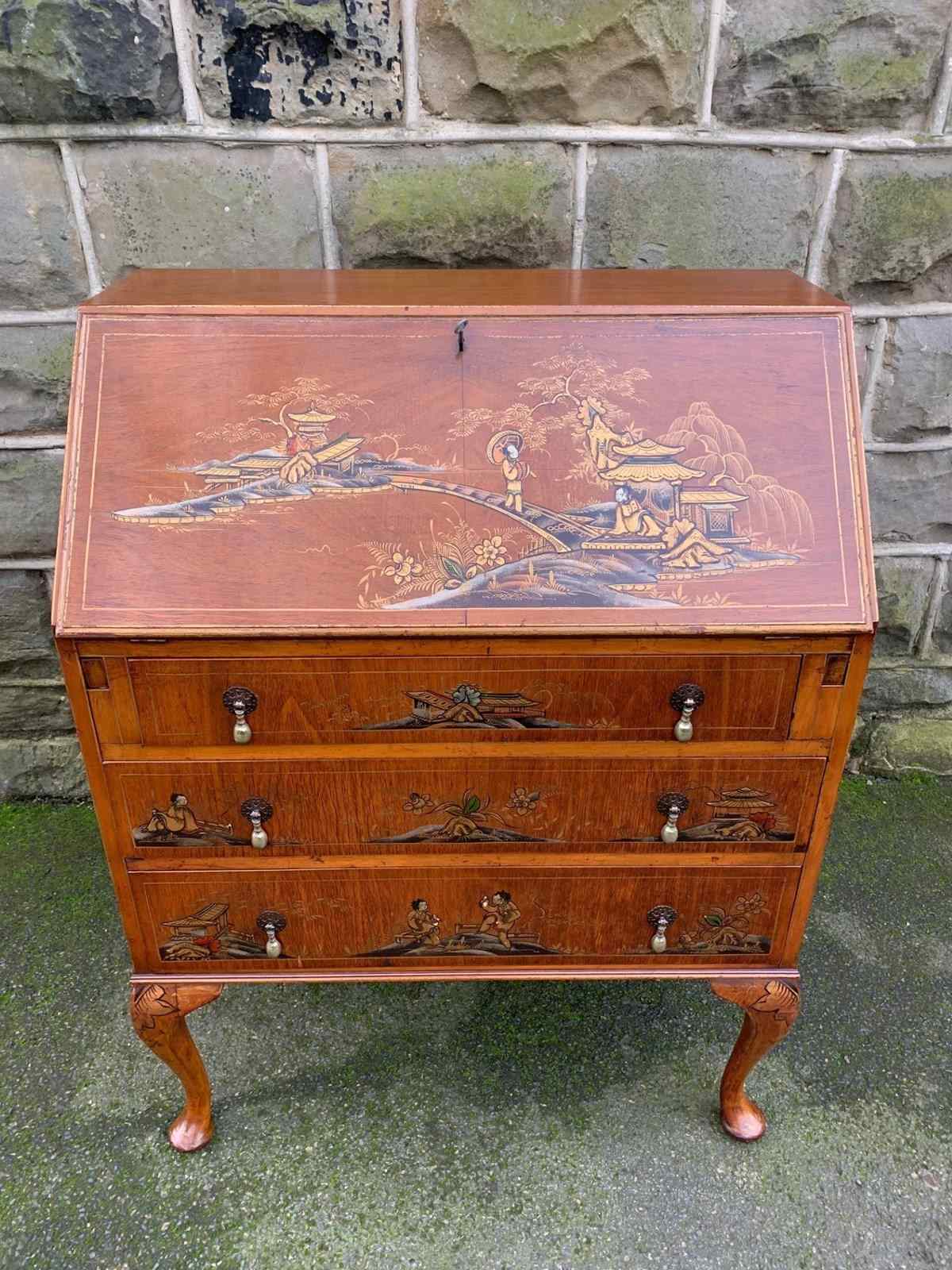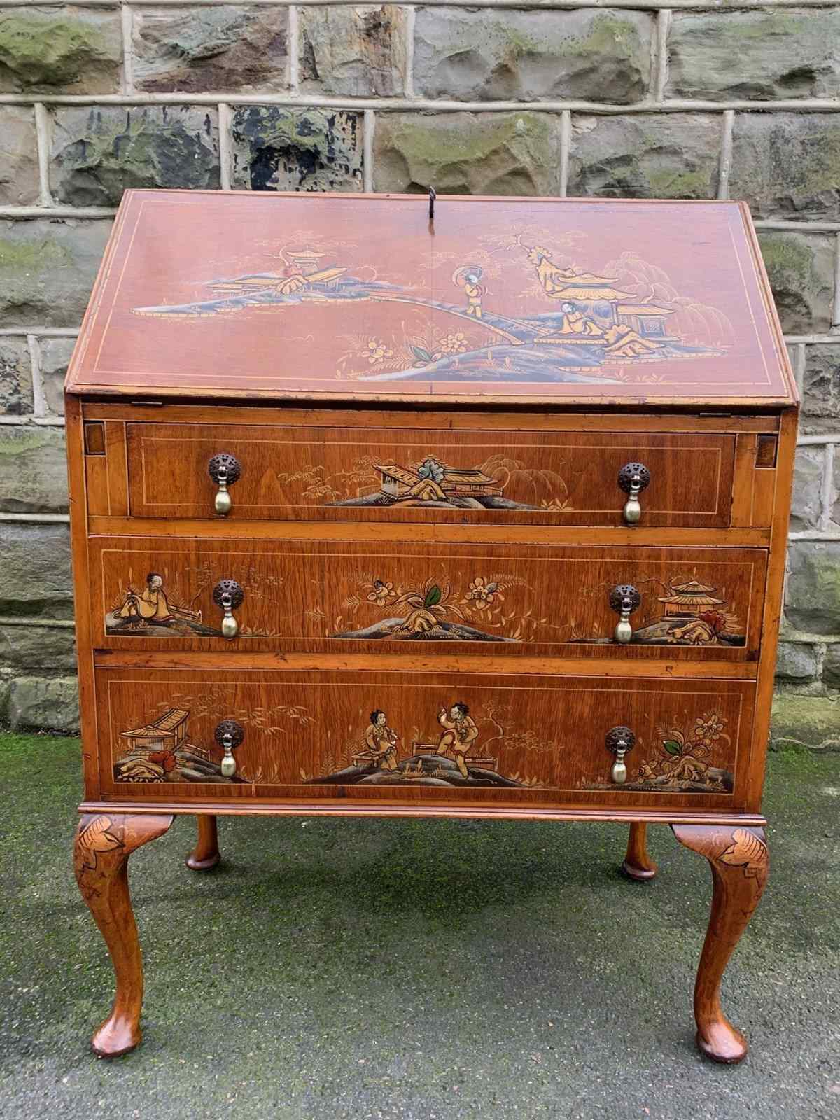 Antique Walnut & Chinoiserie Decorated Bureaux Desk