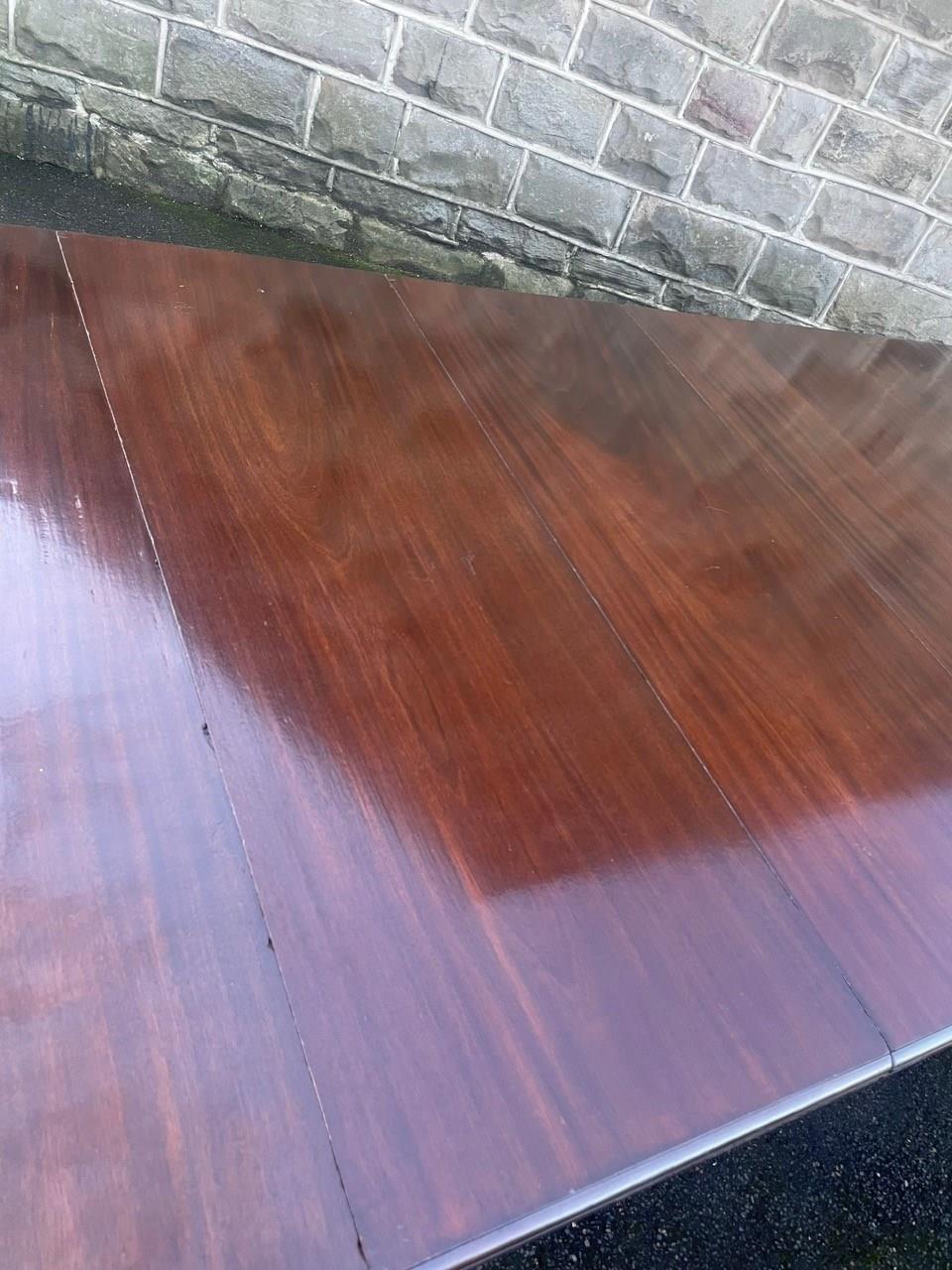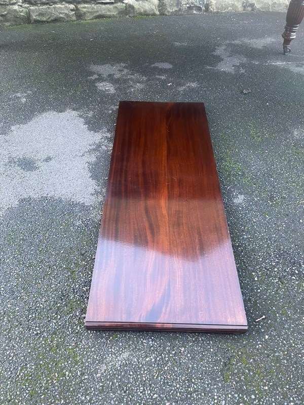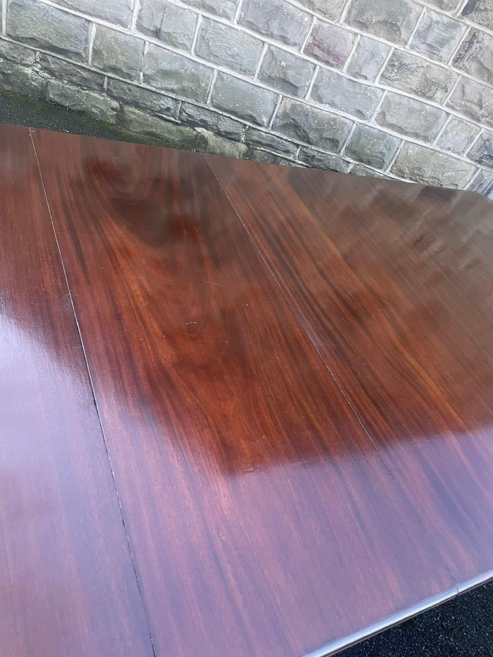 In solid walnut it has a wind out extending mechanism with 3 original insertion leaves. Standing on good thick turned walnut legs with brass & ceramic castors. Winds outs smoothly and the top is a lovely colour. The table can be used with just 1, 2 or all 3 leaves in.