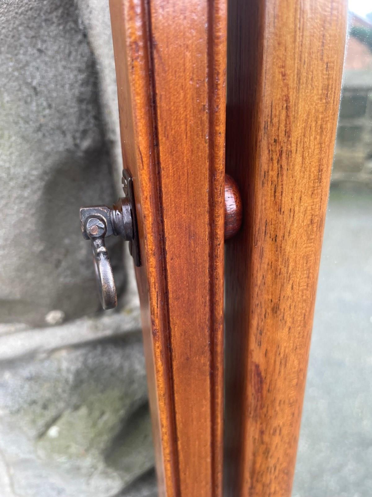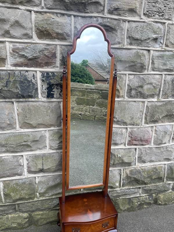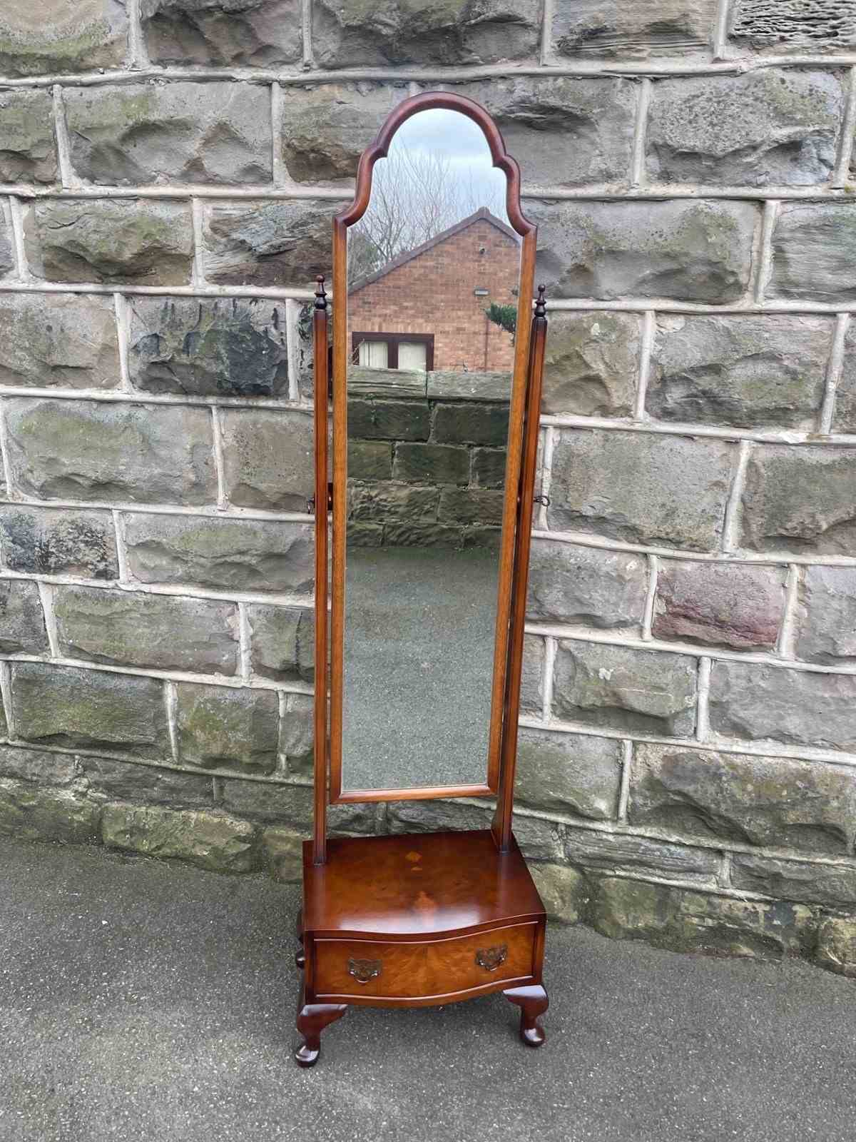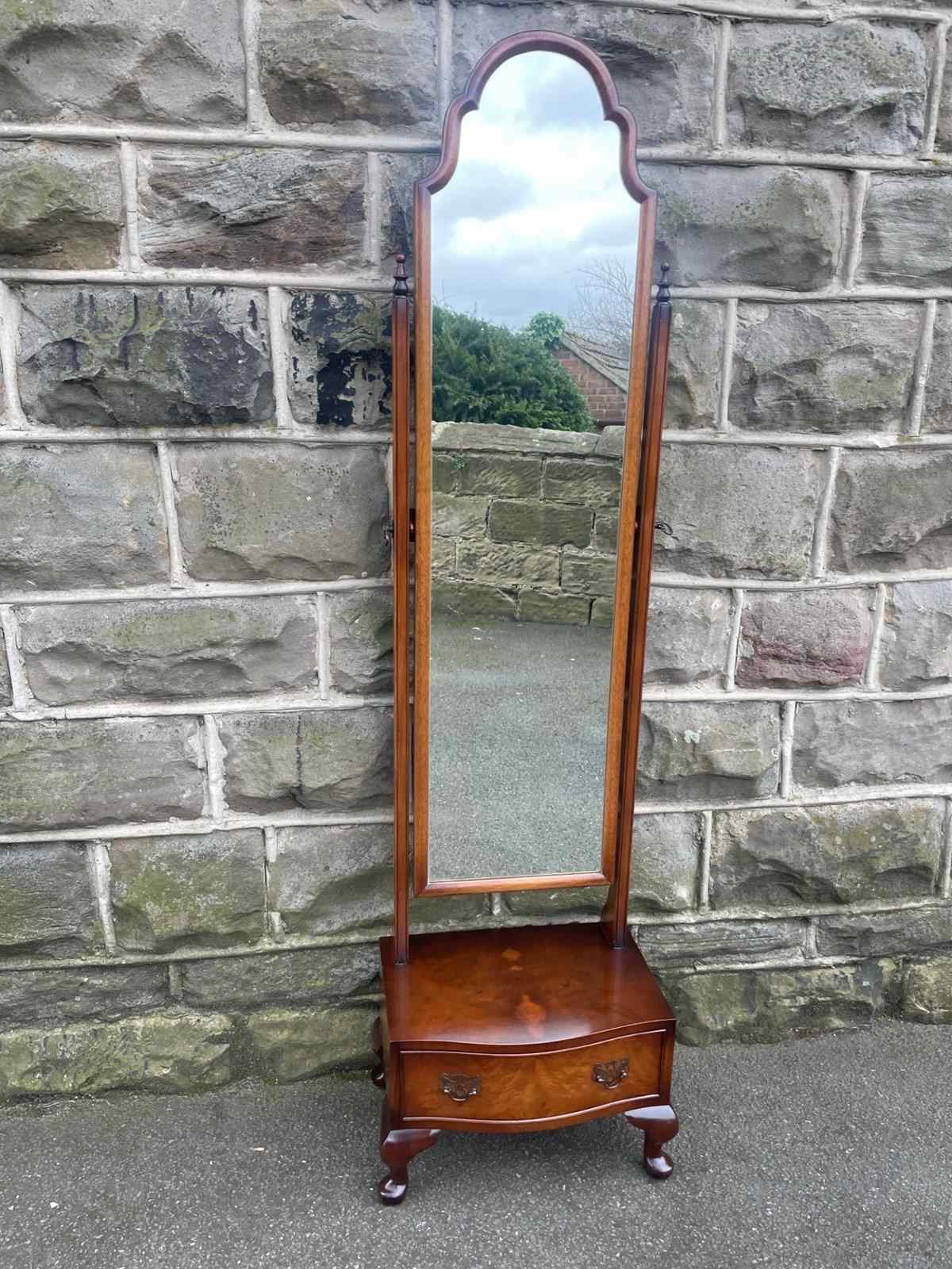Offered for sale is this nice quality antique walnut cheval dressing mirror.