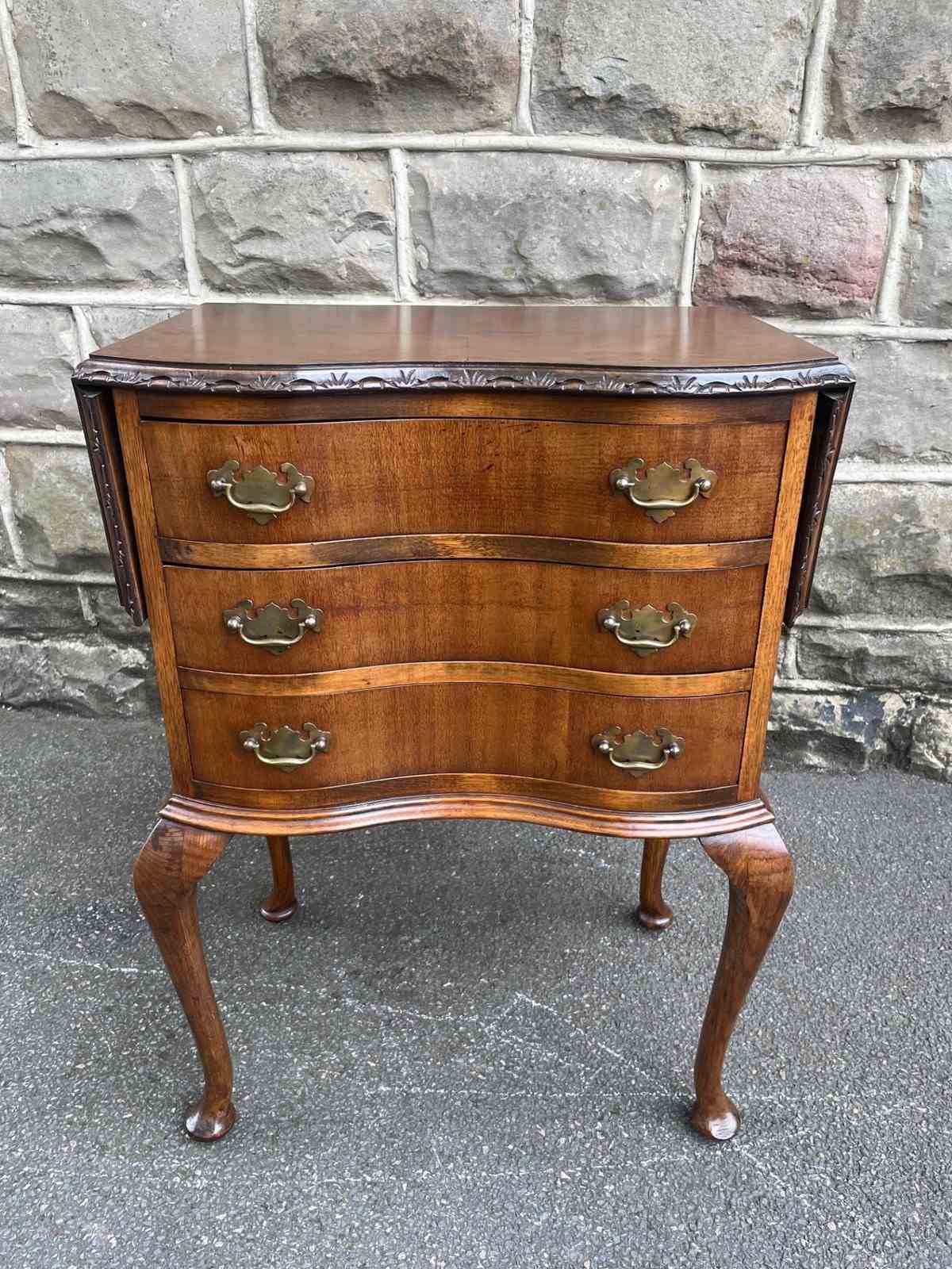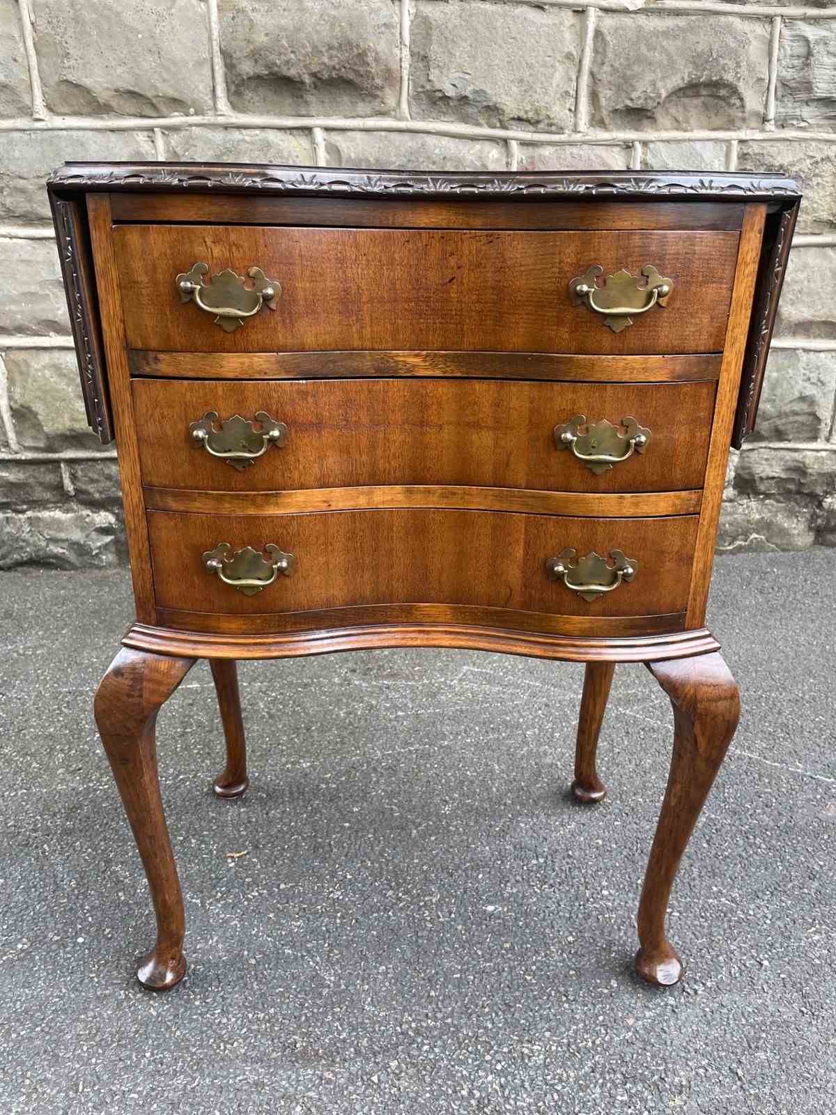 Antique Walnut Drop Flap 3 Draw Bedside Chest