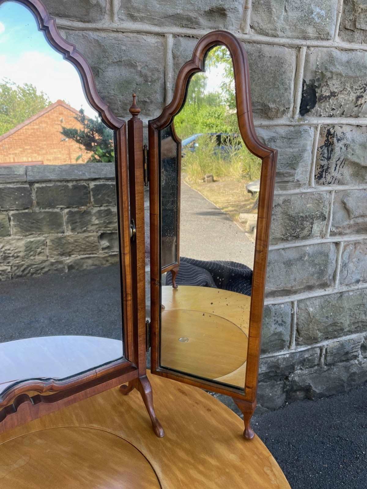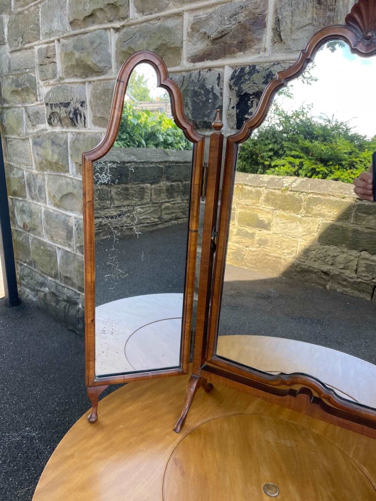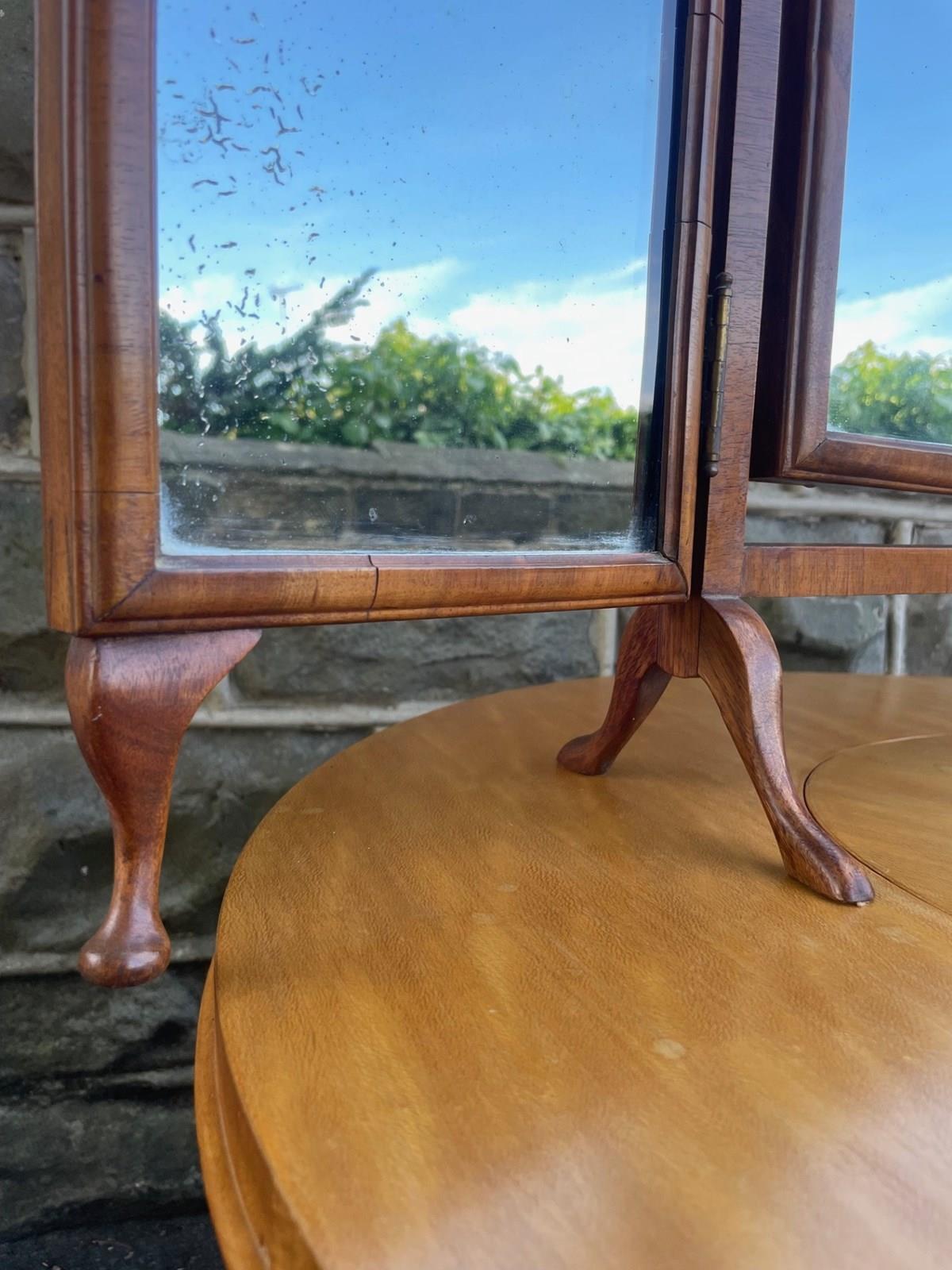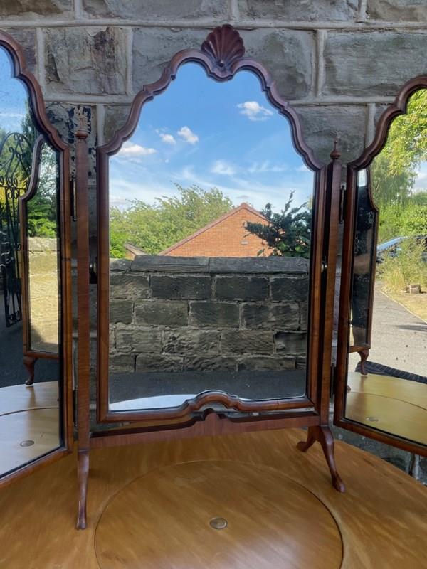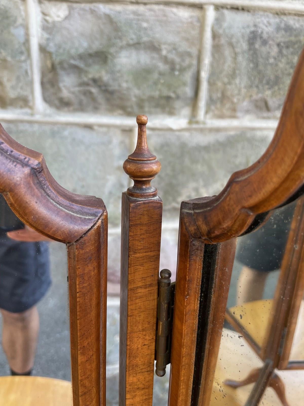 Antique Walnut Trip-Tych Dressing Table Mirror