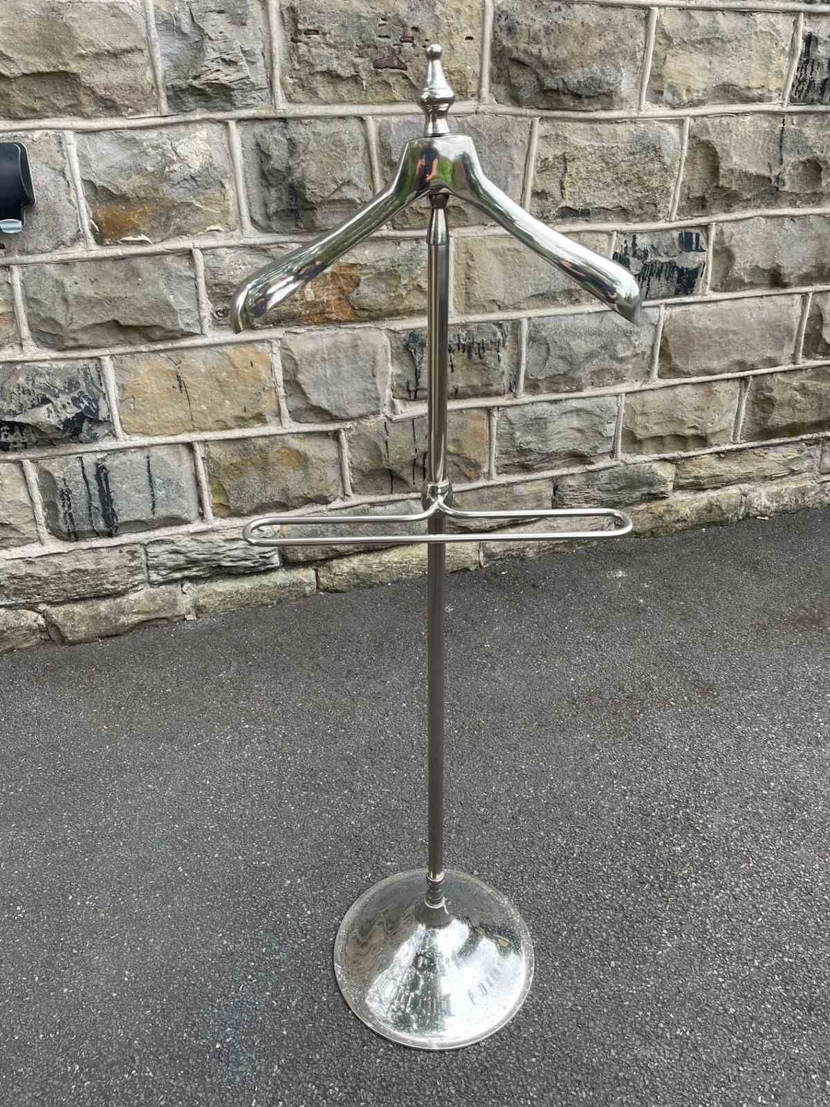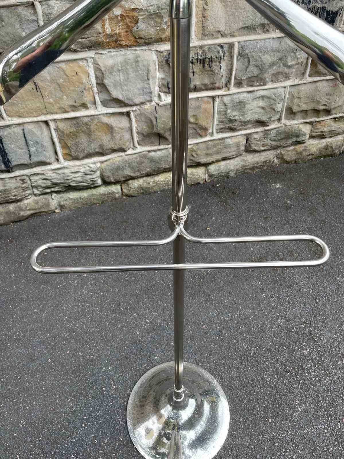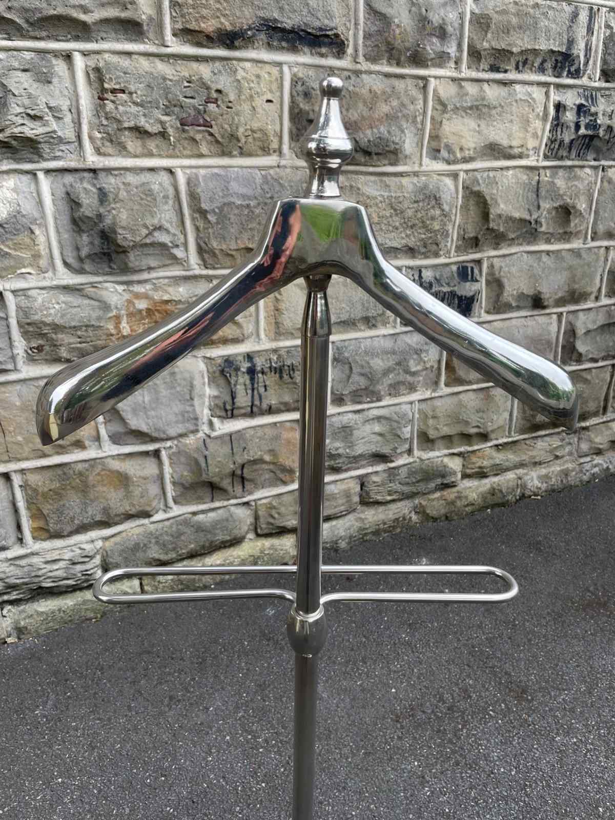 Offered for sale is this gents polished chrome valet clothes stand.