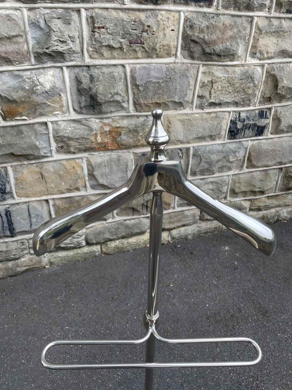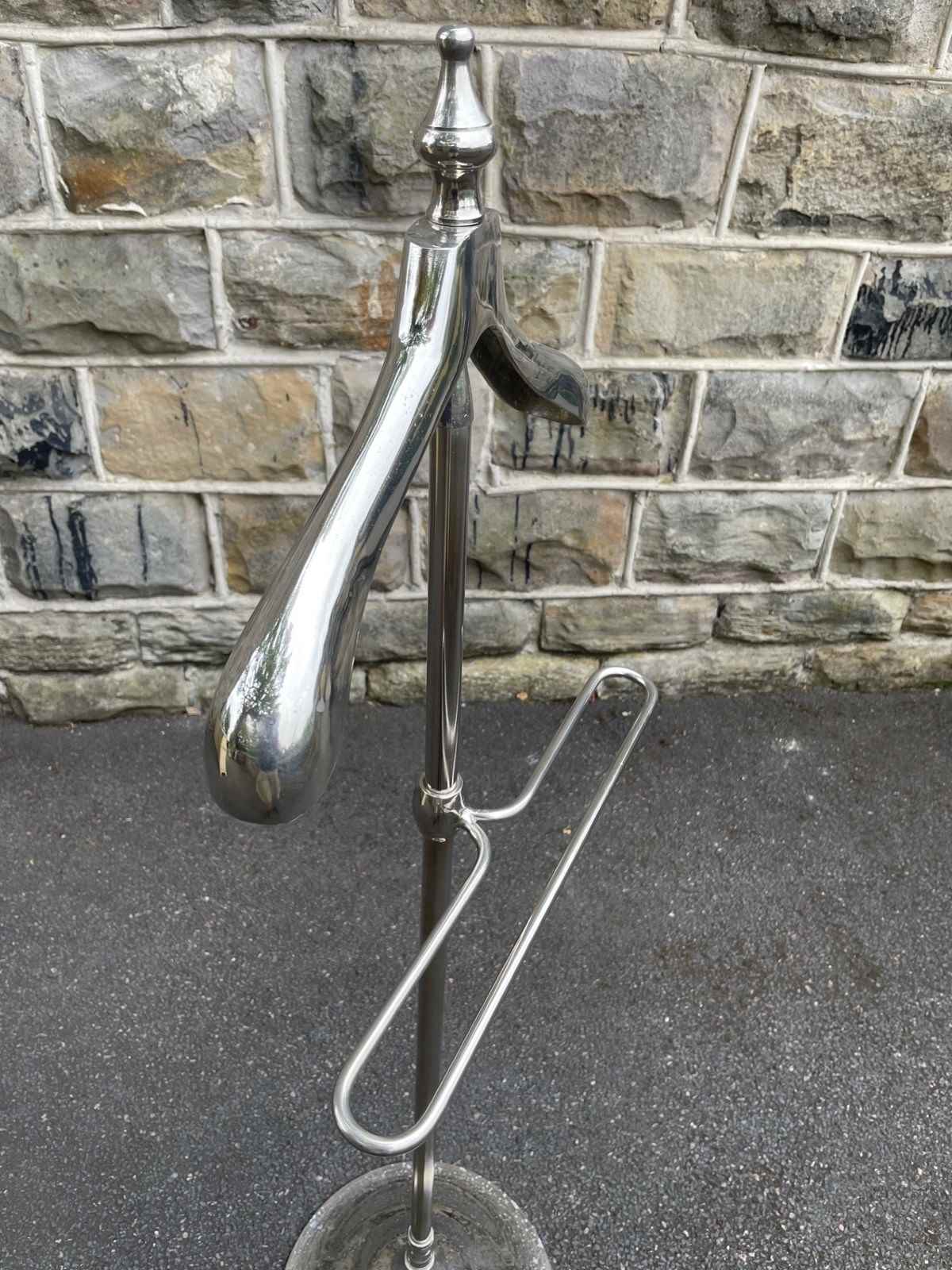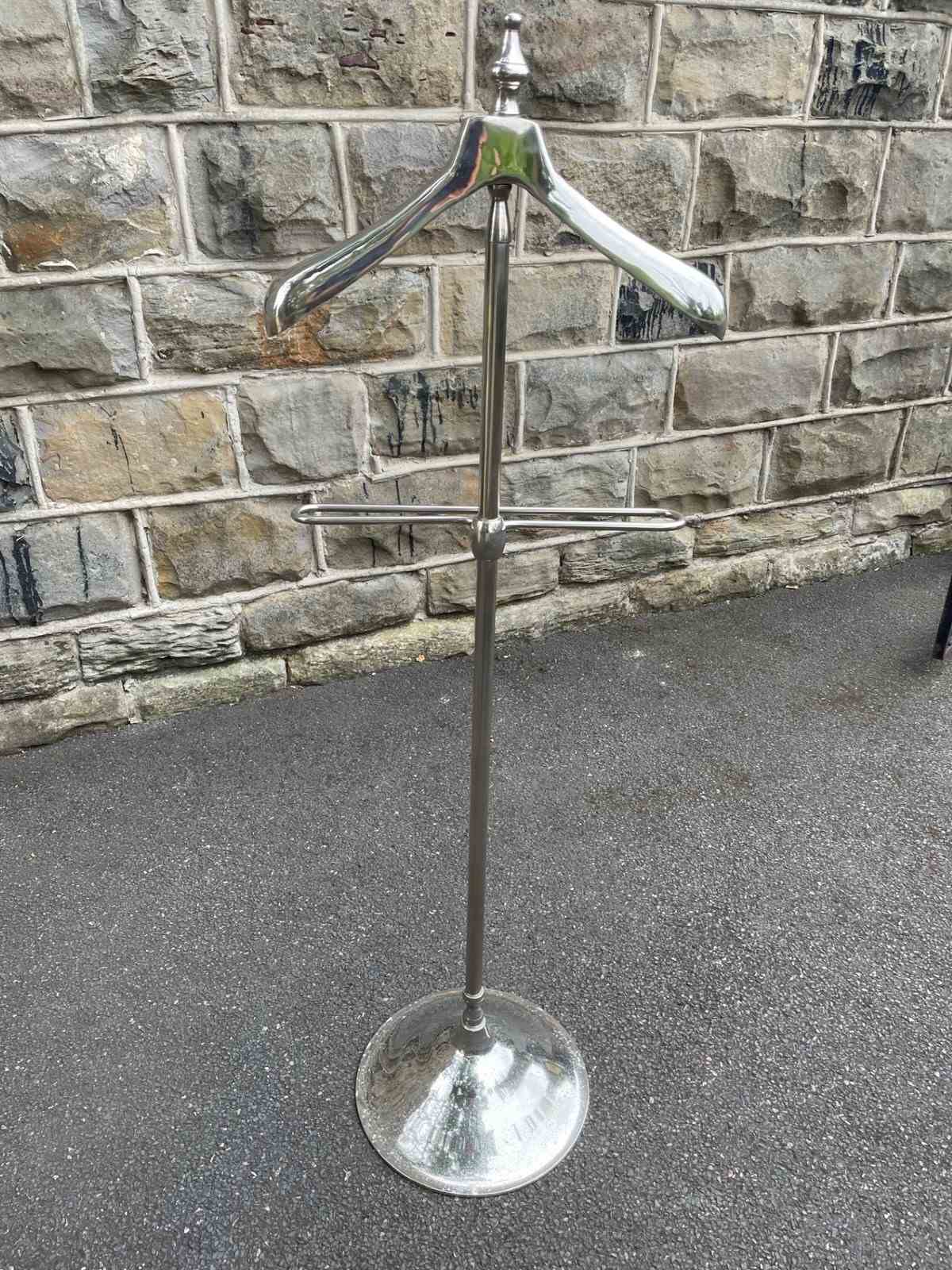 Offered for sale is this gents polished chrome valet clothes stand.