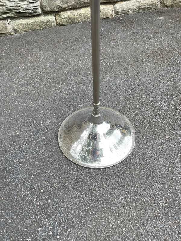 In chrome having a finial top, coat hanger, trouser rail hanger on turned column with a round base.