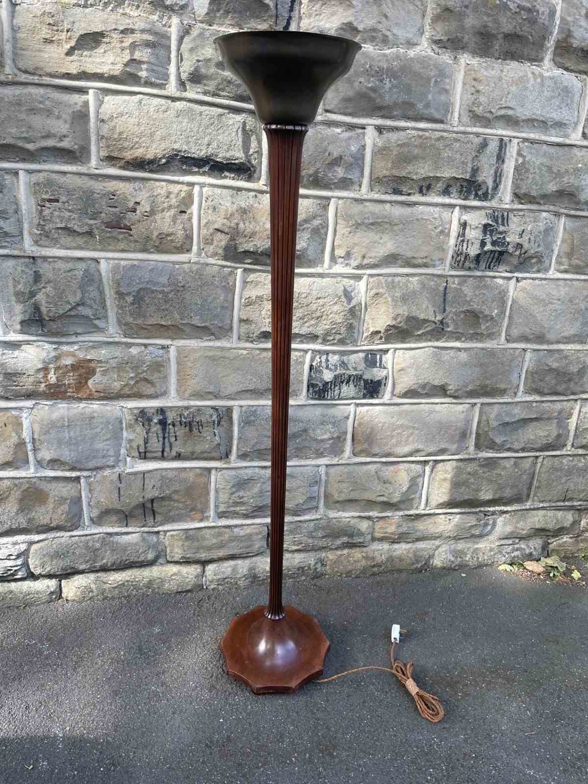 Art Deco Walnut Uplighter Floor Lamp