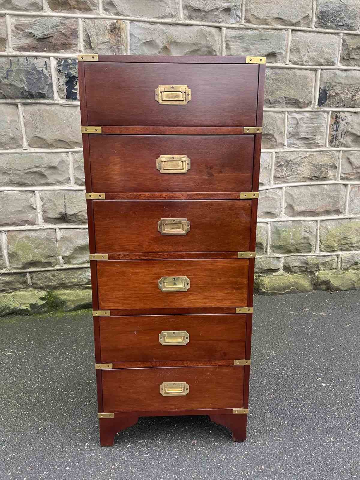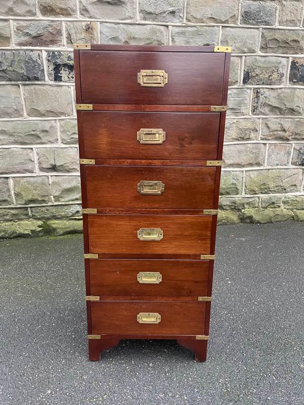 Brass Bound Mahogany Military Campaign Style Chest Draws