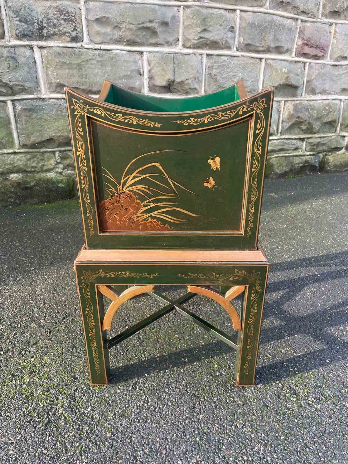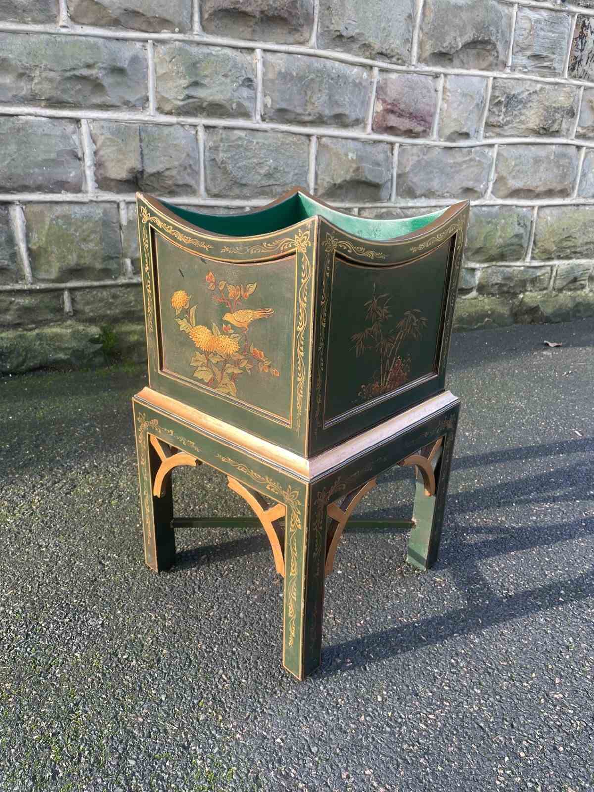 Decorative Green Lacquered Chinoiserie Plant Stand