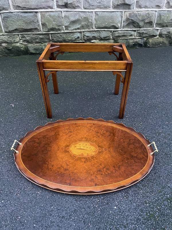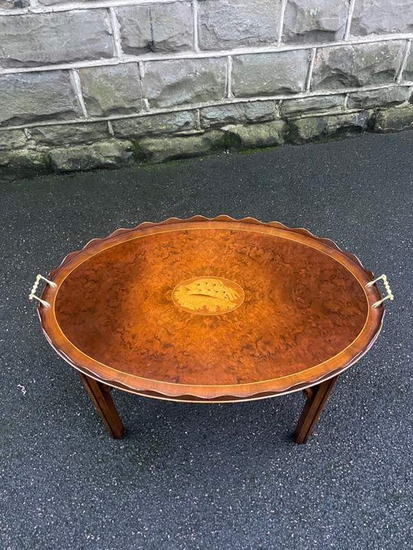 Inlaid Burr Walnut Tray On Stand Coffee Table