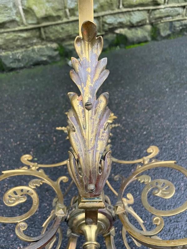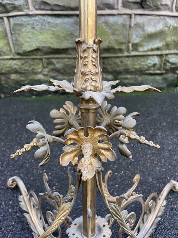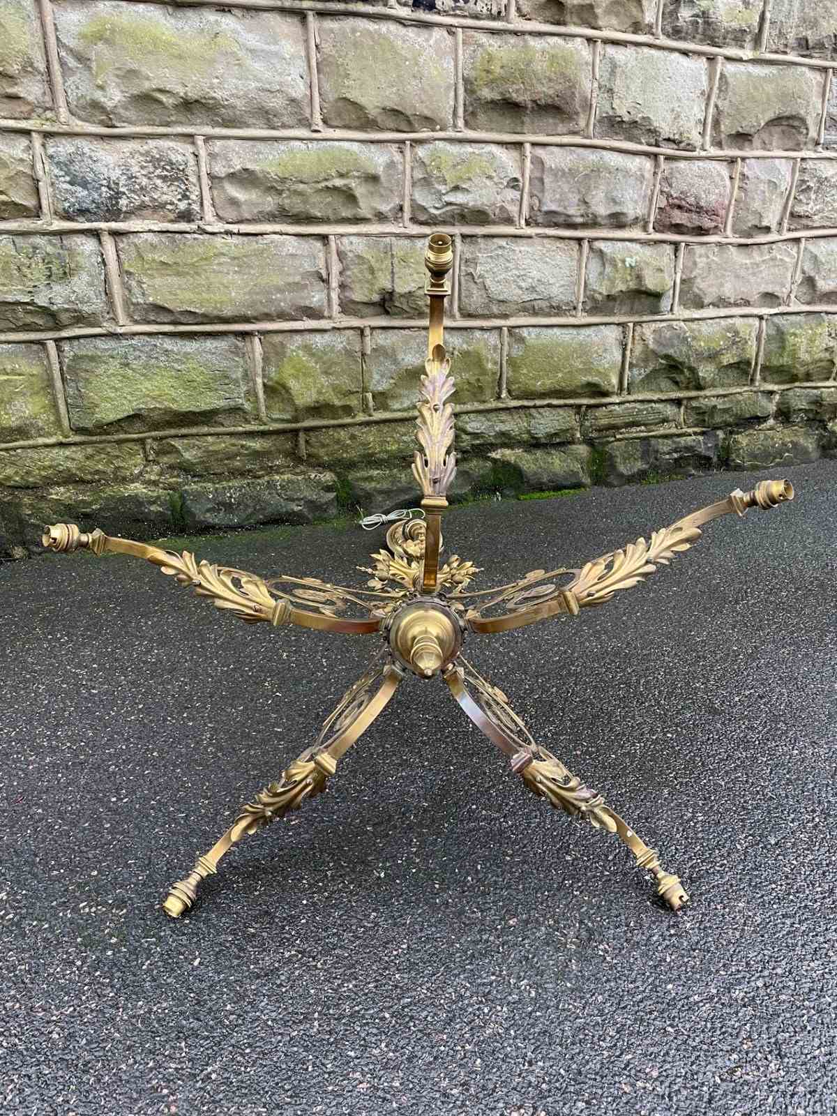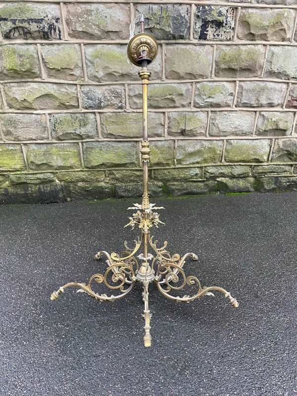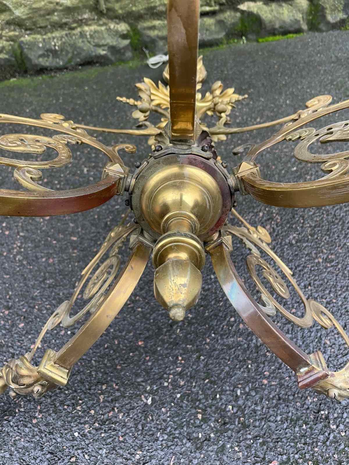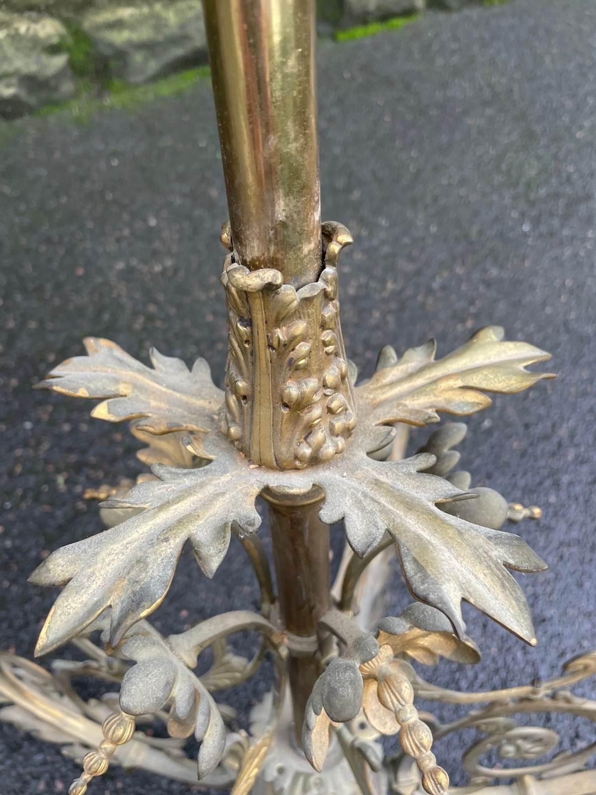 Great size & scale. 135cm high, brass central column with 5 scrolling arms with leaf decoration. English bayonet bulb fitting. Fully wired