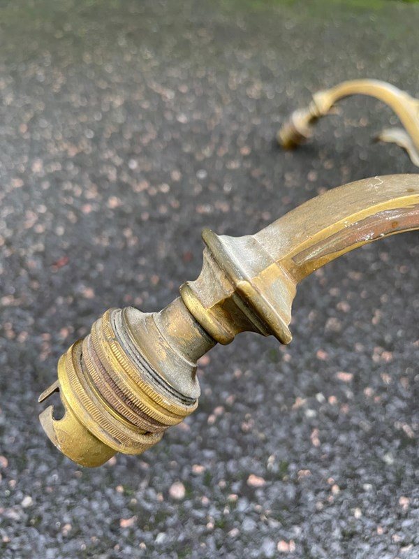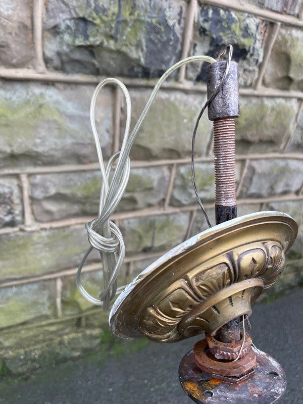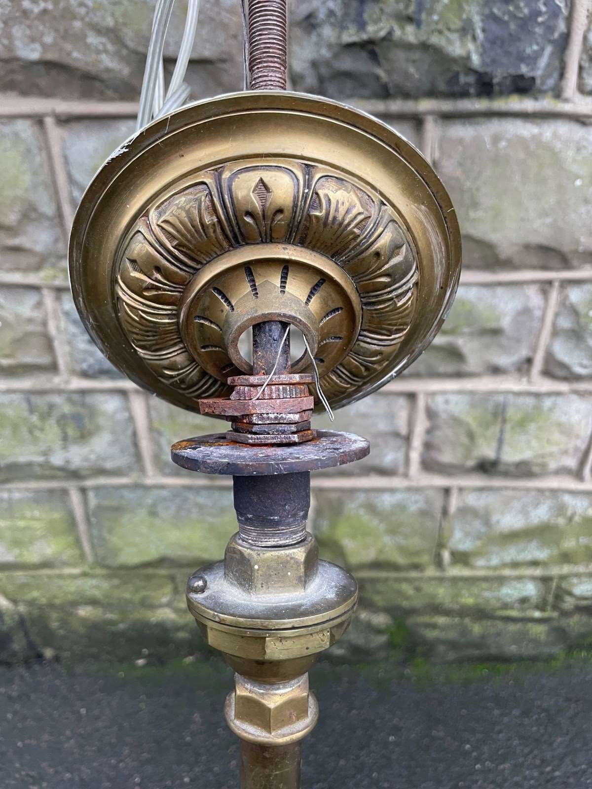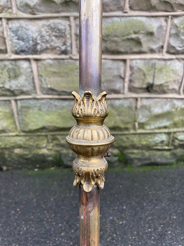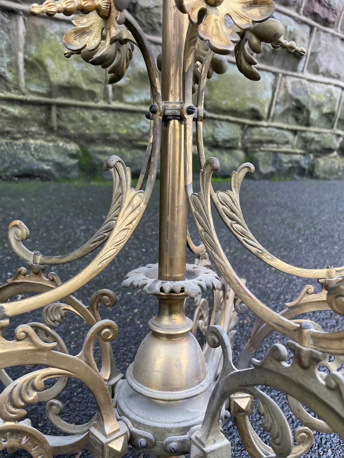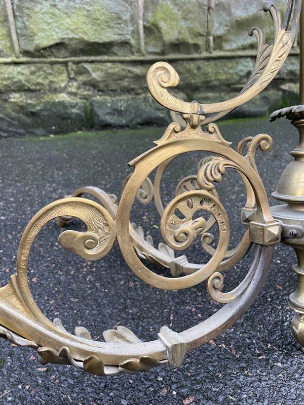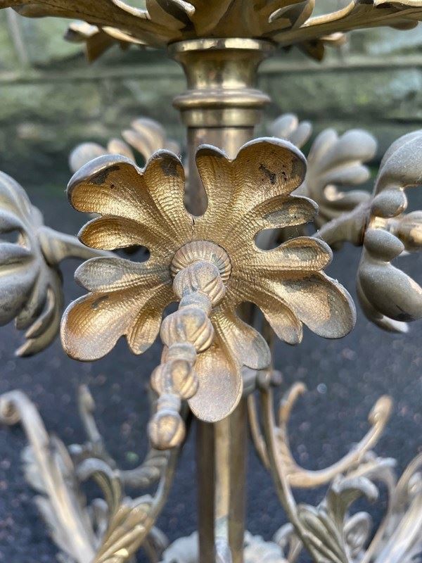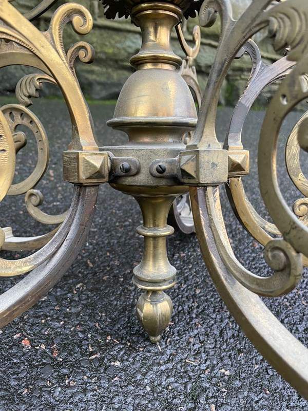 Great size & scale. 135cm high, brass central column with 5 scrolling arms with leaf decoration. English bayonet bulb fitting. Fully wired