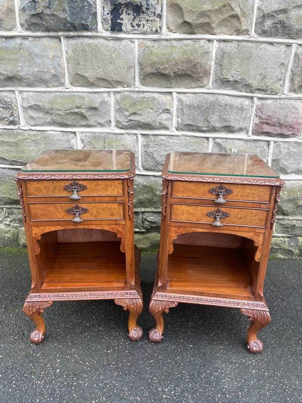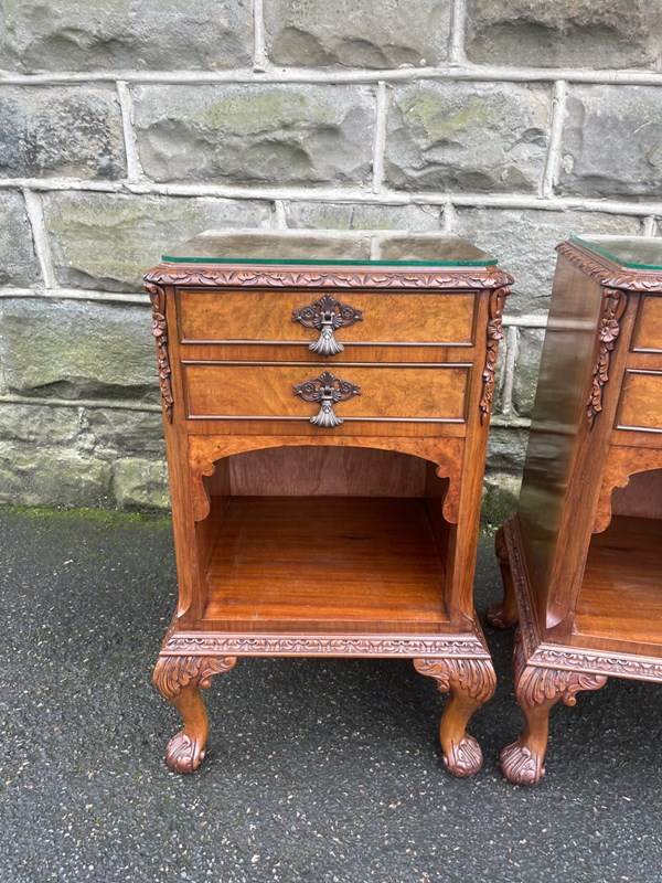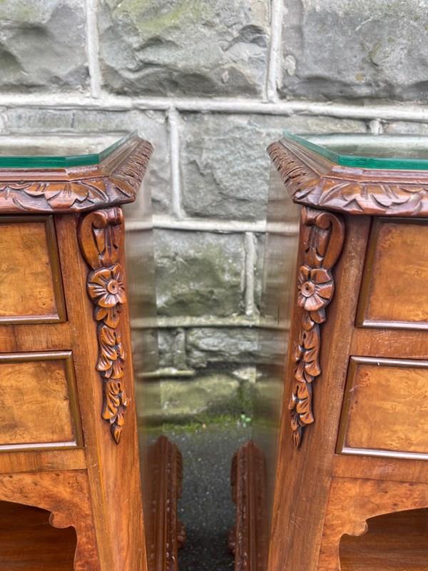 Pair Antique Burr Walnut Bedside Cabinets