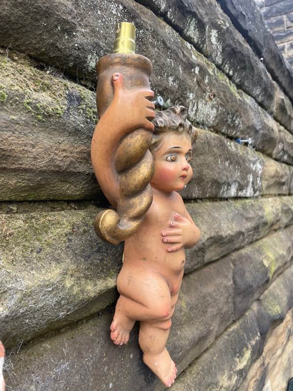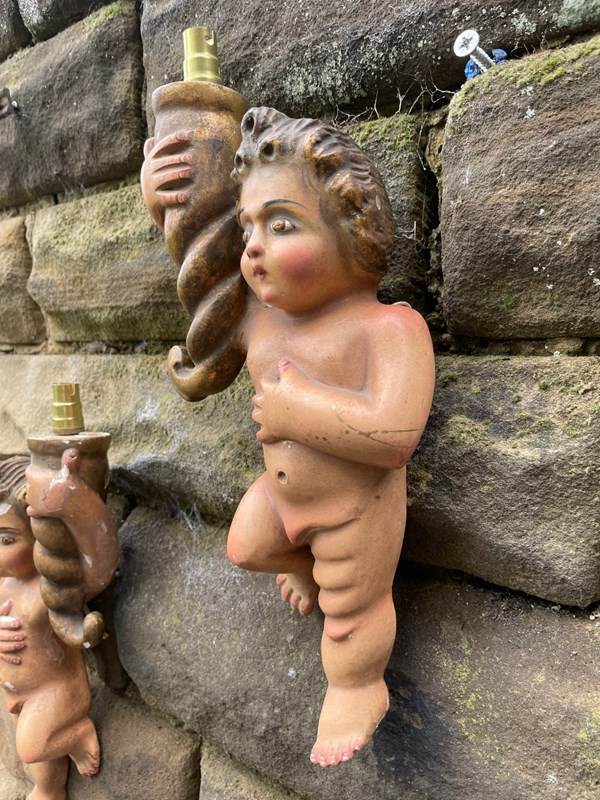 Offered for sale is this very decorative pair of cherub wall lights.