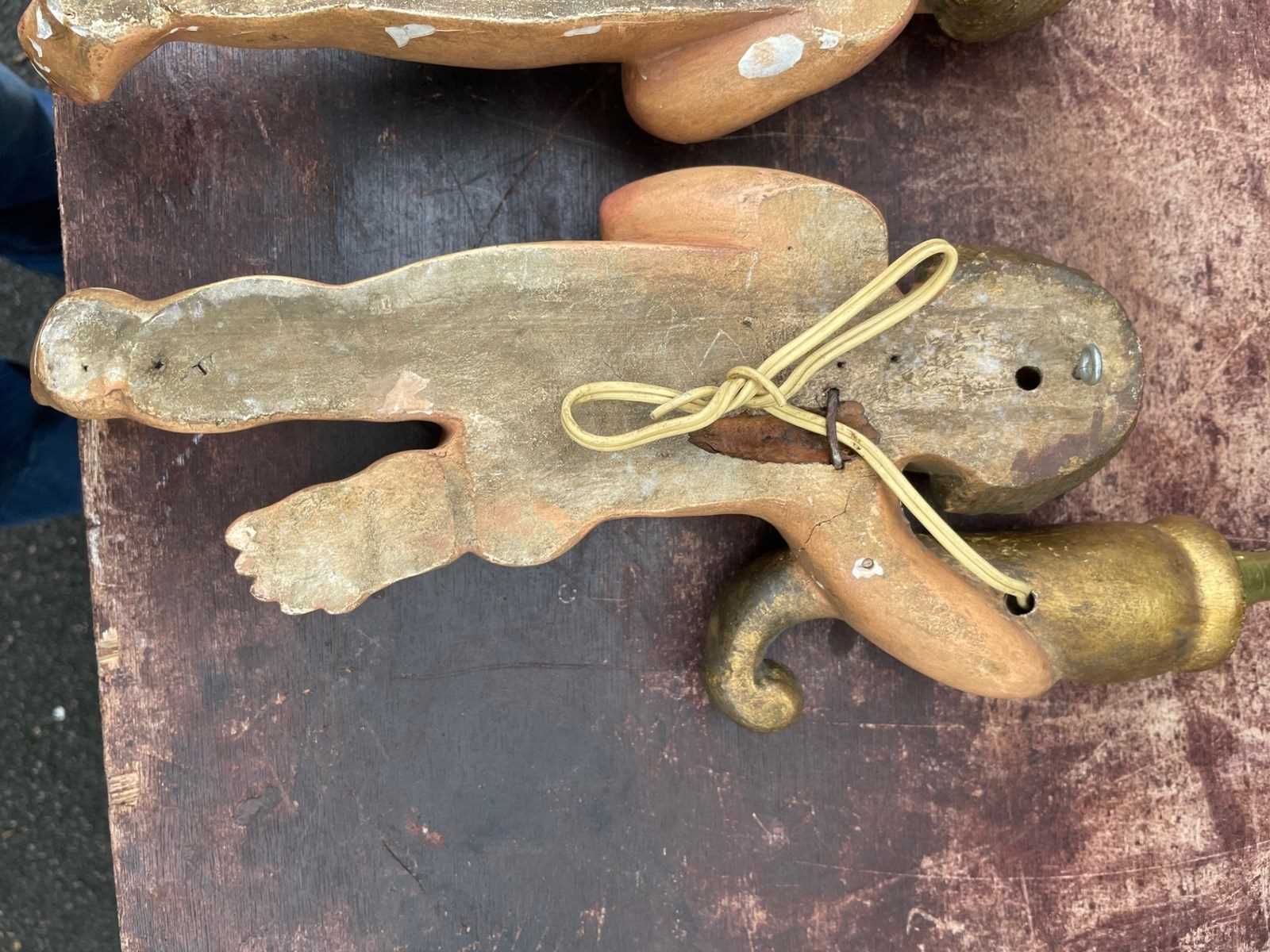 Carved from wood & retaining there original polychrome painted finish. Both are fully wired.