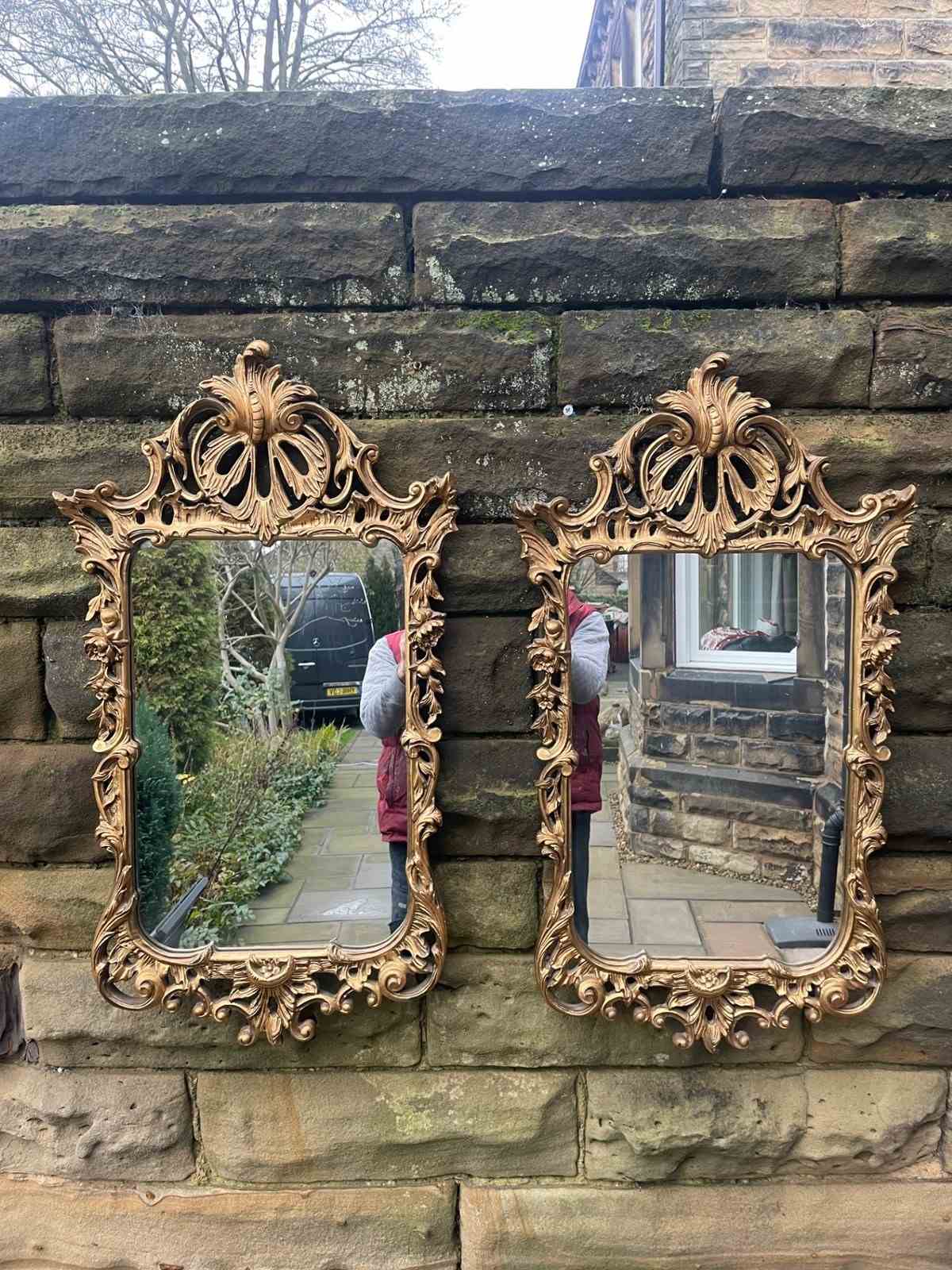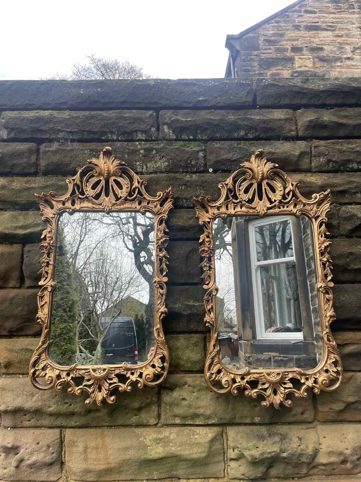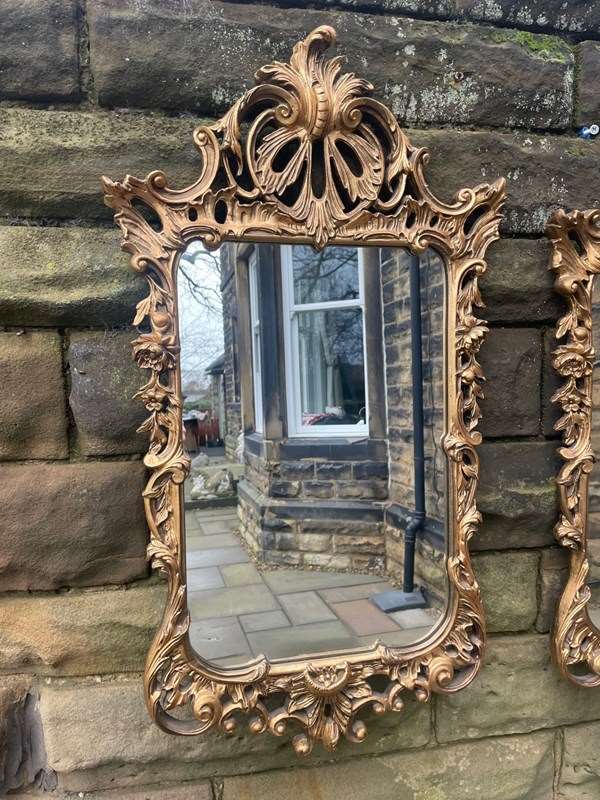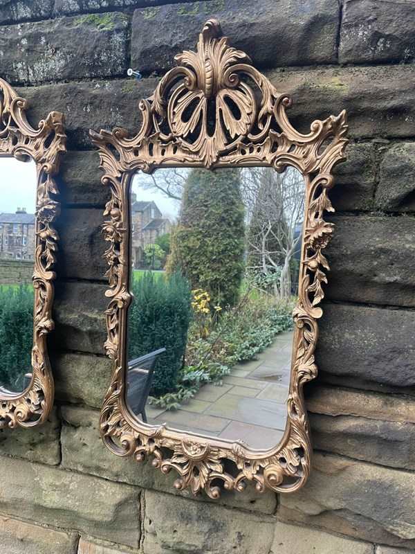 Very ornate scrolling gilt wood pierced frames with the original gilded finish.