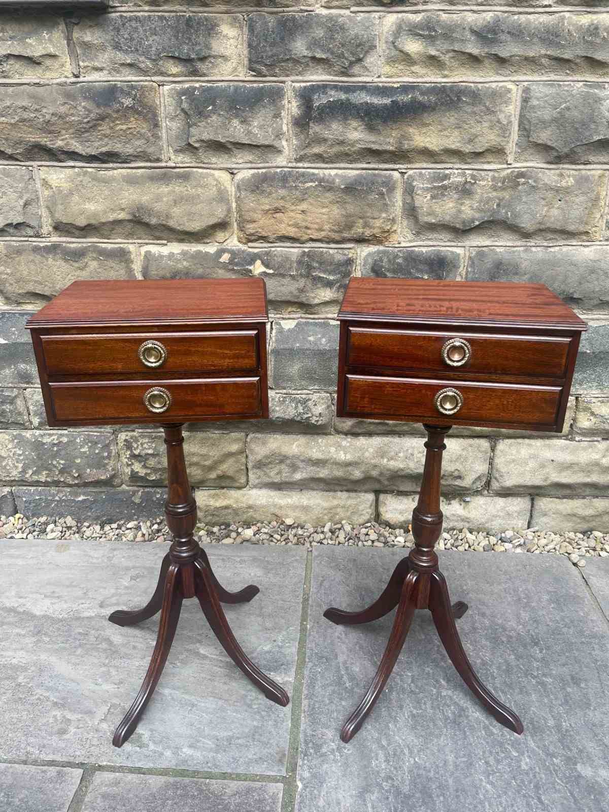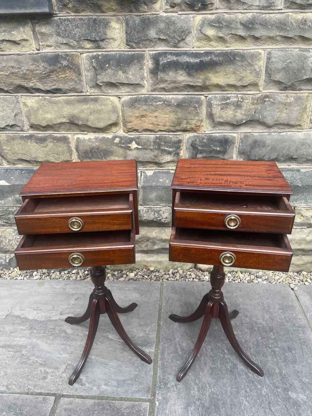 Pair Antique Mahogany 2 Draw Bedside Tables