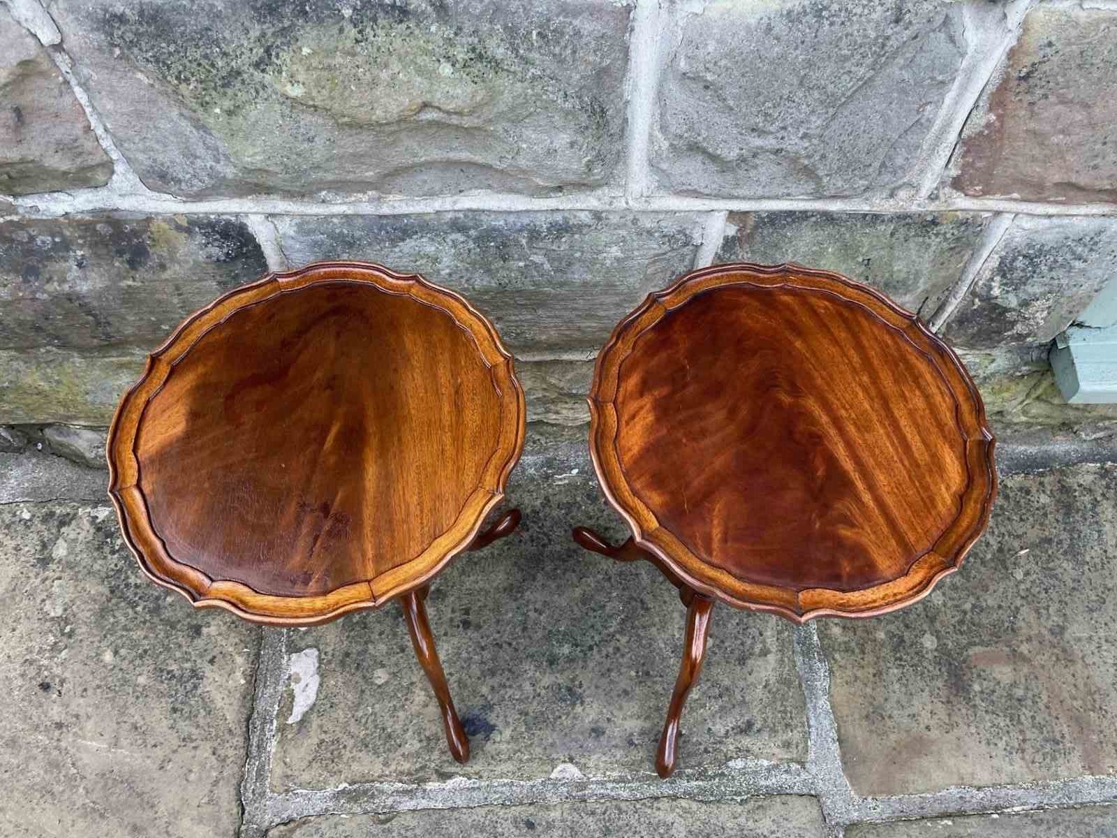 Offered for sale is this pair of antique mahogany tripod wine table.