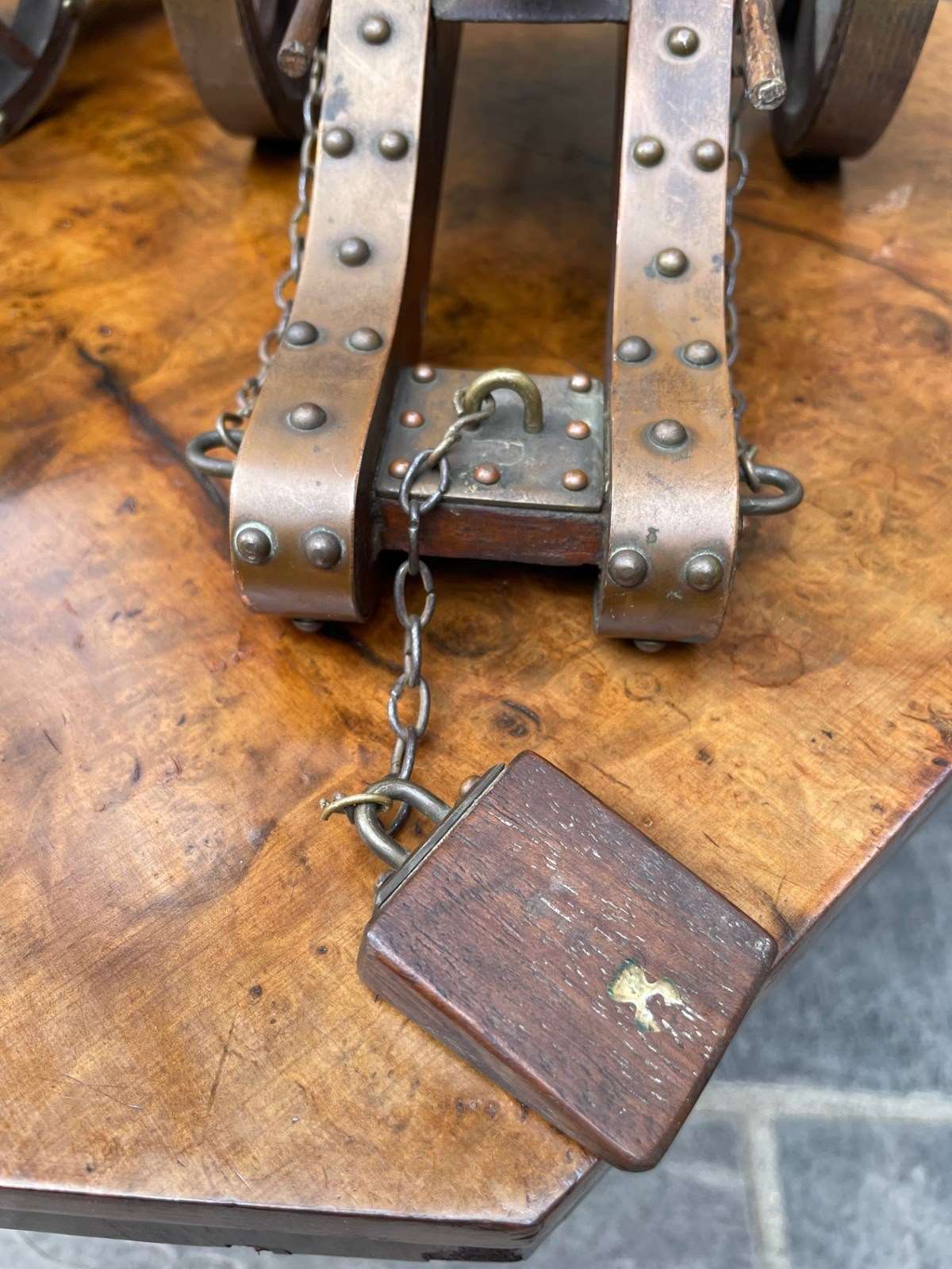 Pair Antique Oak & Brass Scratch Built Cannons
