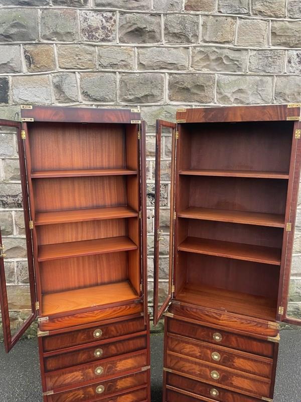 Pair Brass Bound Mahogany Military Bookcase On Chests