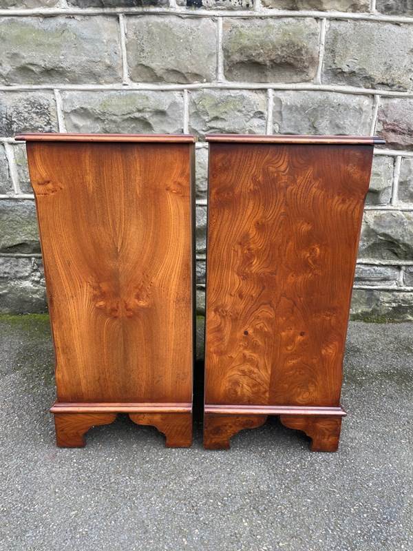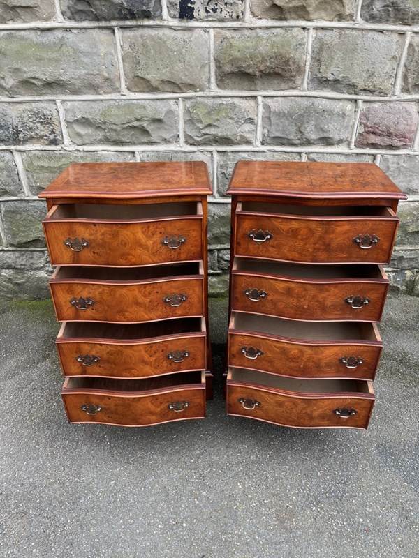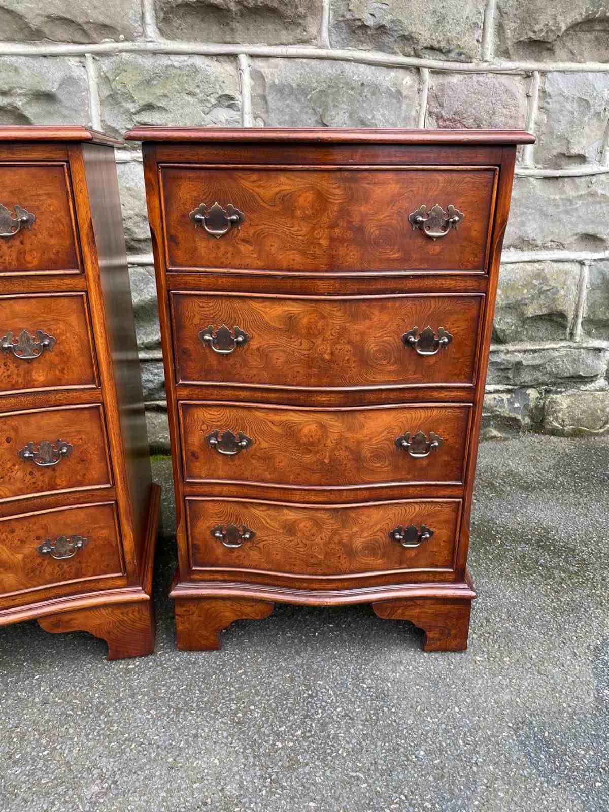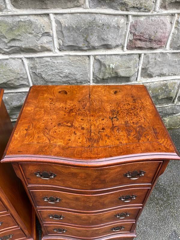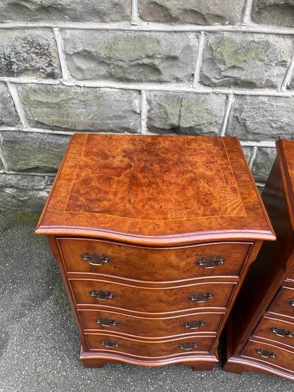 Pair Burr Walnut 4 Draw Bedside Chest Draws