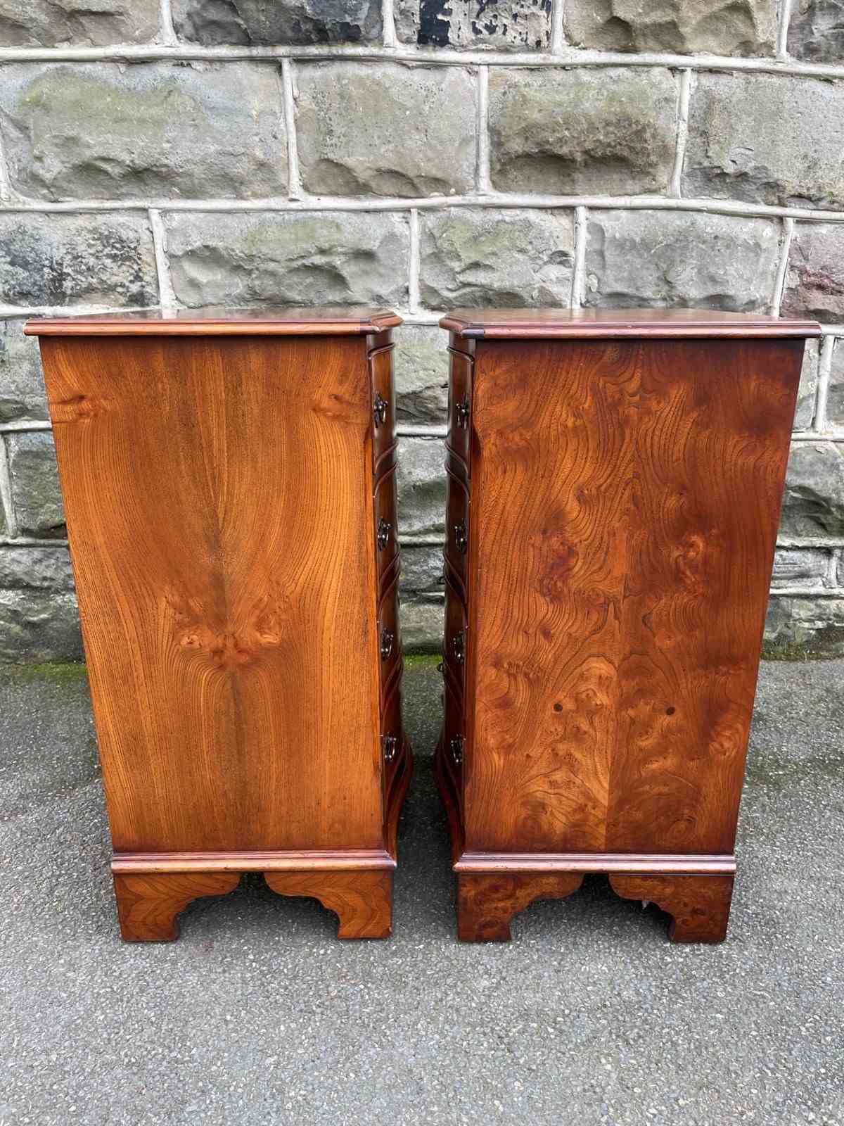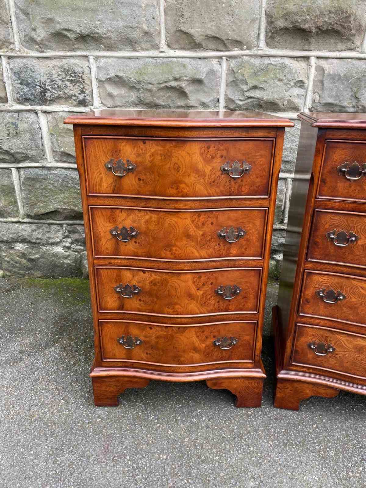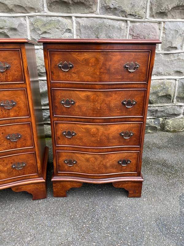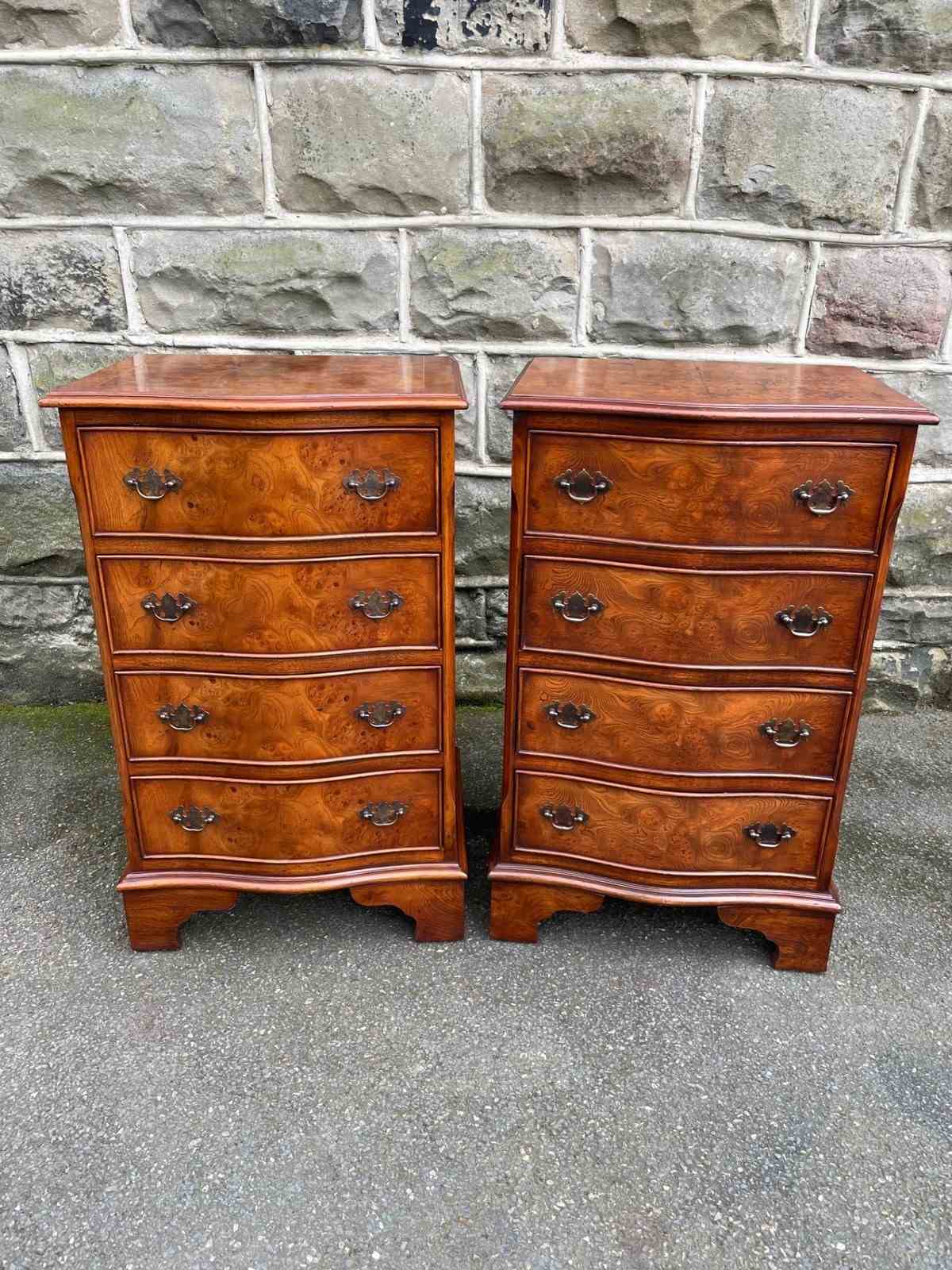 Pair Burr Walnut 4 Draw Bedside Chest Draws
