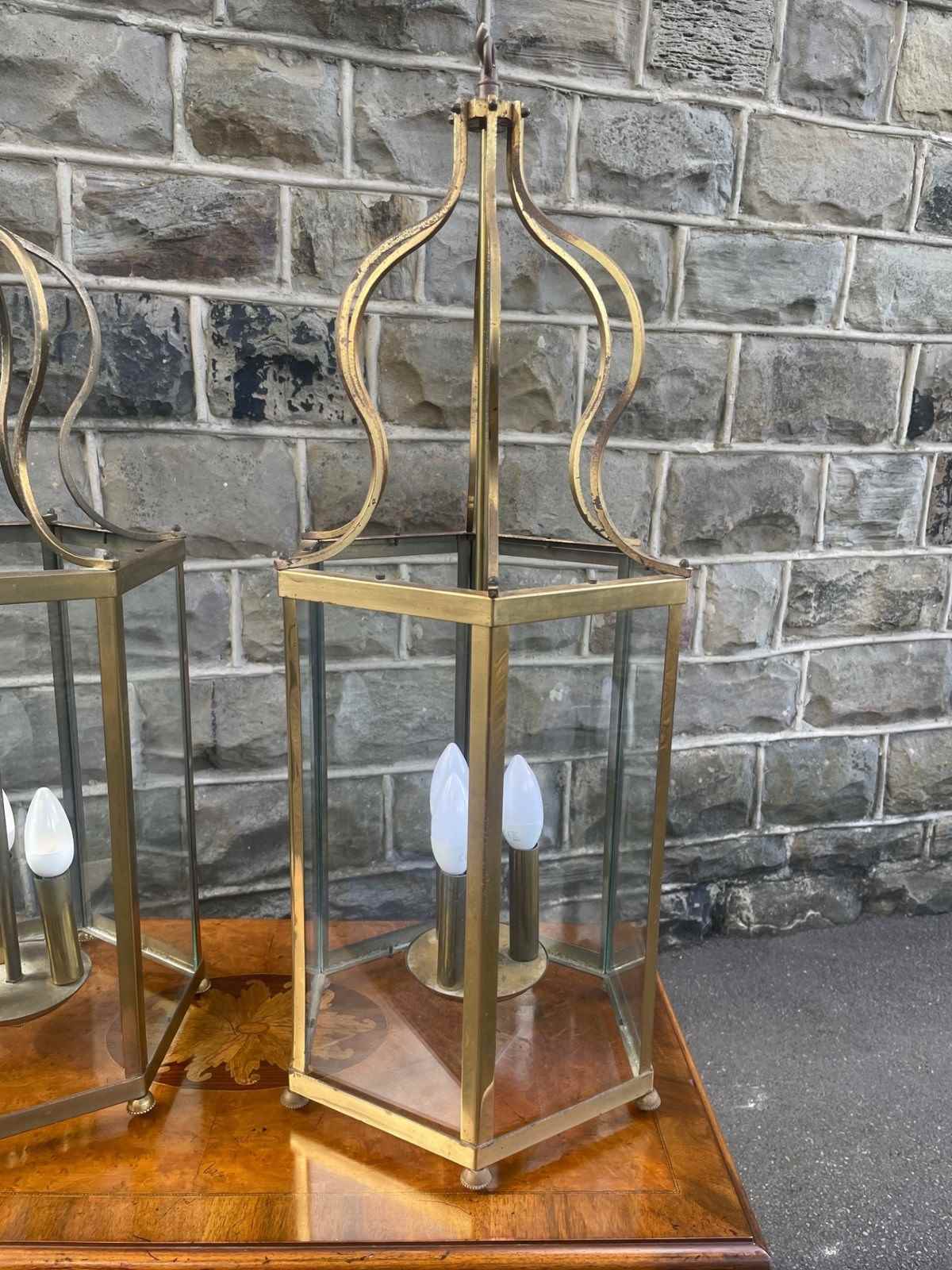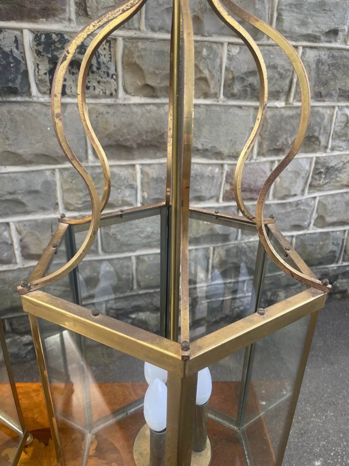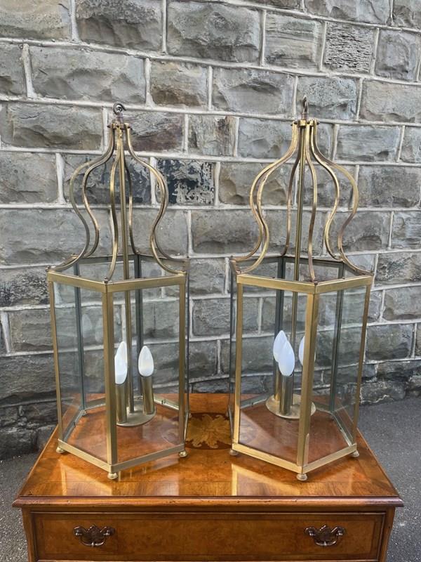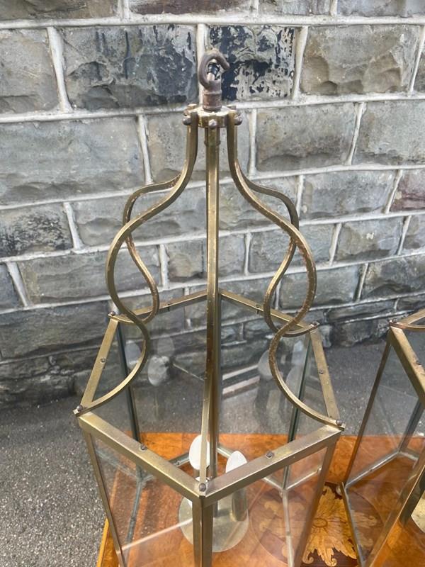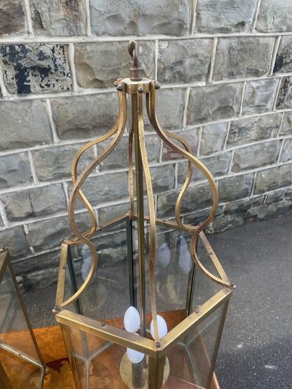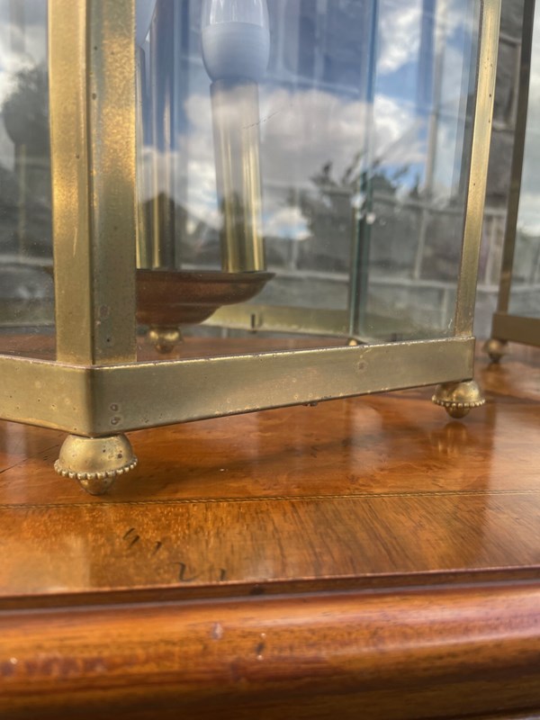 Pair English Glazed Brass Lanterns