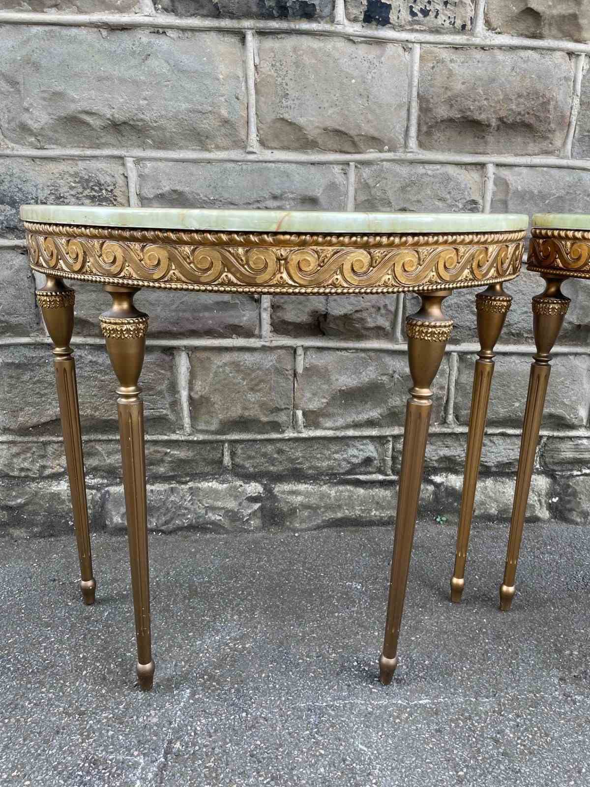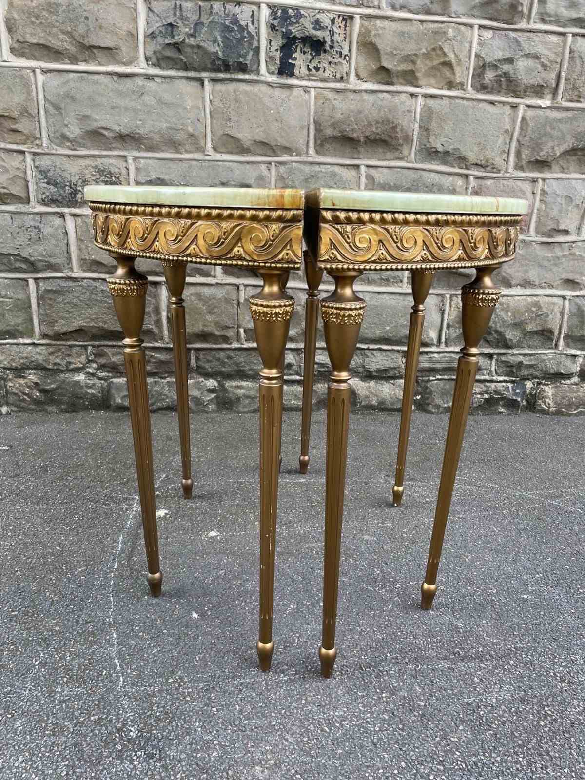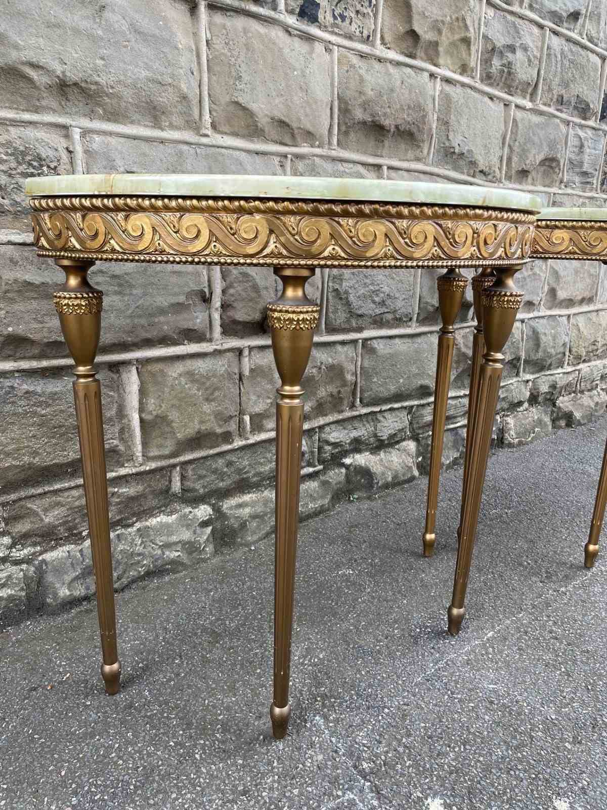 Pair Gilt Wood & Onyx Top Console Tables