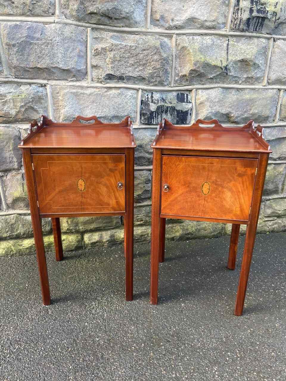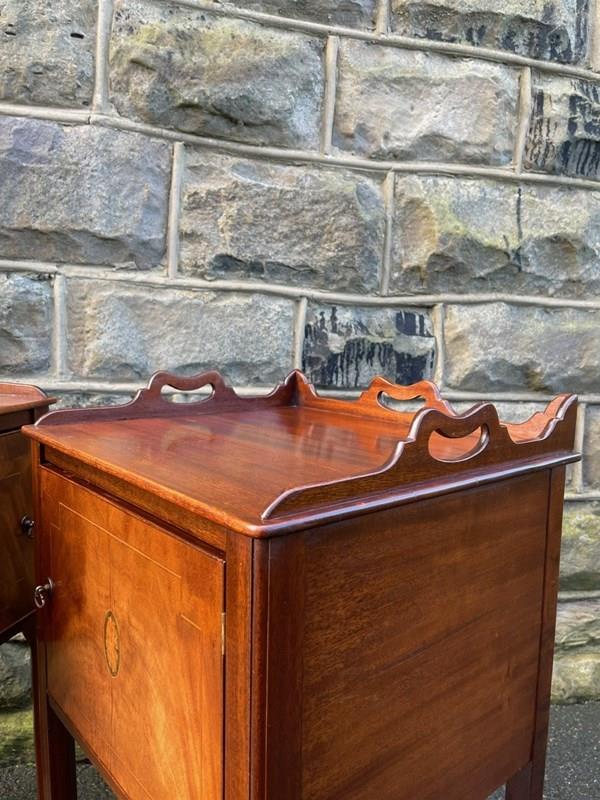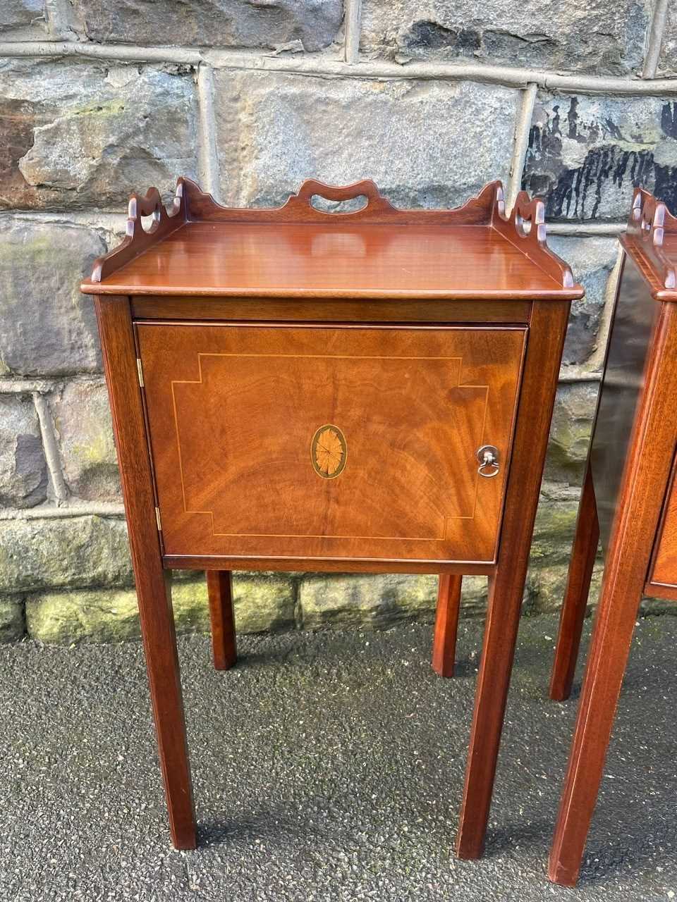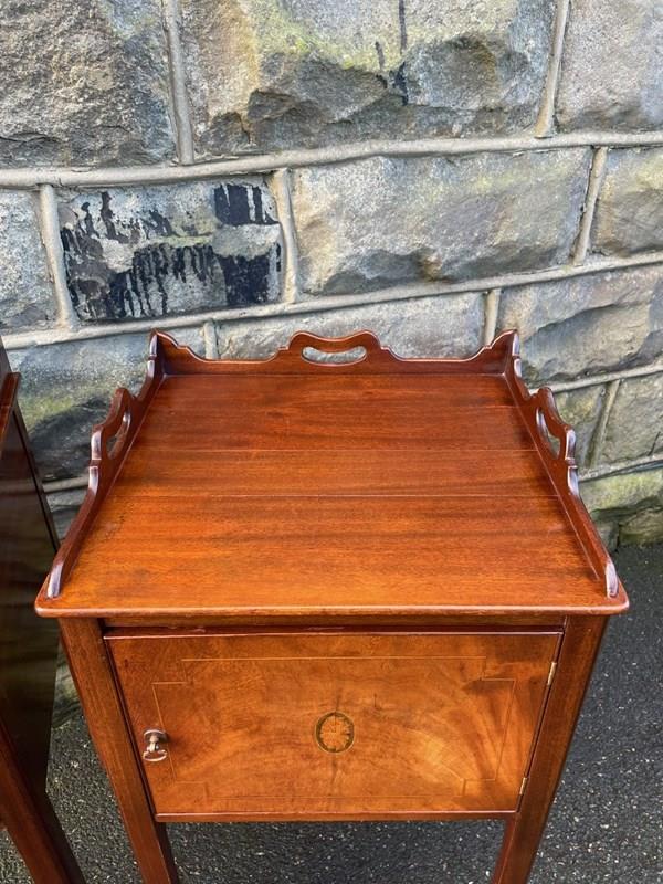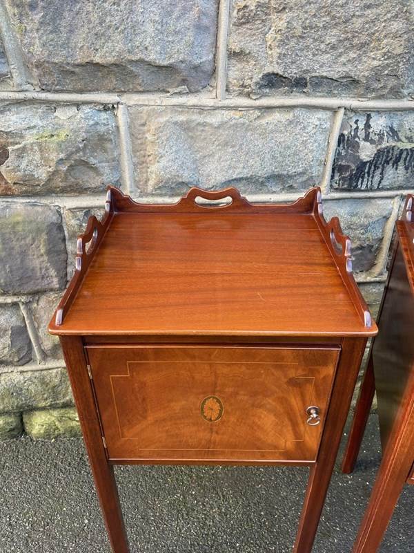 Pair Inlaid Mahogany Tray Top Bedside Tables