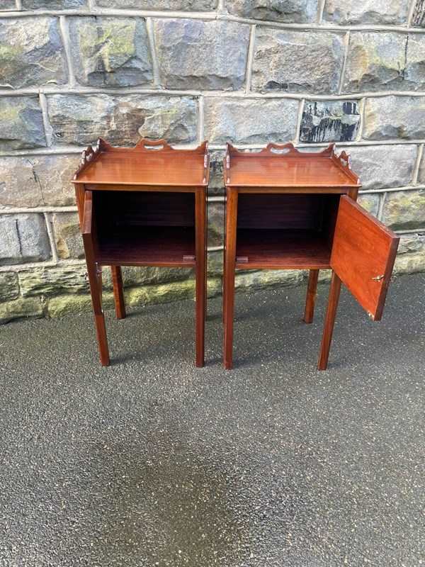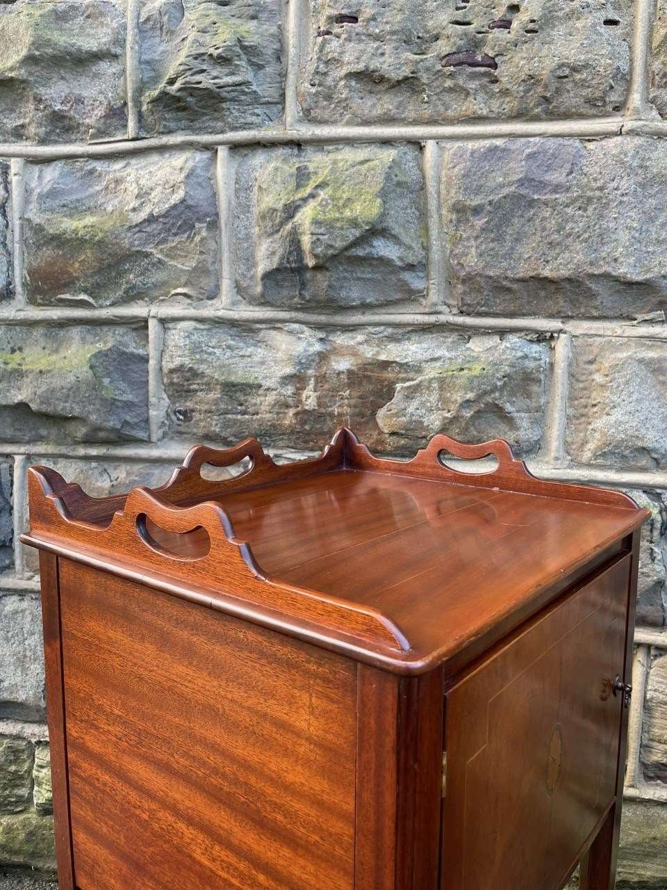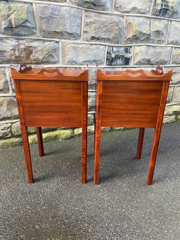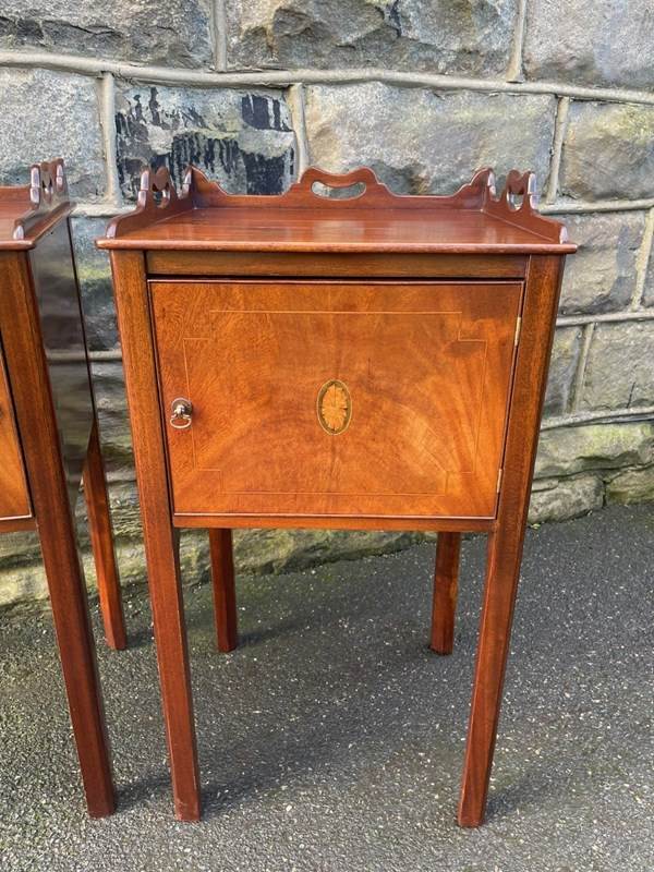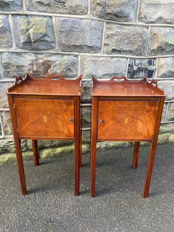 Pair Inlaid Mahogany Tray Top Bedside Tables