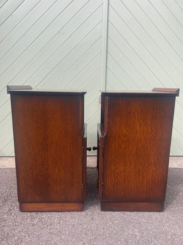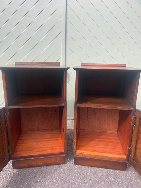 Pair Oak Line Fold Bedside Cabinets Bedside Cupboards