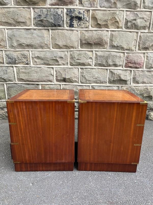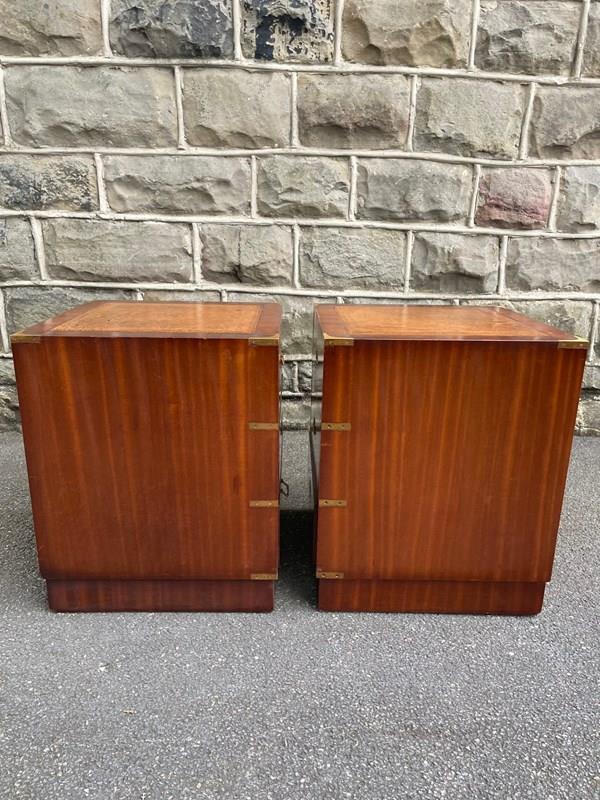 Pair Of Brass Bound Mahogany Military Campaign Style Bedside Chest Drawers