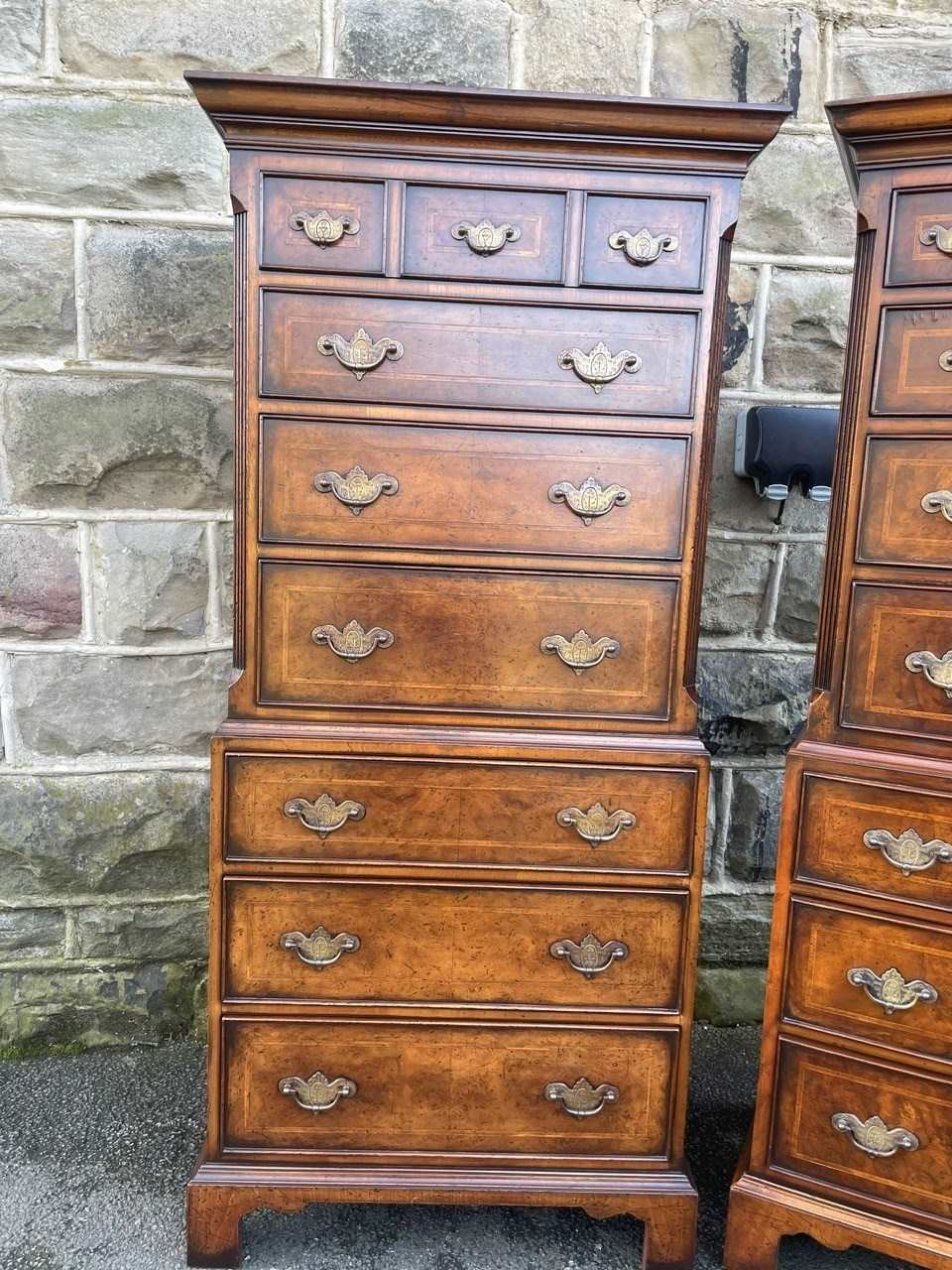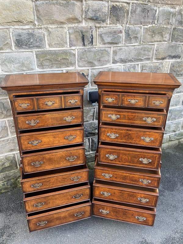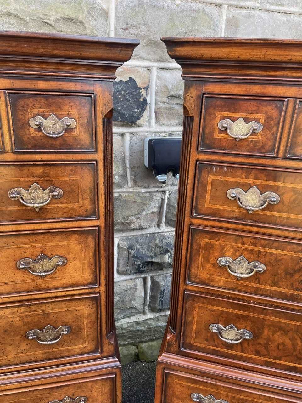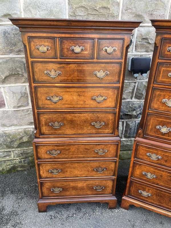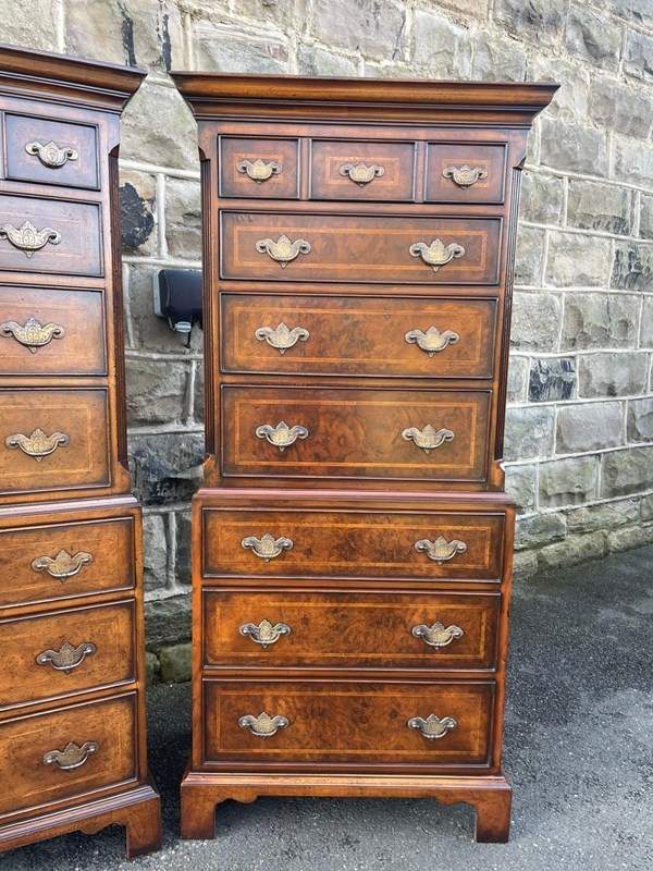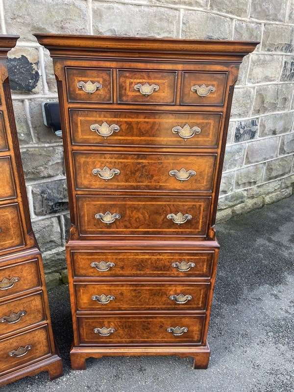 Pair Quality Inlaid Burr Walnut Chest On Chest Tallboy