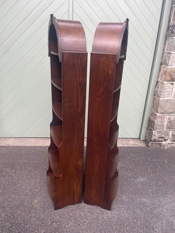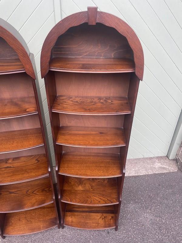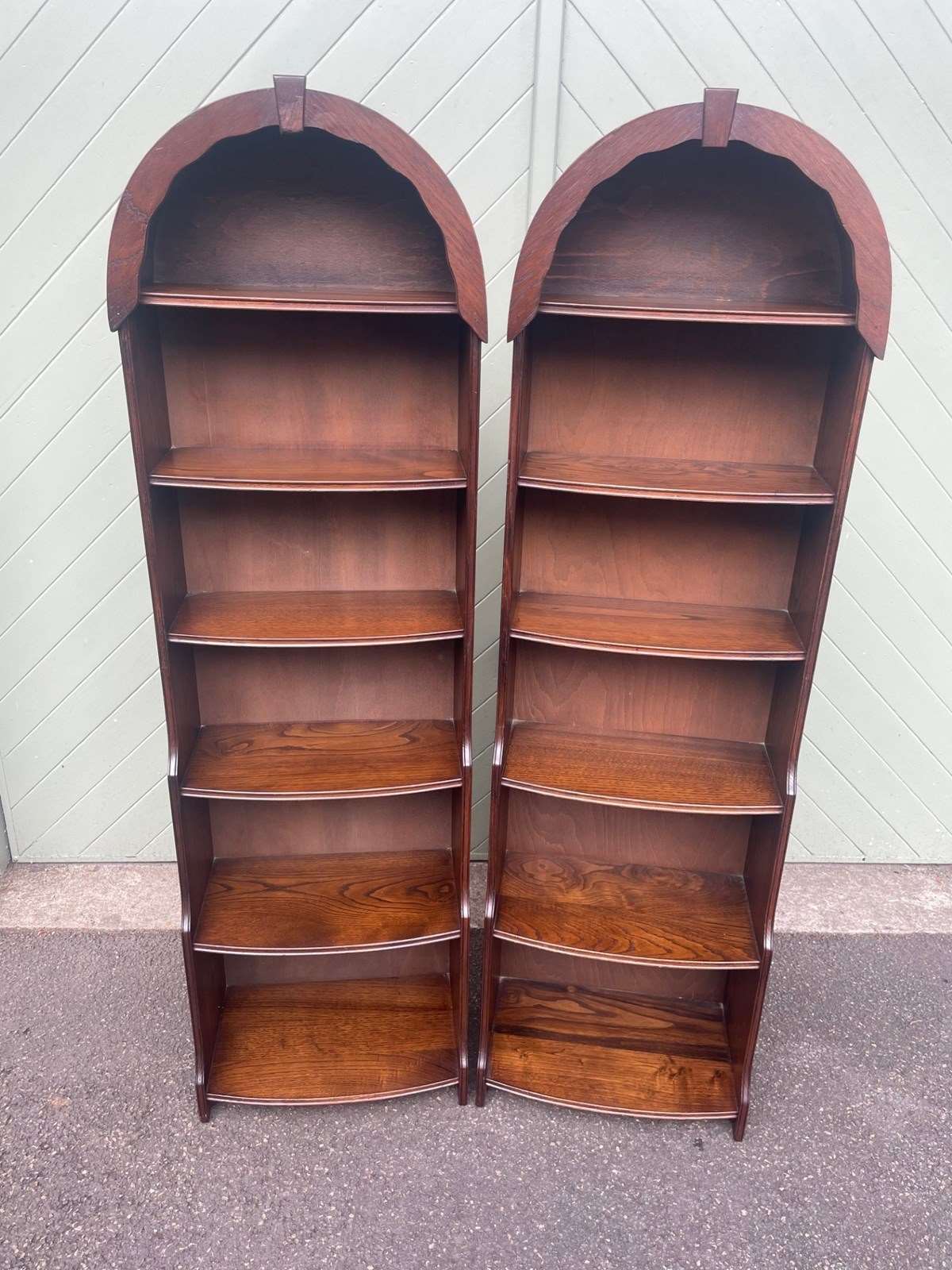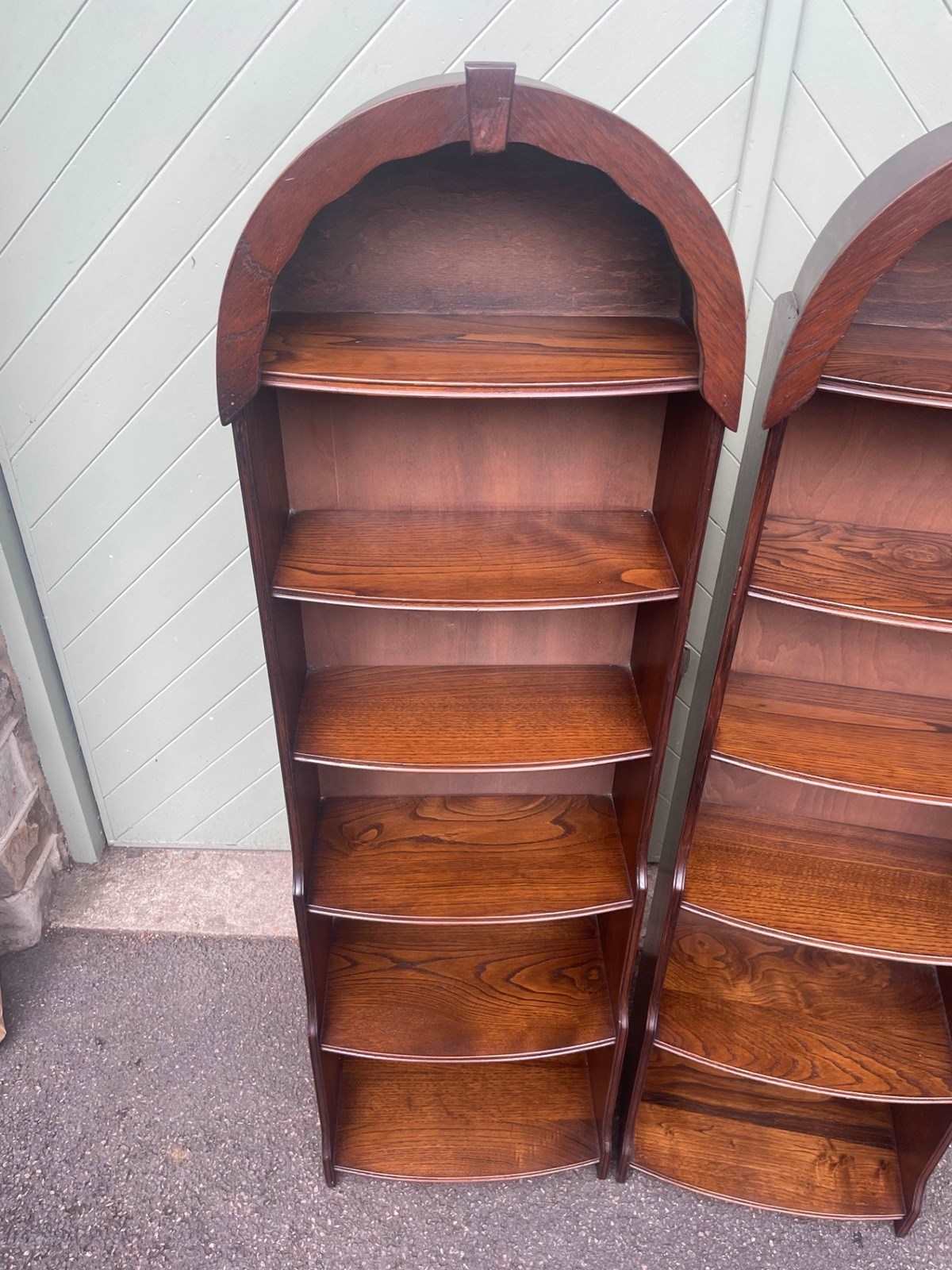 Pair Slim Oak Domed Top Waterfall Open Bookcase
