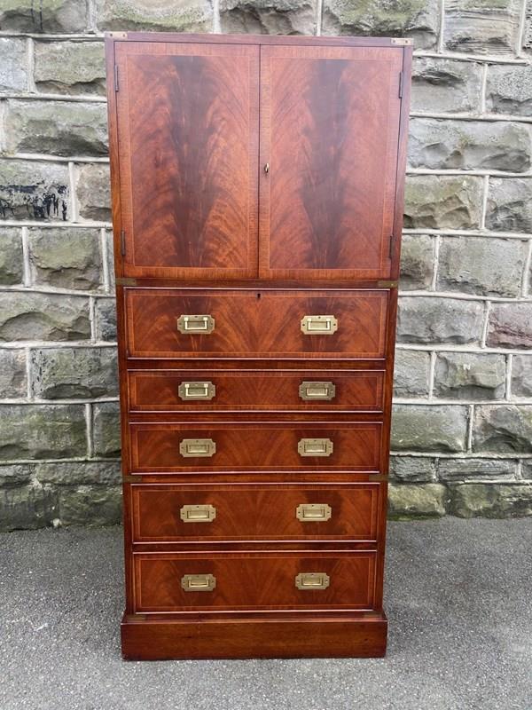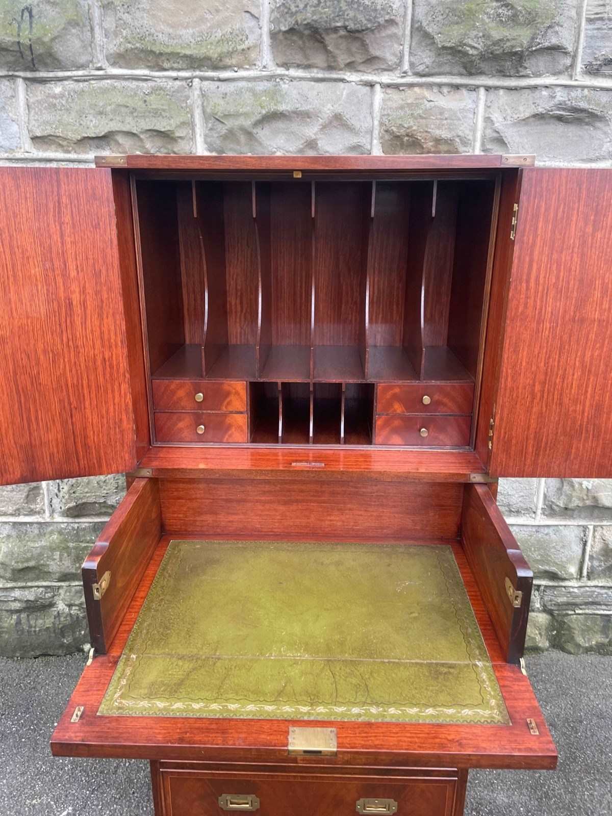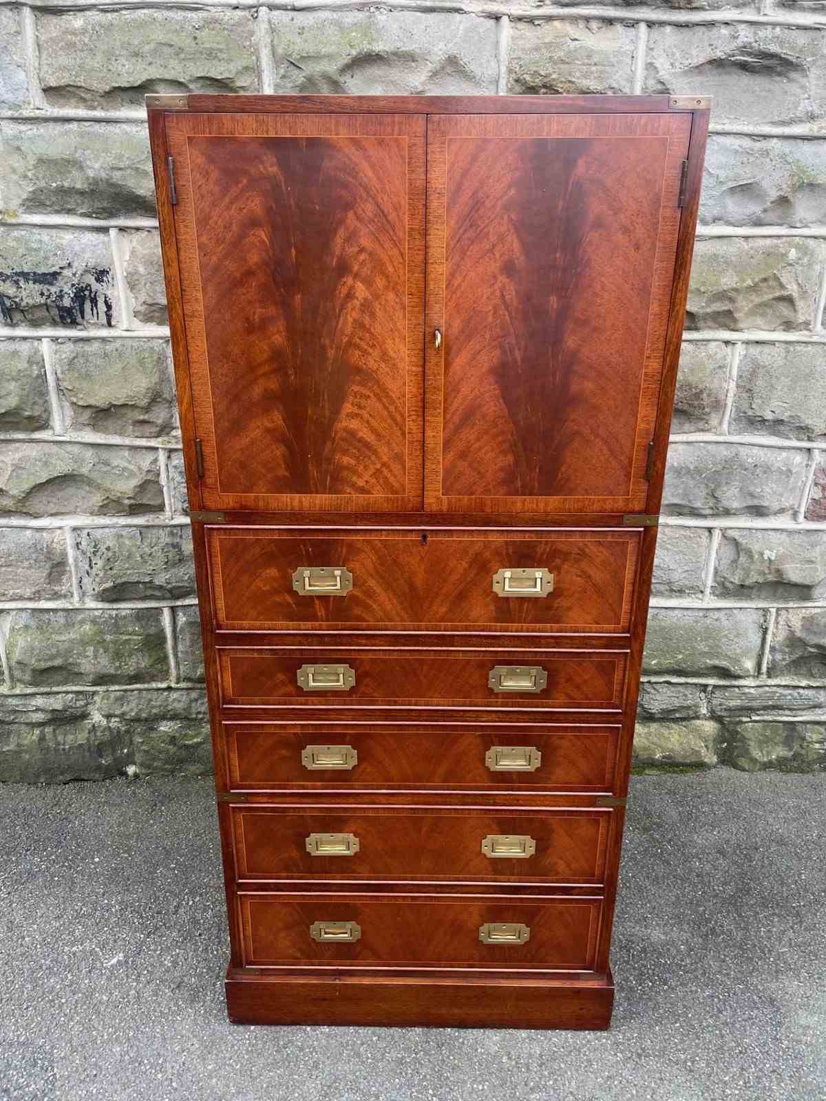 Quality Brass Bound Mahogany Military Secretaire Chest