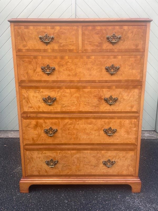 Quality Burr Walnut Chest Of Drawers