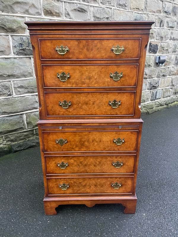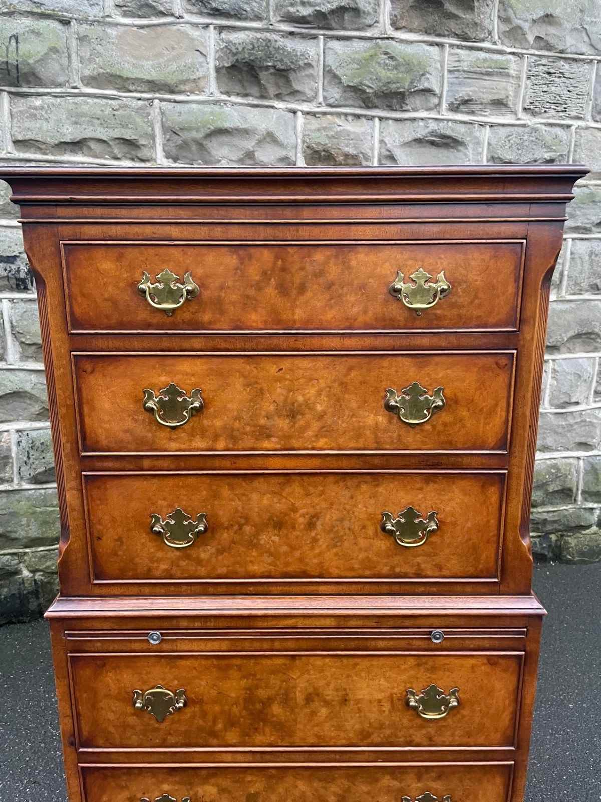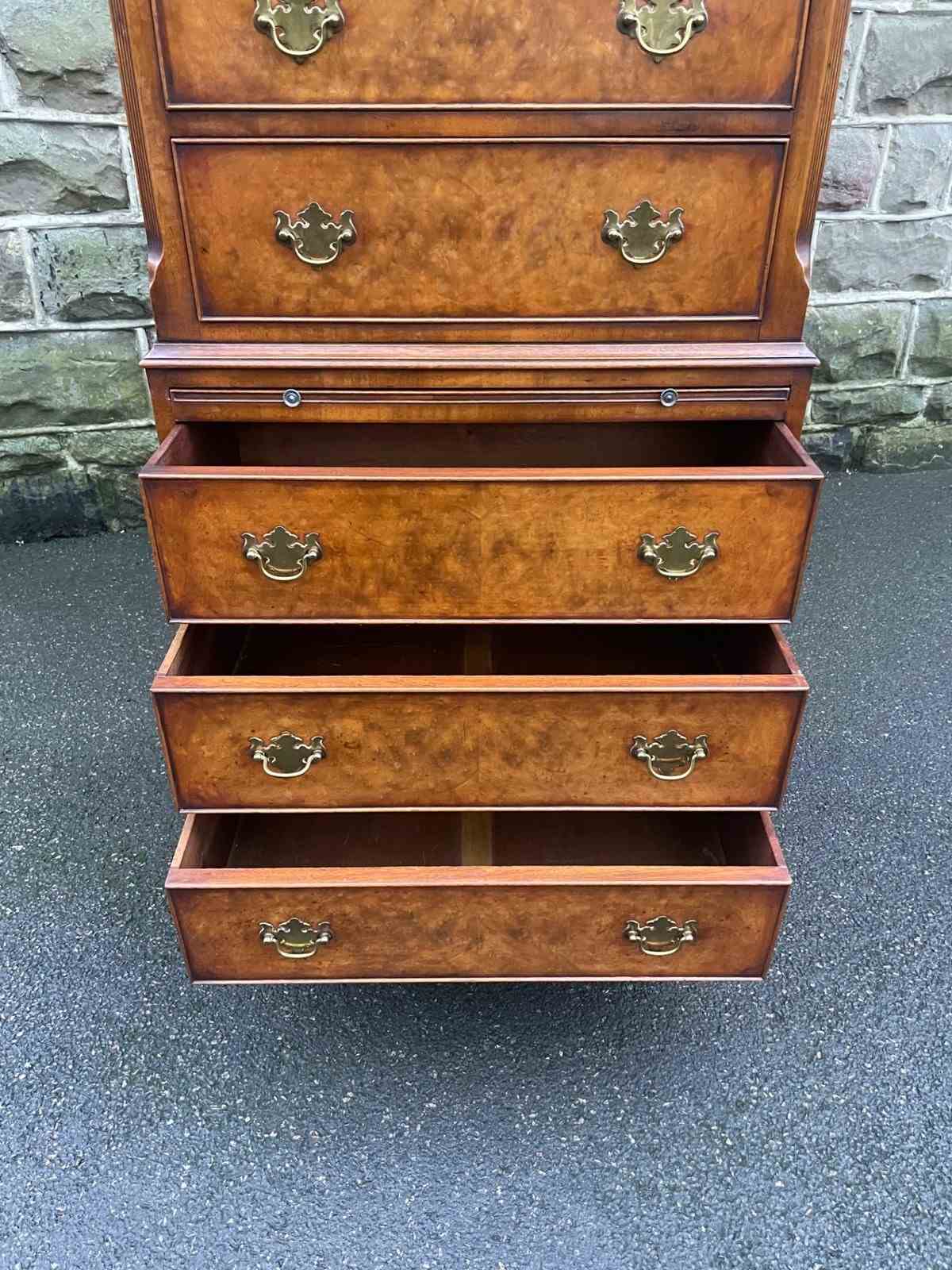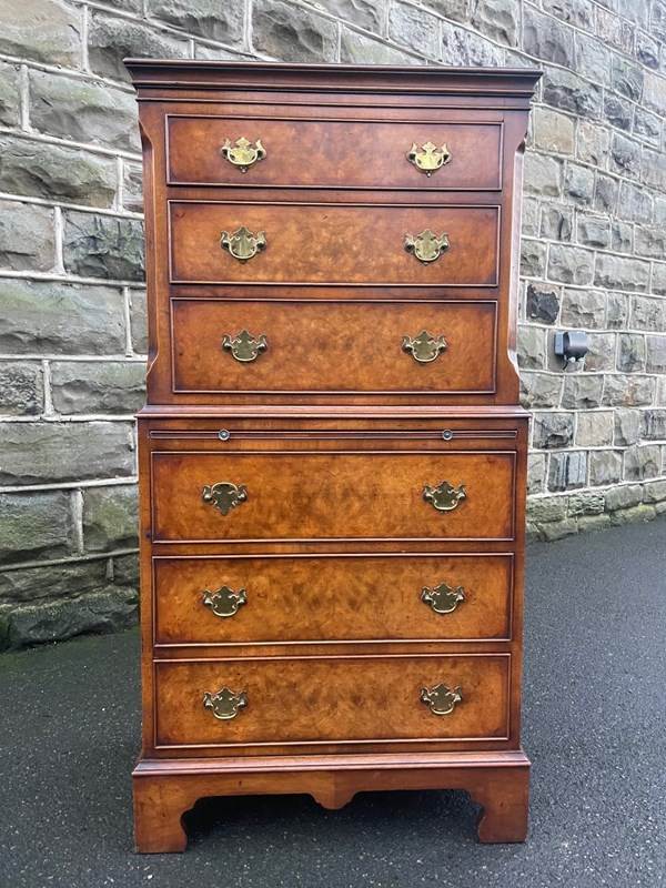 Quality Burr Walnut Chest On Chest Tallboy
