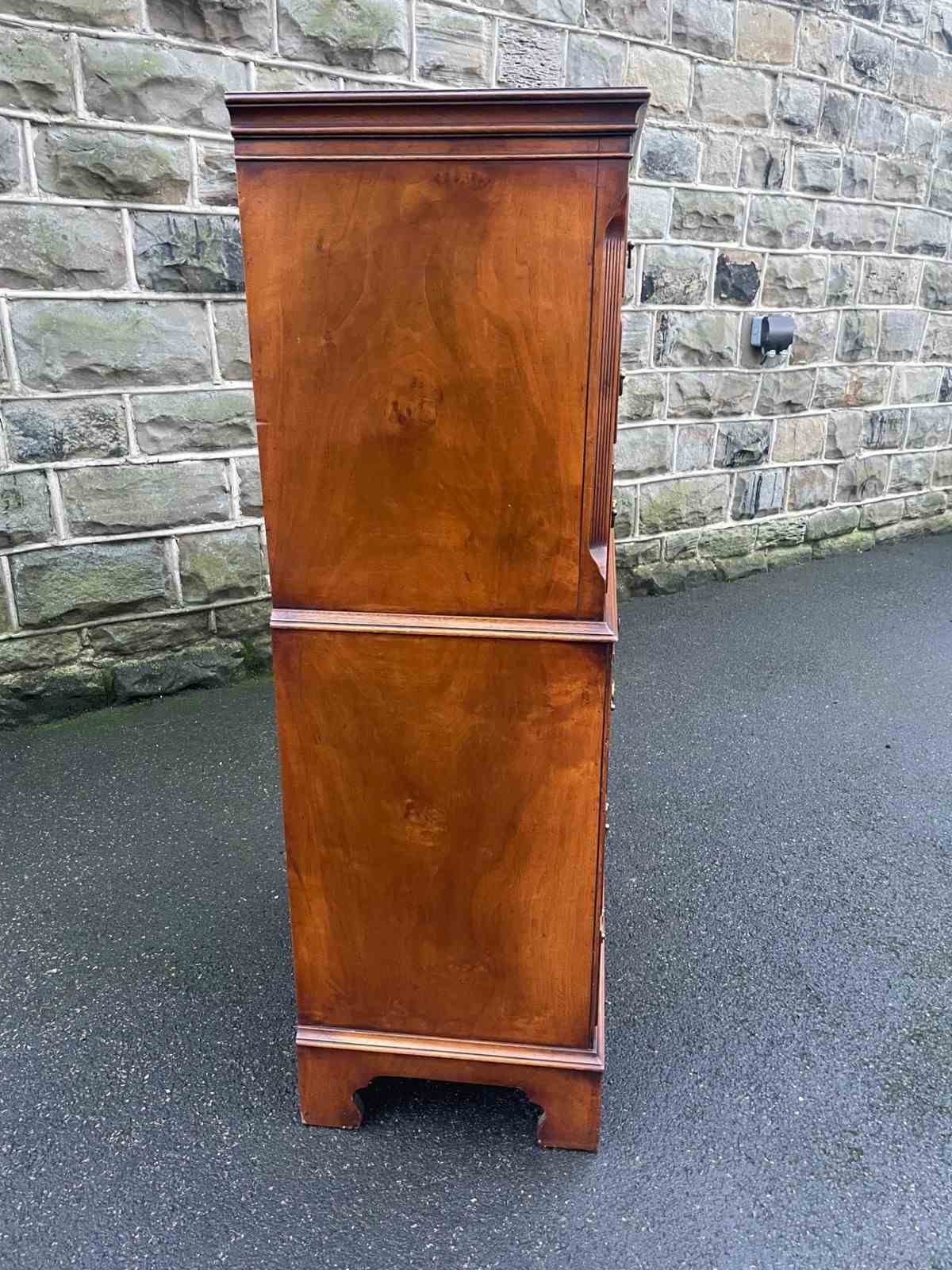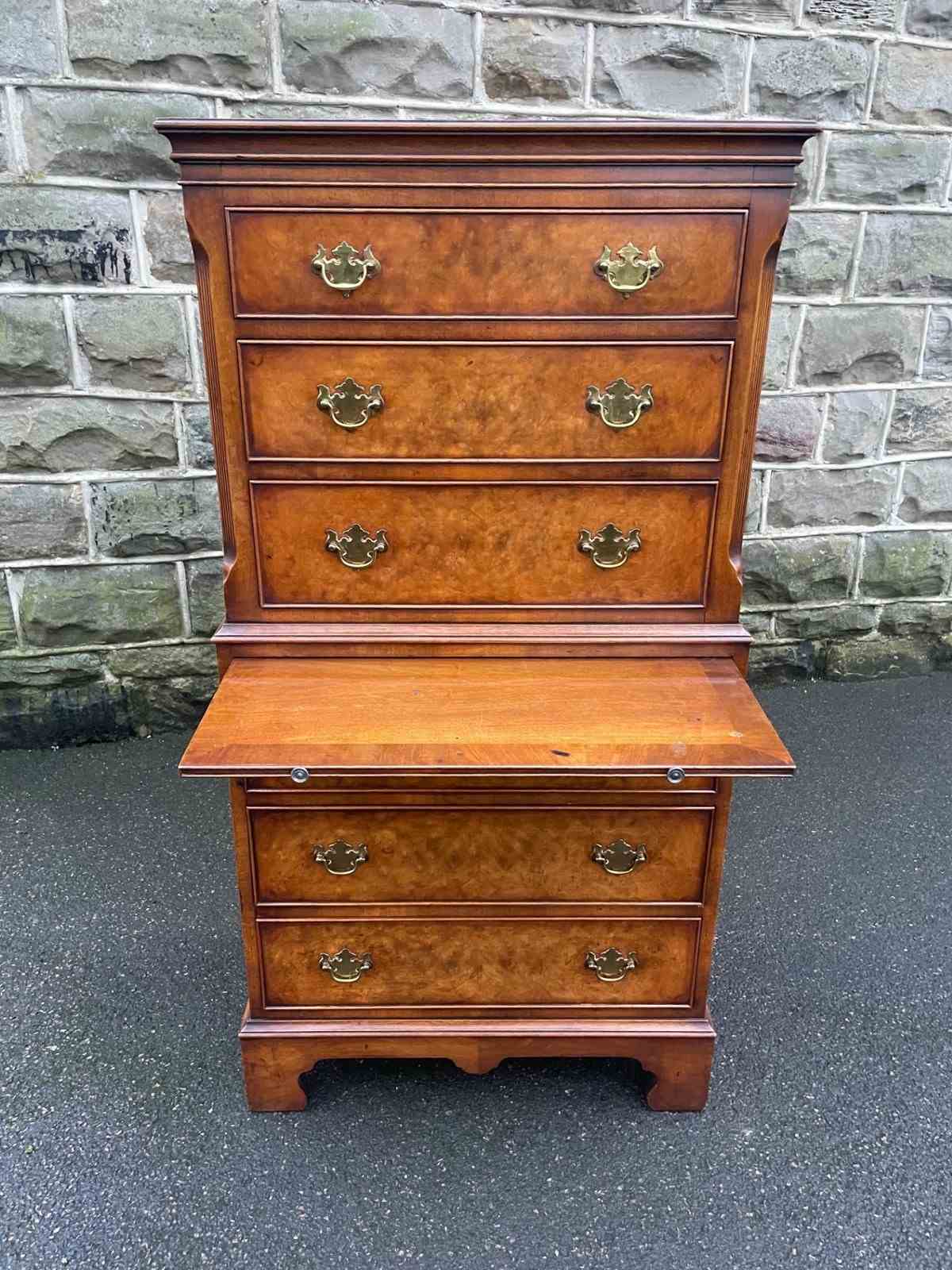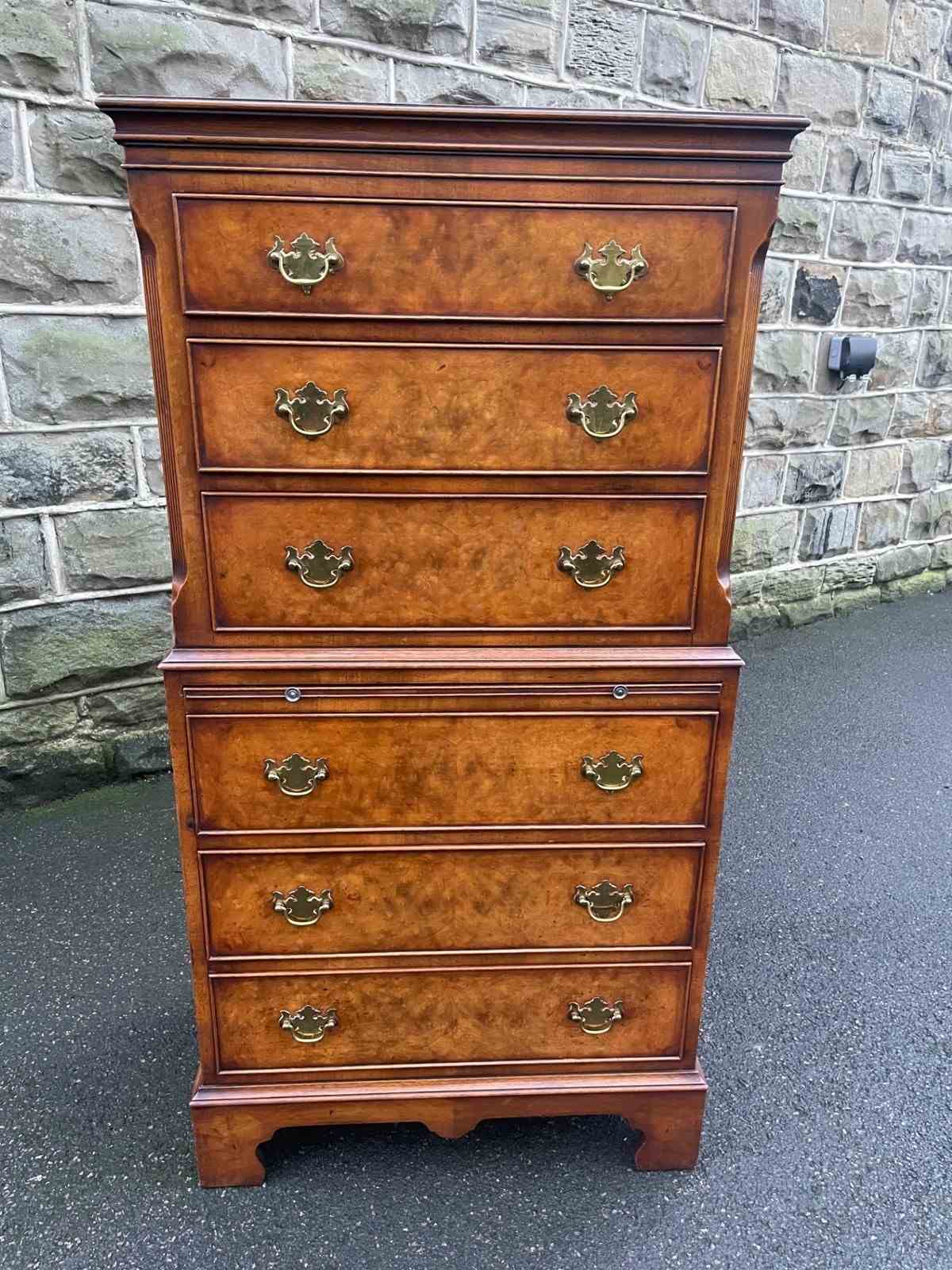 Quality Burr Walnut Chest On Chest Tallboy