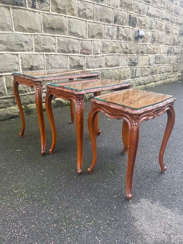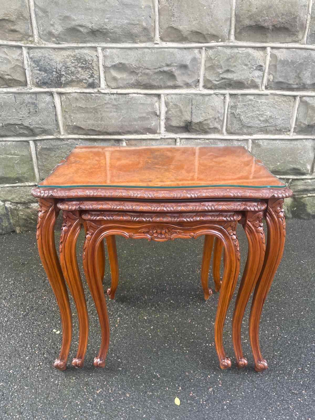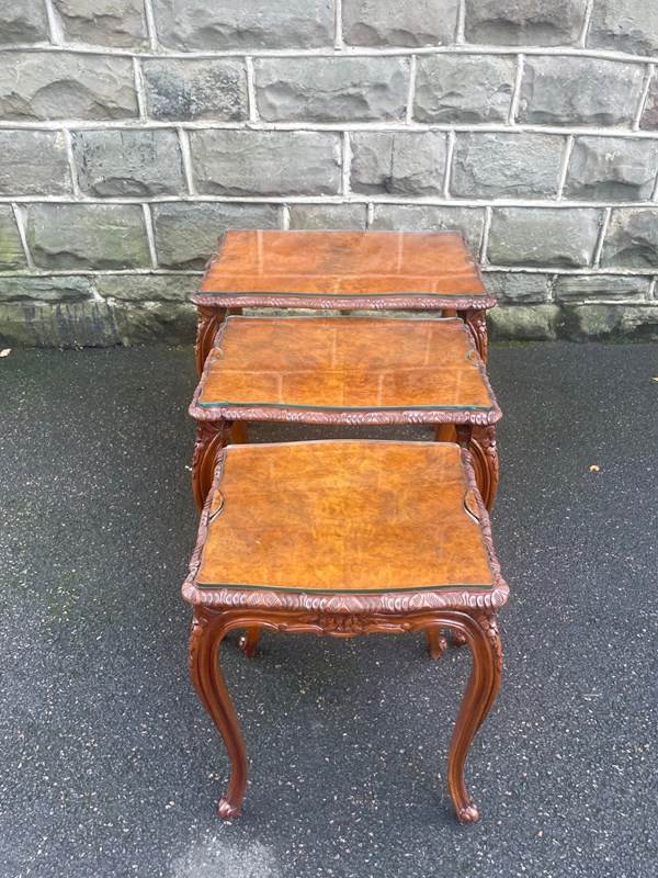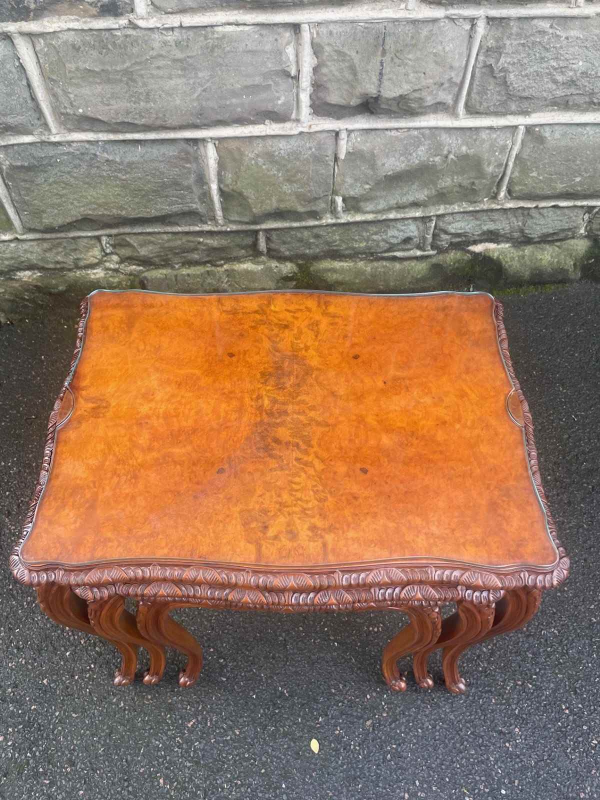 Offered for sale is this very good quality burr walnut nest 3 tables.